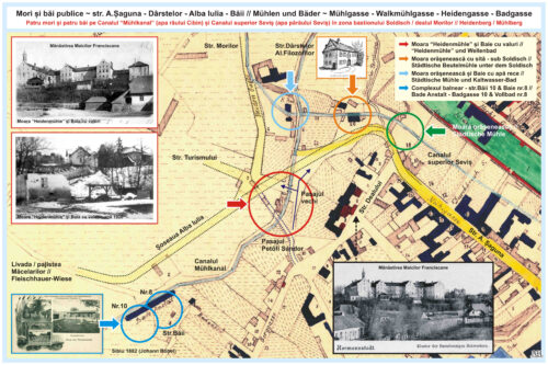 În anul 1882/83 Johann Böbel desenează, notează şi descrie, în harta din 1875, modificările care au avut loc în oraşul Sibiu în sec.19, între 1830-1883. Redau aici traducerea și textul original referitor la Şcoala Militară cezaro-crăiască de Înot din Cartierul Josefin // K.K. Militär-Schwimmschule Josefstadt: