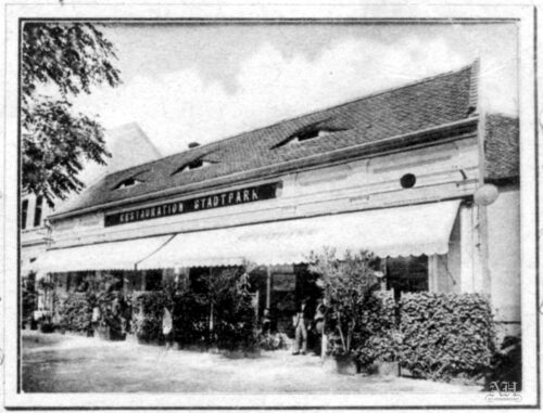 În cartea de adrese din 1895 este menționat restaurantul lui George Ardean ( Georg Ardean ) deschis în spațiul nou renovat situat „vis-à-vis de parcul Stadtpark” – vezi relama alăturată din 1895!La sfârșitul ultimului deceniu al secolului al XIX-lea restaurantul ajunge în proprietatea lui Thellmann Engelberg. La începutul secolului al XX-lea restaurantul Stadtpark se află în proprietatea lui Hager Michael.