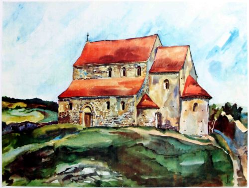 Vaza cu flori de câmp – Acuarelă realizată de Iuliana Fabritius-Dancu. I. Fabritius-Dancu a fost pictoriţă, etnografă, istoric de artă şi scriitoare de limba germană. S-a născut în 21 ianuarie 1930 la Sibiu și a decedat în 7 august 1986 la Bucureşti.