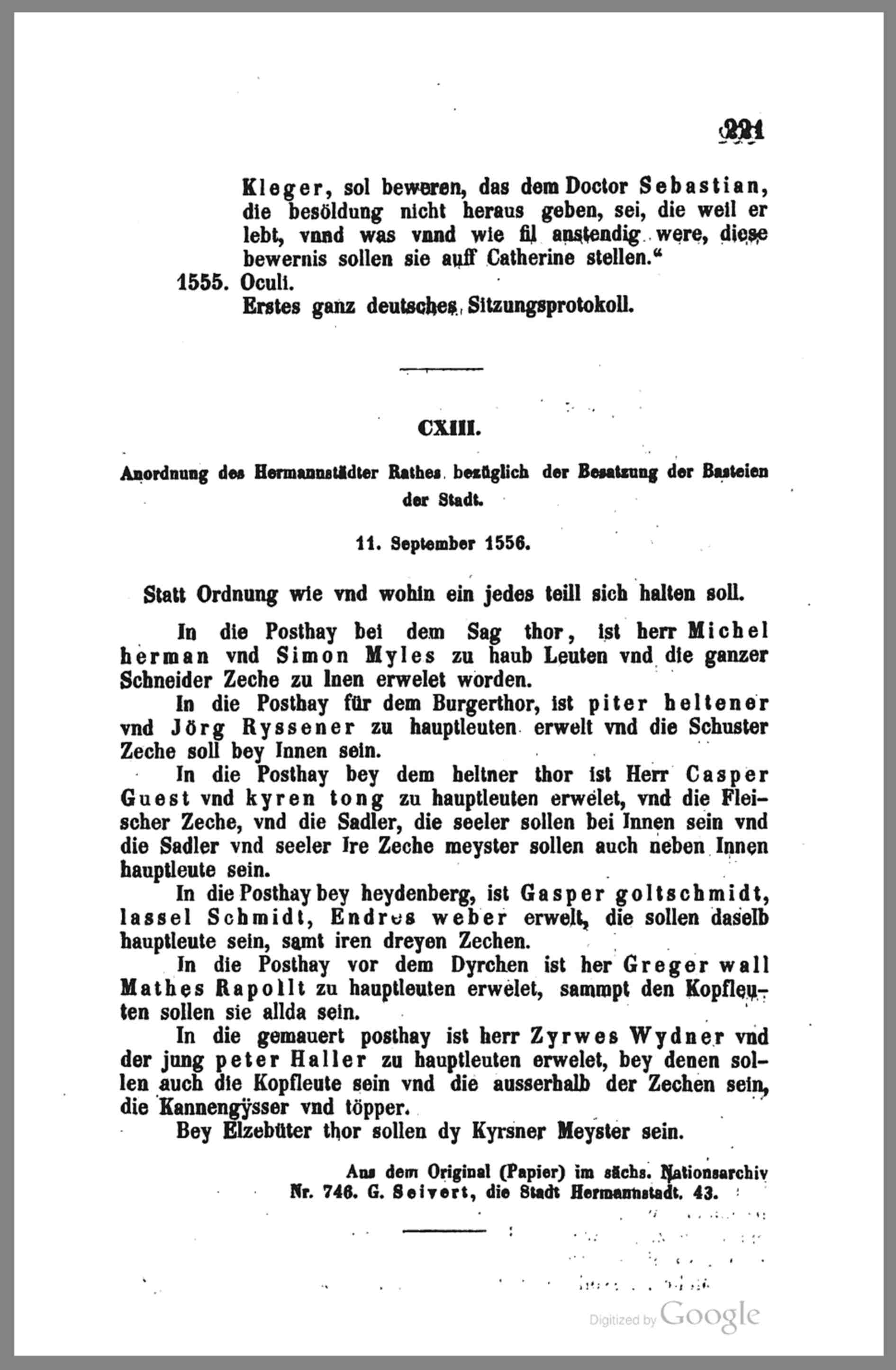 Ilustrație din ahiva grupului de facebook Alt-Hermannstadt.Sursă informație, „Chronik der Stadt Hermannstadt 1100-1929” // „Cronica orașului Sibiu 1100-1929” de Emil Sigerus:
