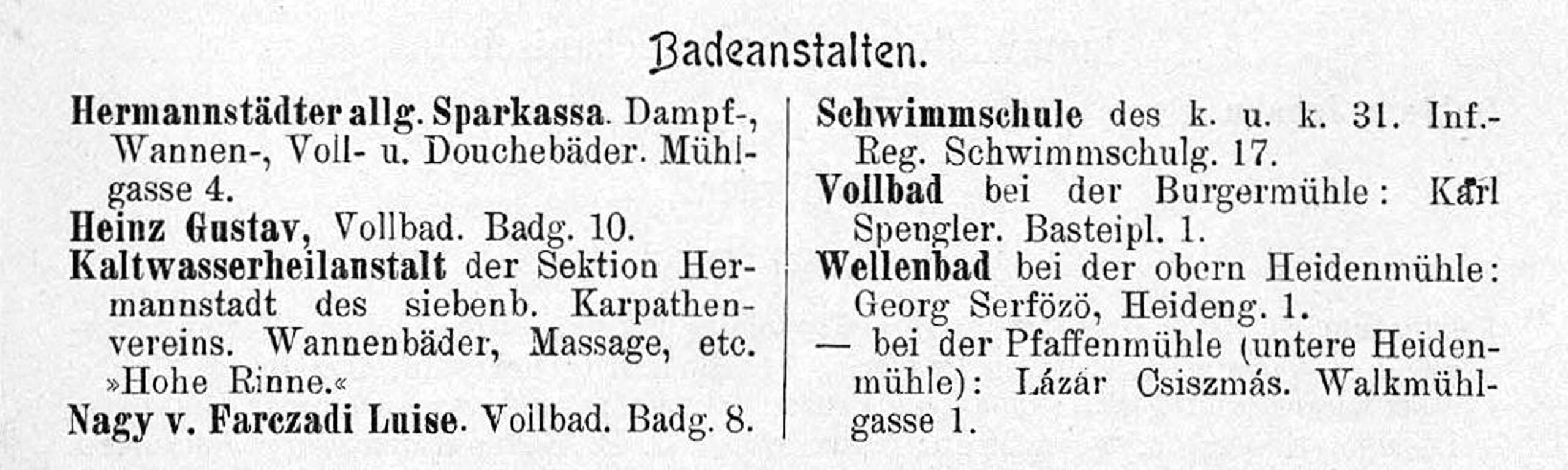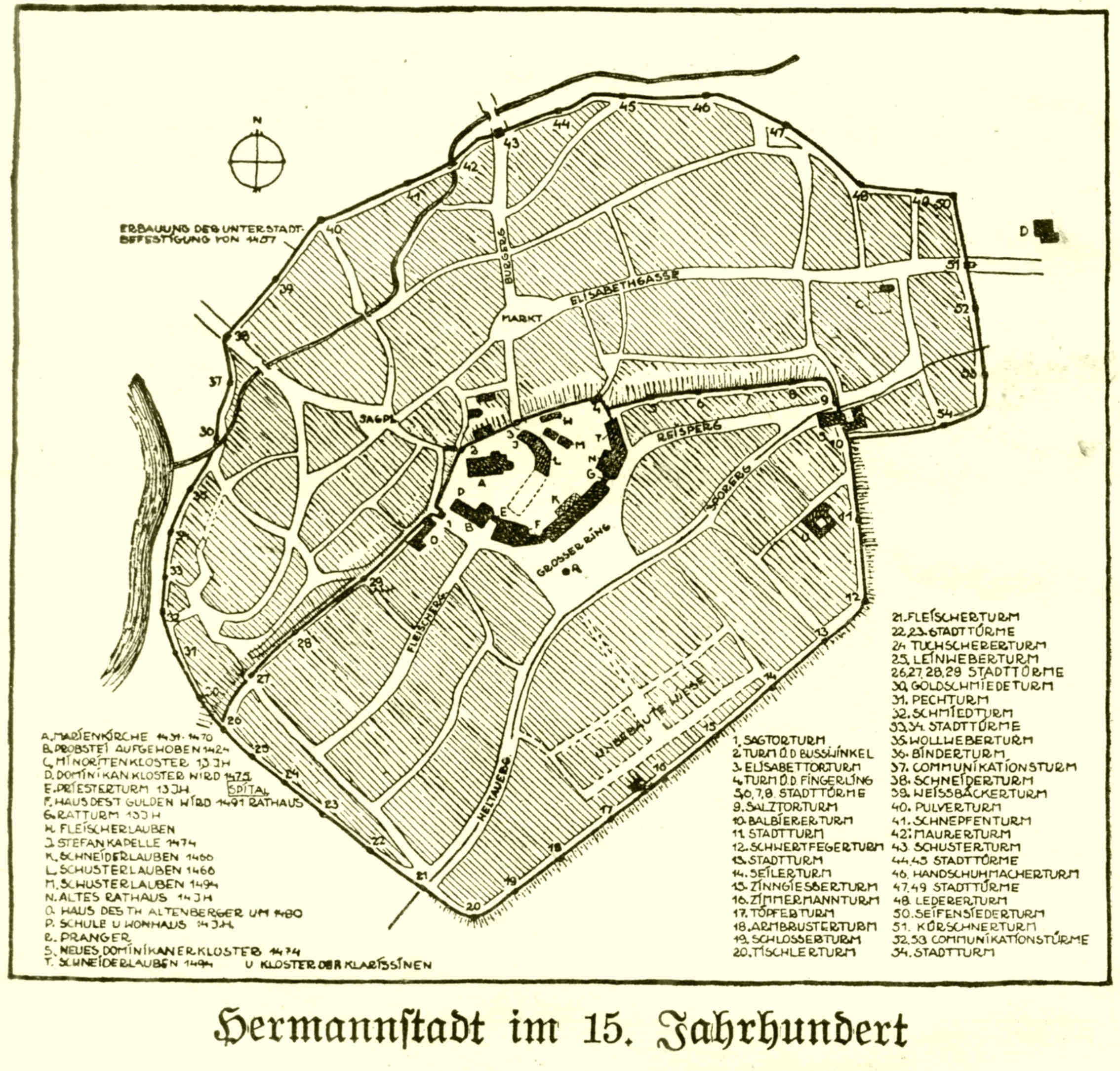 (Textul original din harta orașului Sibiu desenat de Böbel 1882/83) -