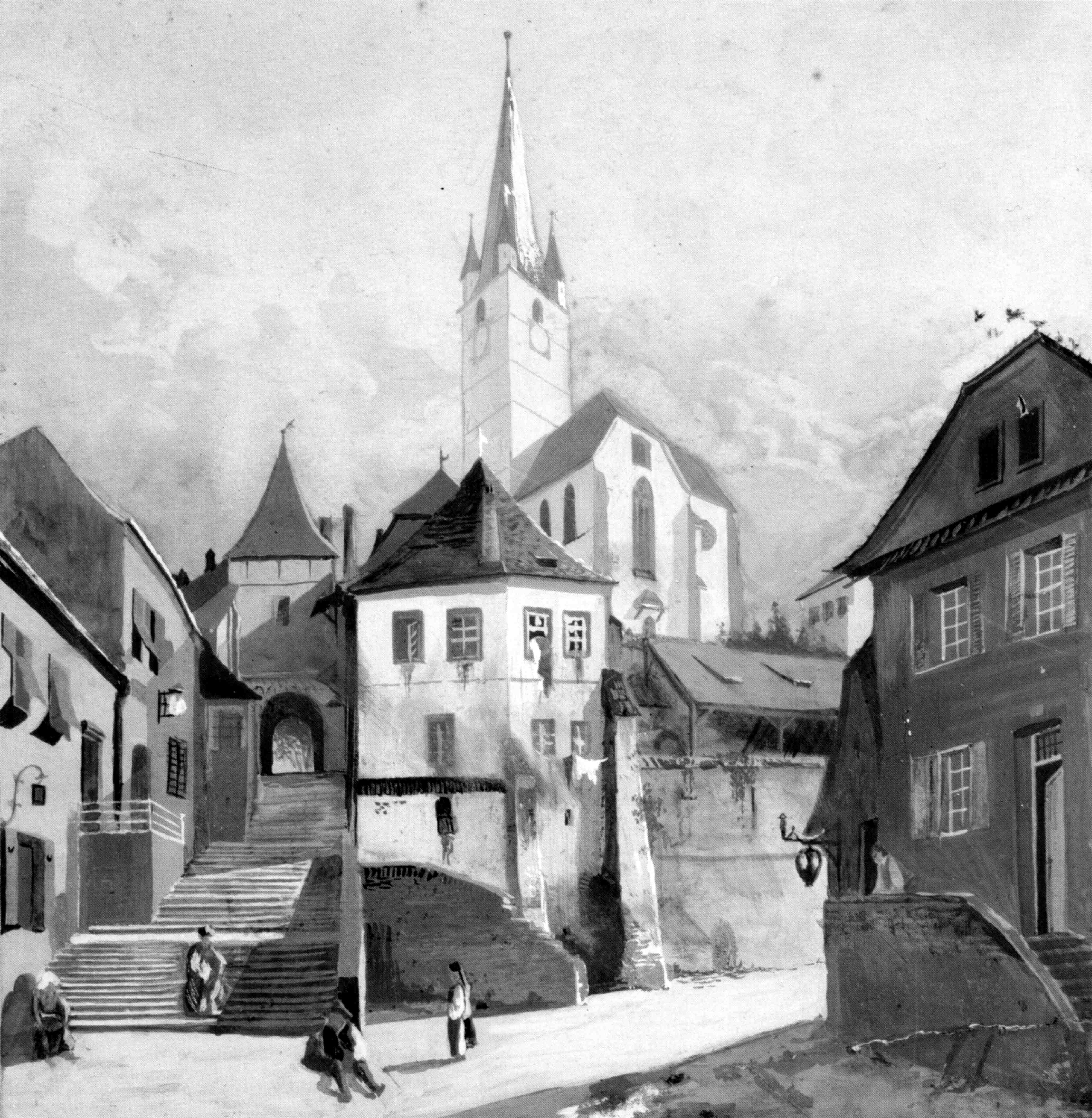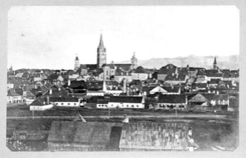 „Hermannstadt von der Kirche der Heiligen Apostel Petrus und Paulus aus gesehen” // „Sibiul privit dinspre Biserica Sfinții Apostoli Petru și Pavel” ~ Wilhelm Neudörfer