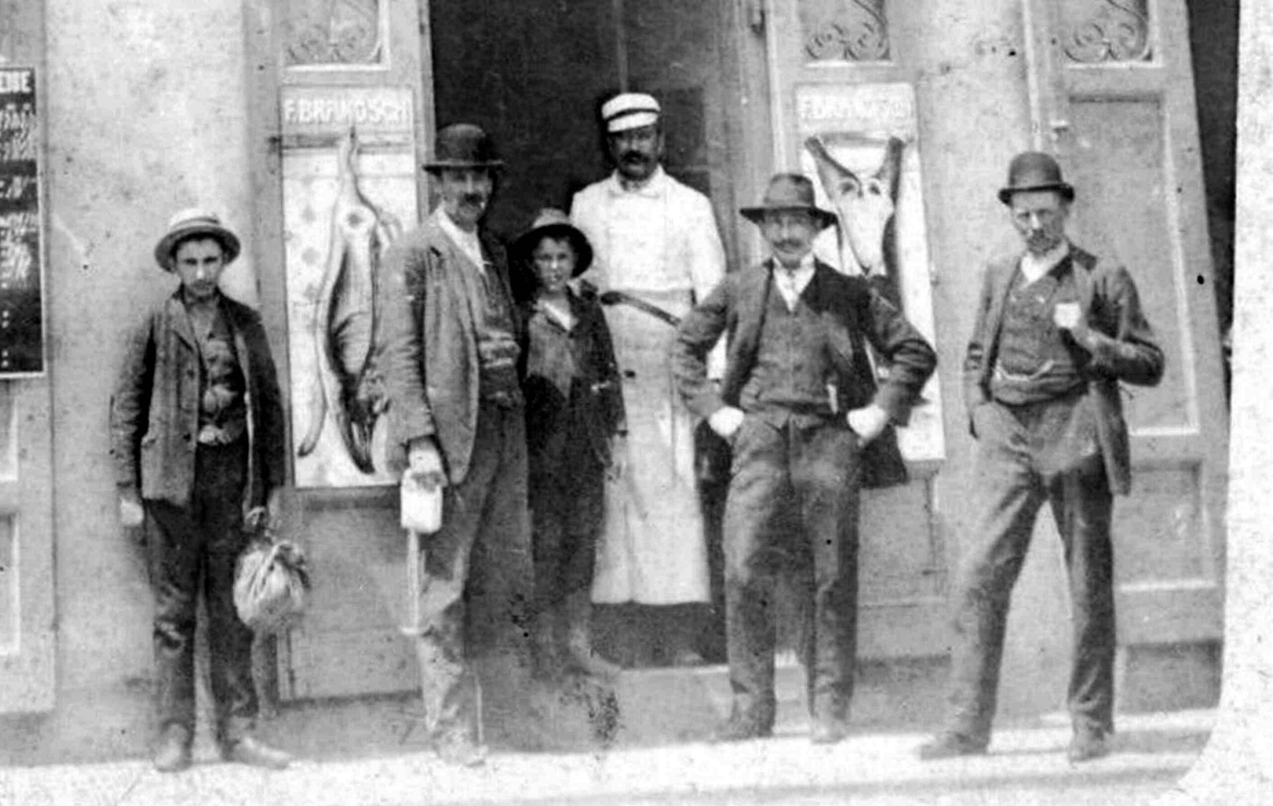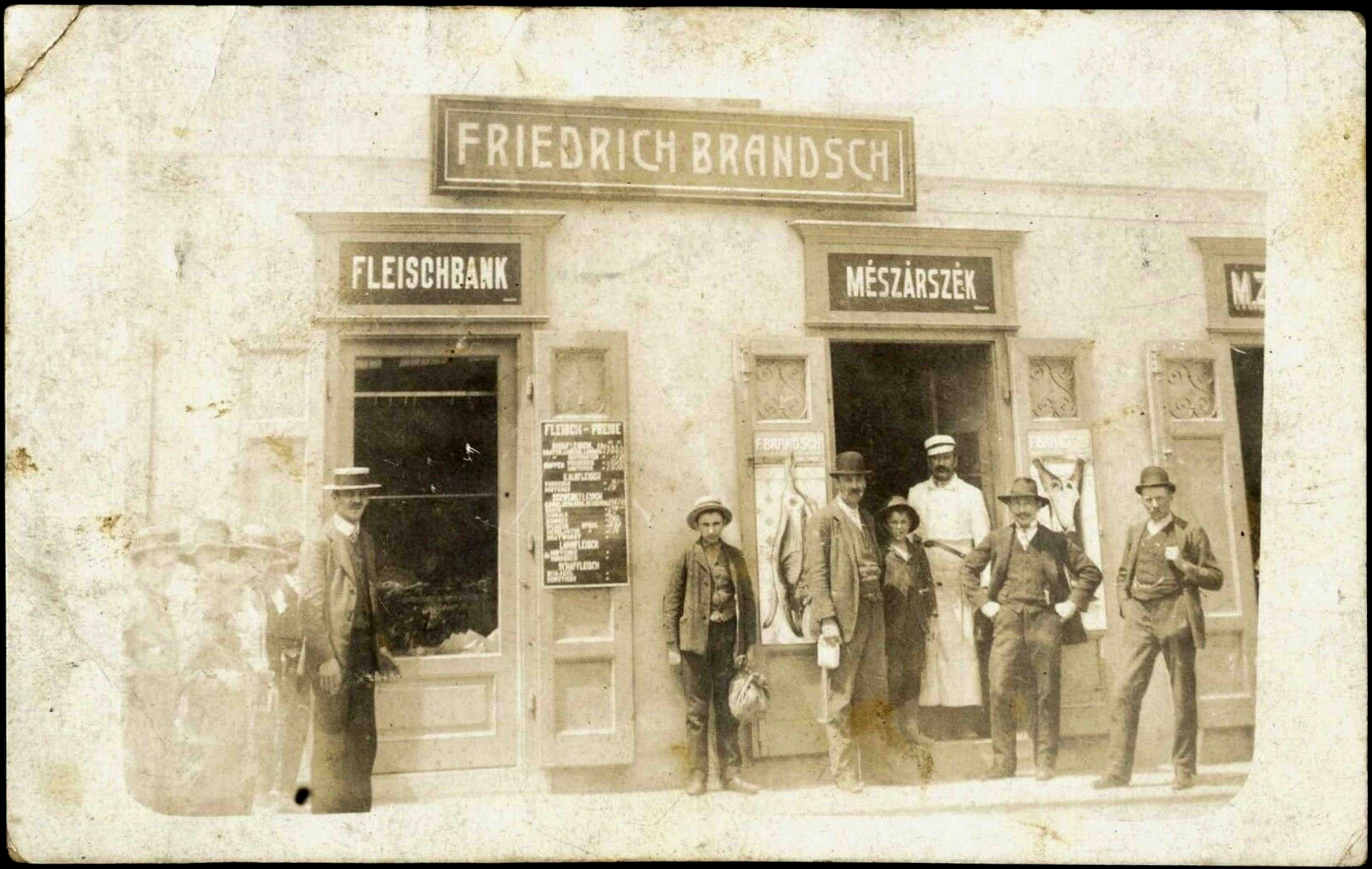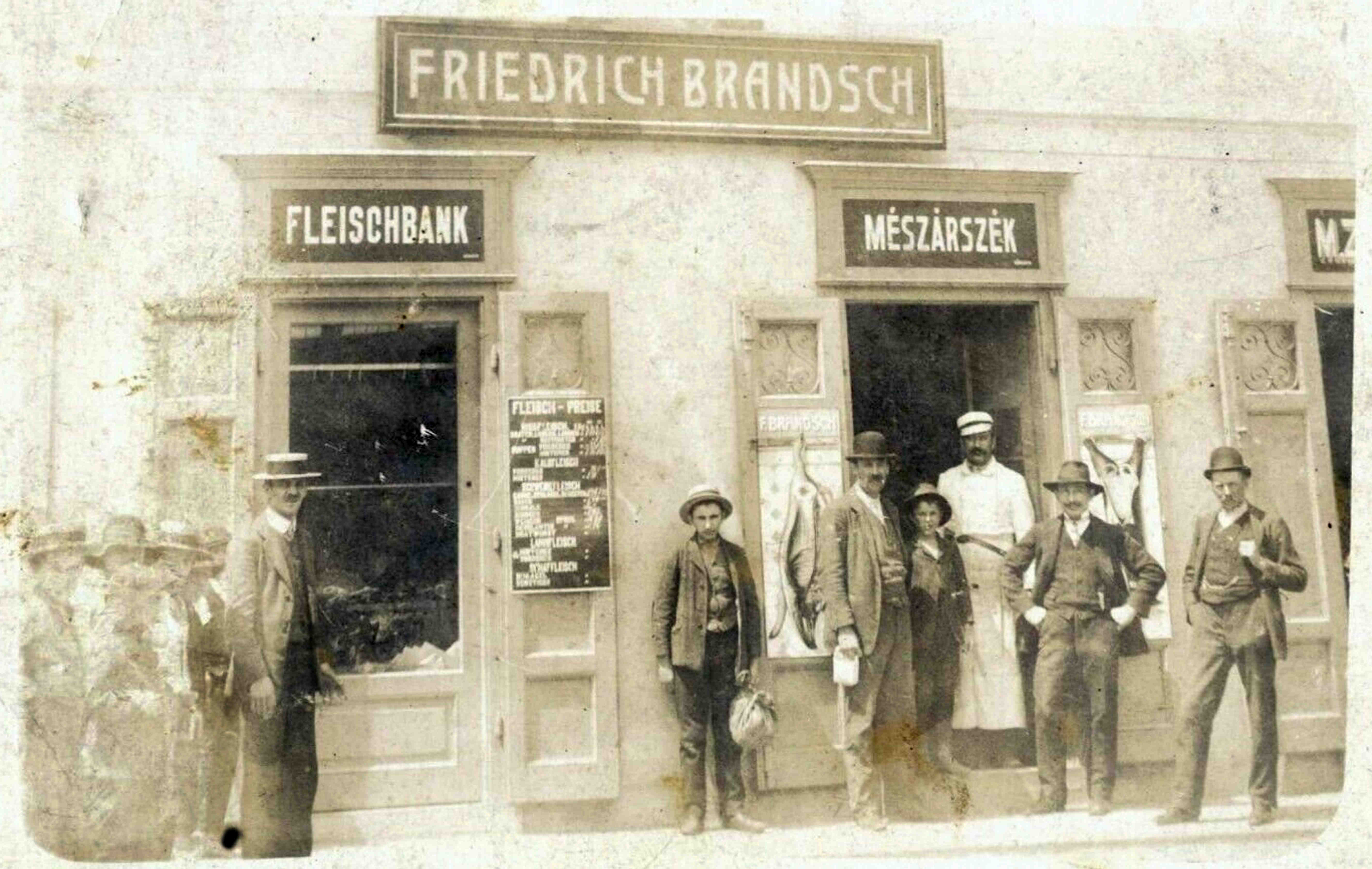Din cărțile de adrese din perioada antebelică, ( sfârșitul secolului 19 – începutul secolului 20 ), aflăm că Friedrich Brandsch era proprietarul imobilului, str. Morilor // Heidengasse nr.17 ( număr vechi ), unde se afla și sediul măcelăriei. În carte de adrese din 1933 măcelarul Friedrich Brandsch apare la adresa str. Morilor nr.35. În cărțile de adrese din 1911 și 1933 este listată și filiala măcelarului Brandsch, str. Turnului nr.9 ( 13-15 ), vizibilă în această fotografie.