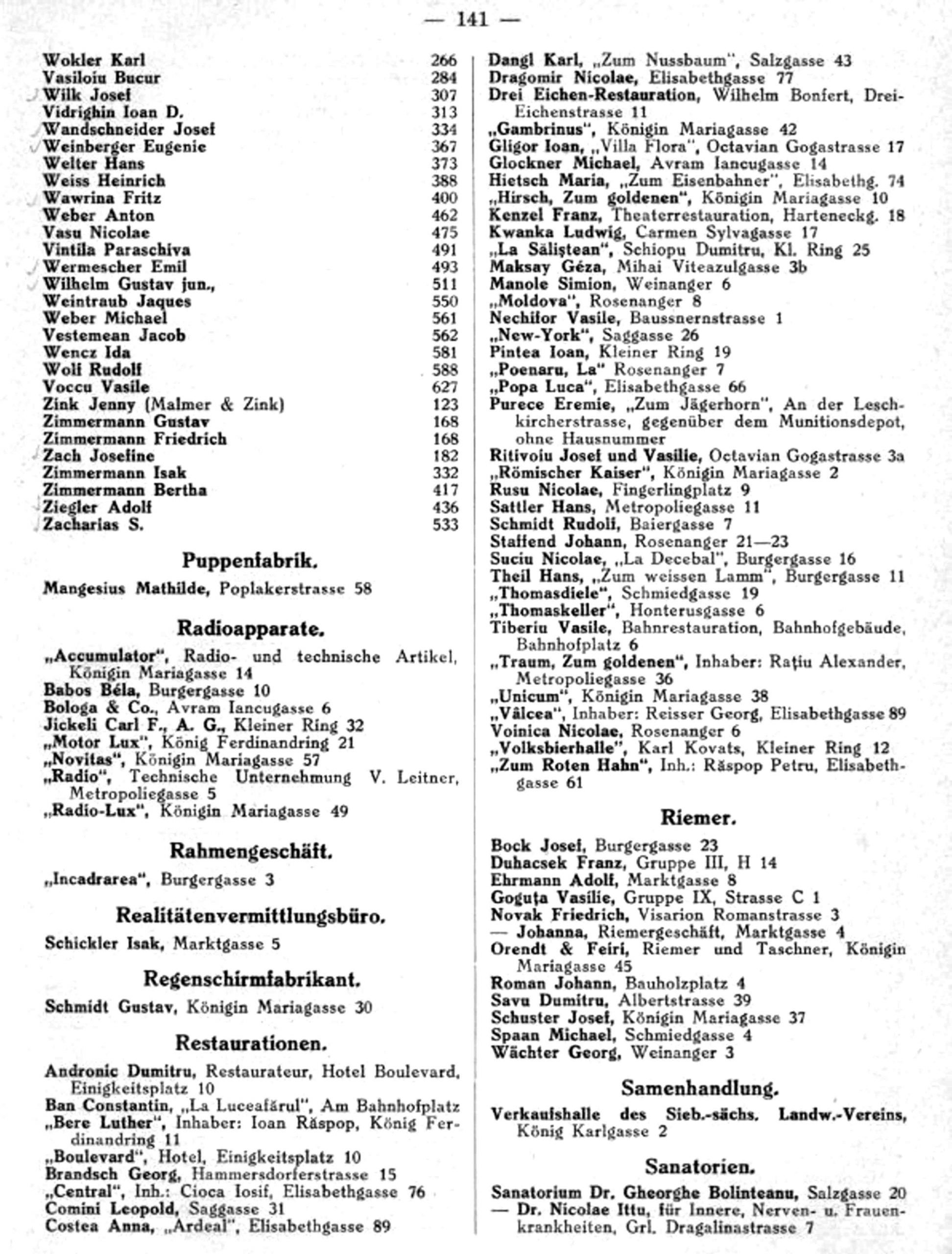 Tot aici a funcţionat de la sfârşitul sec. XIX magazinul şi atelierul de ceasuri a lui Adolf Hemper (până în 1932).”Ilustrații din arhiva grupului de Facebook Alt-Hermannstadt.