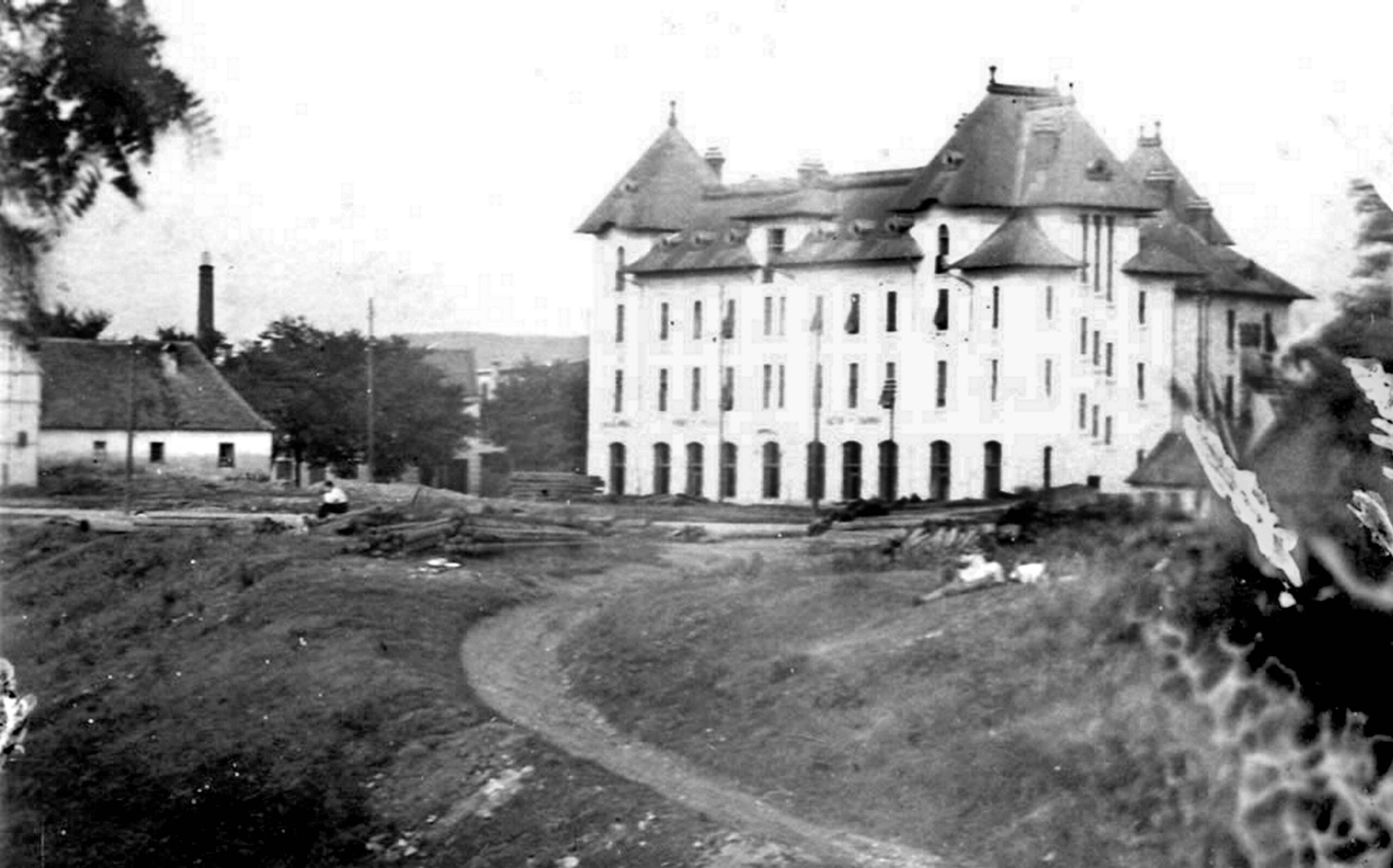 Această fotografie rară cu valoare documentareă, intitulată „FRANZ JOSEF BÜRGER SPITAL IN HERMANNSTADT” ne prezintă Spitalul Public din Sibiu fotografiat de fotograful sibian Theodor Glatz ( 1818-1871 ) în 1860, după doar 3 ani de la inaugurarea spitalului în 1867.