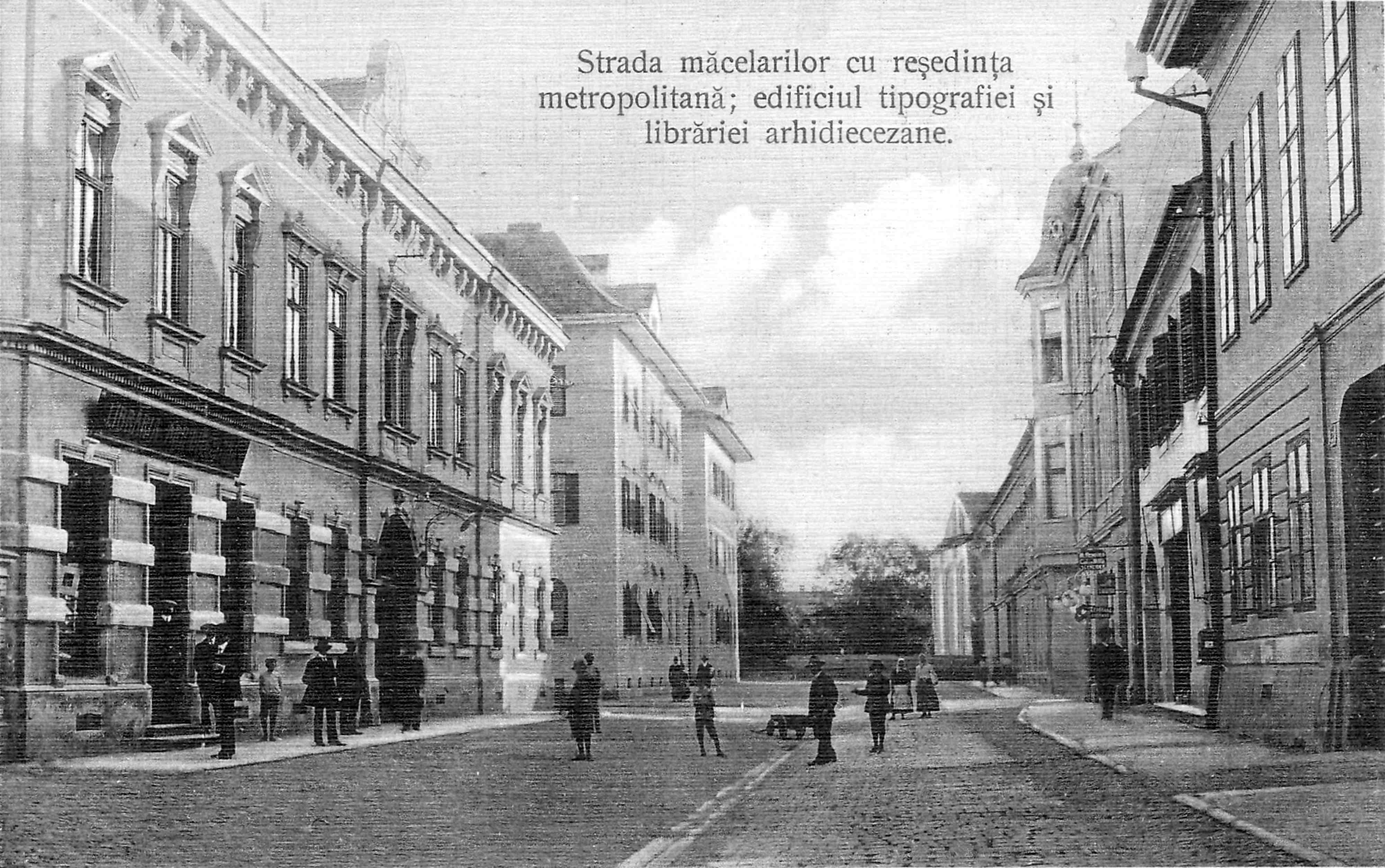 „Fleischergasse | Măcelarilor Straße / Mitropoliei Straße / Mészáros utca” // „Strada Măcelarilor | Mitropoliei / Fleischergasse / Mészáros utca” ( 1911 )