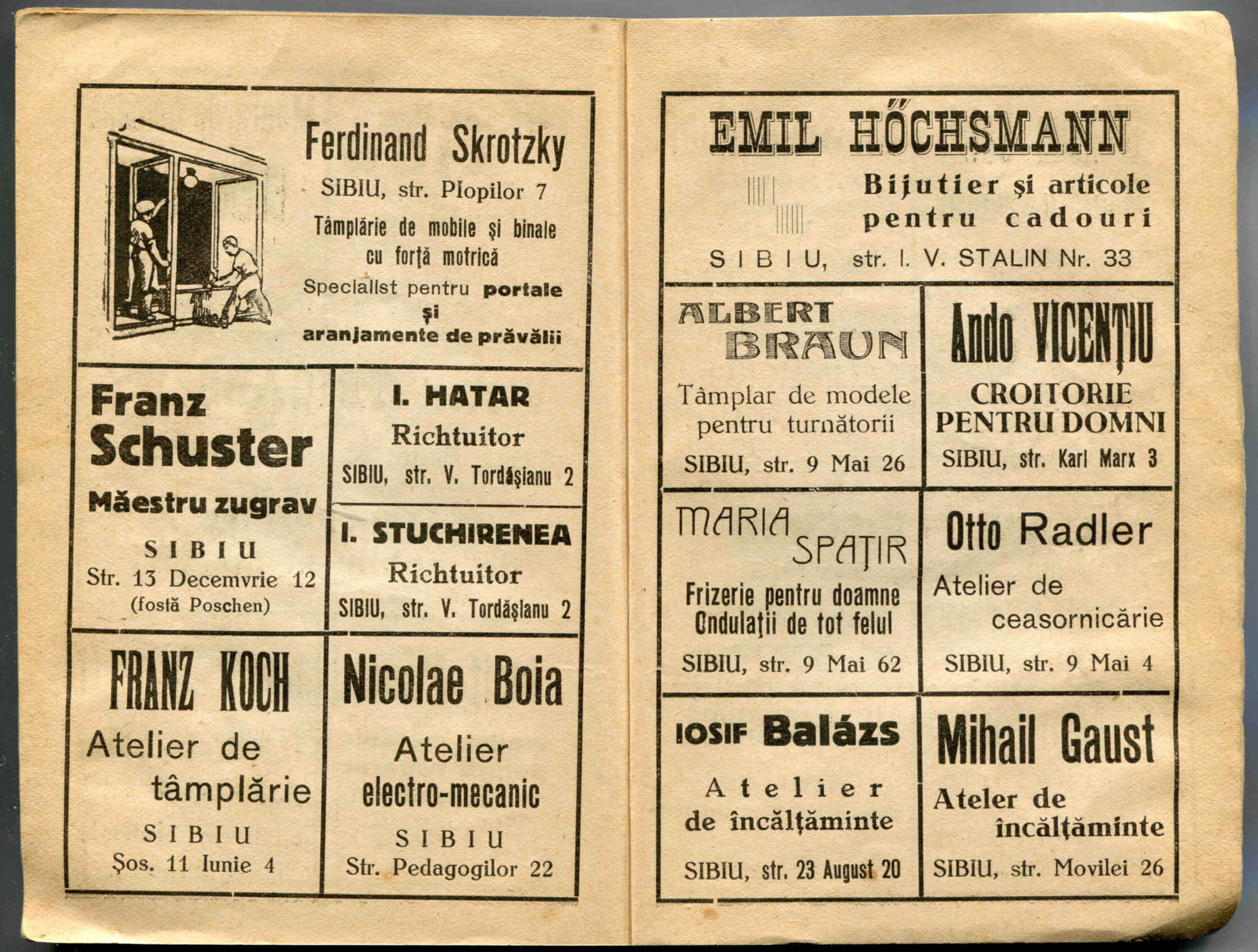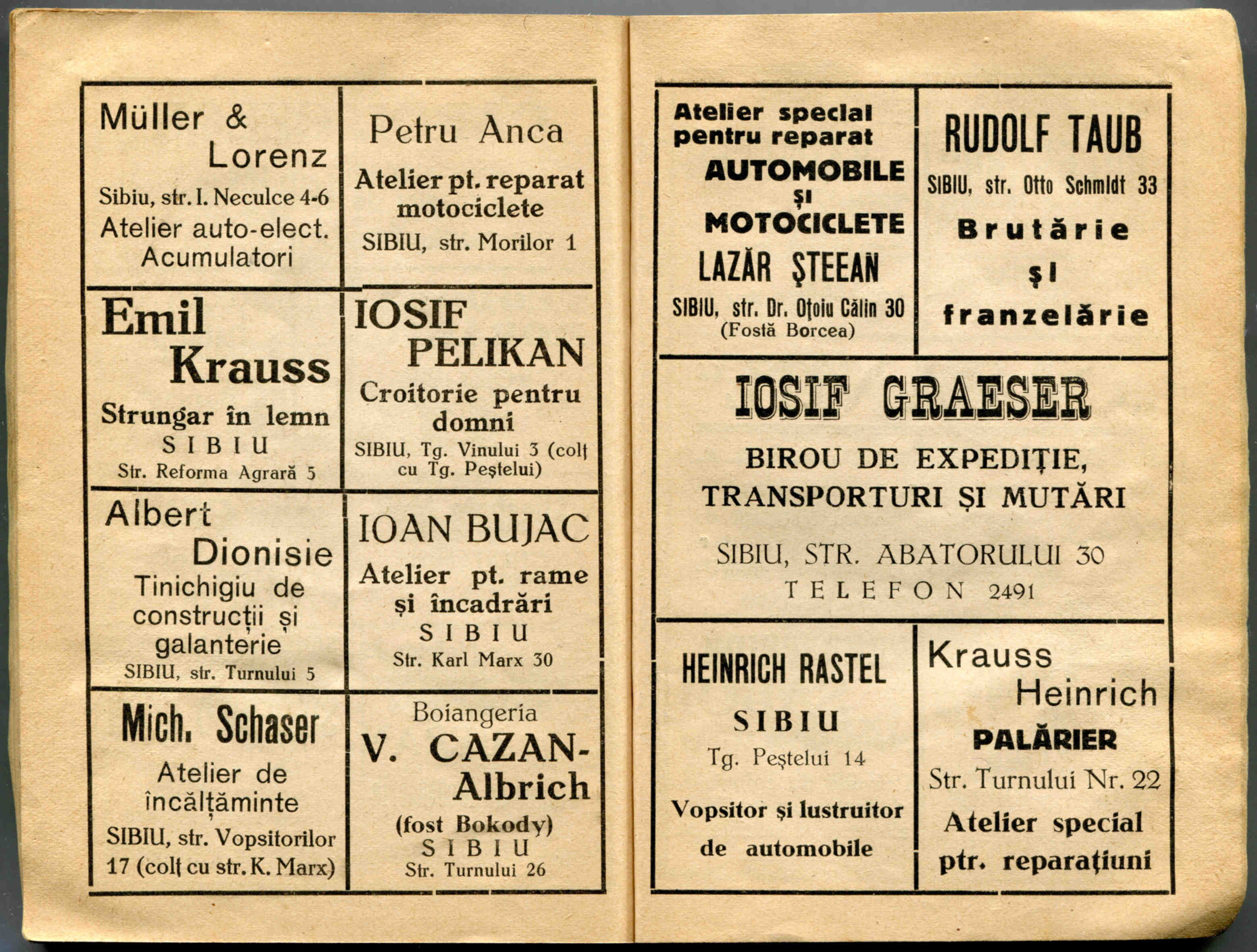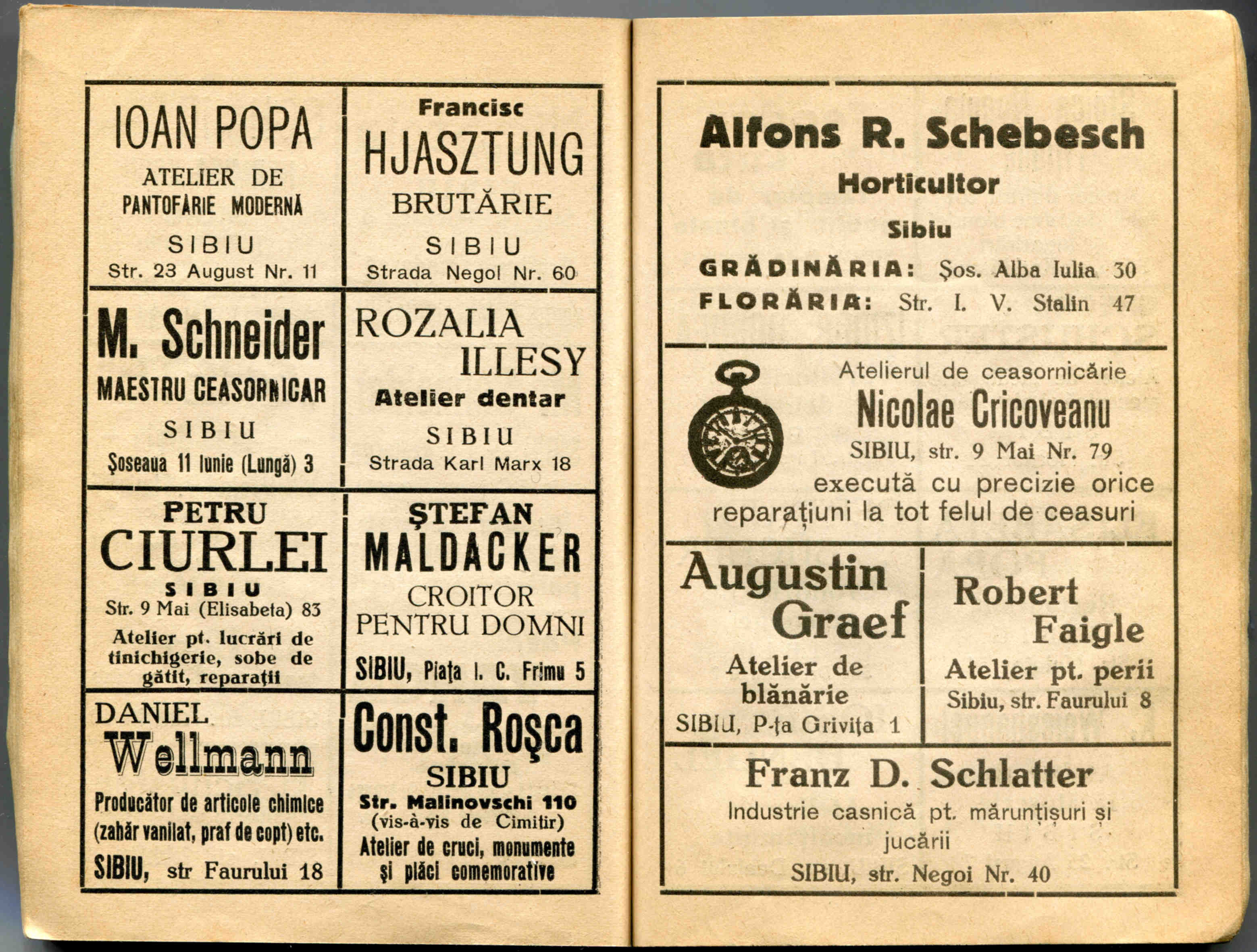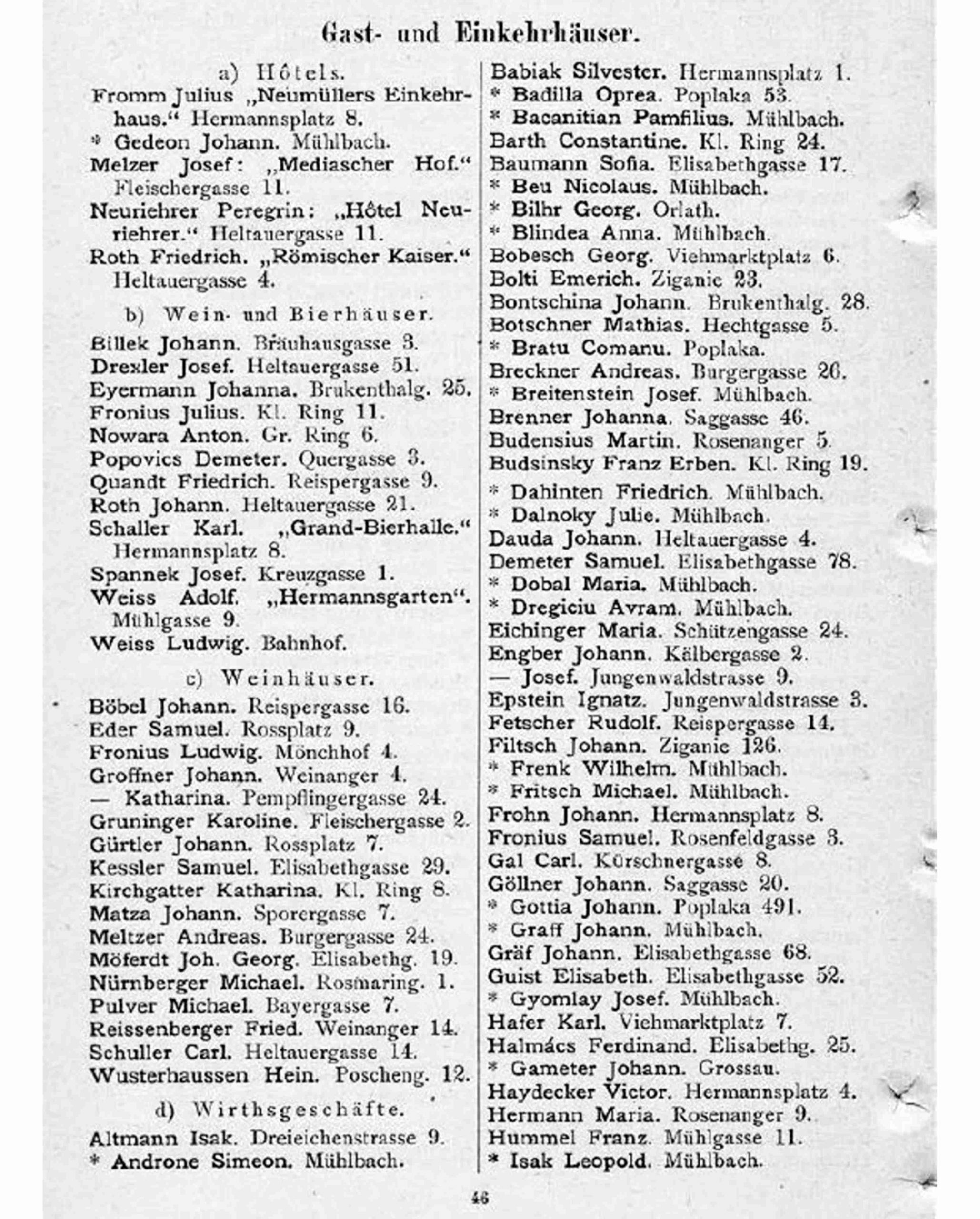 În cartea de adrese, 1911, directorul comercial ( Geschäftsleiter ) Victor Onițiu este listat cu adresa de domiciliu la strada Fleischergasse 29 // Măcelarilor 29, ( azi, strada Mitropoliei 27 ), vis-à-vis de băcănie!