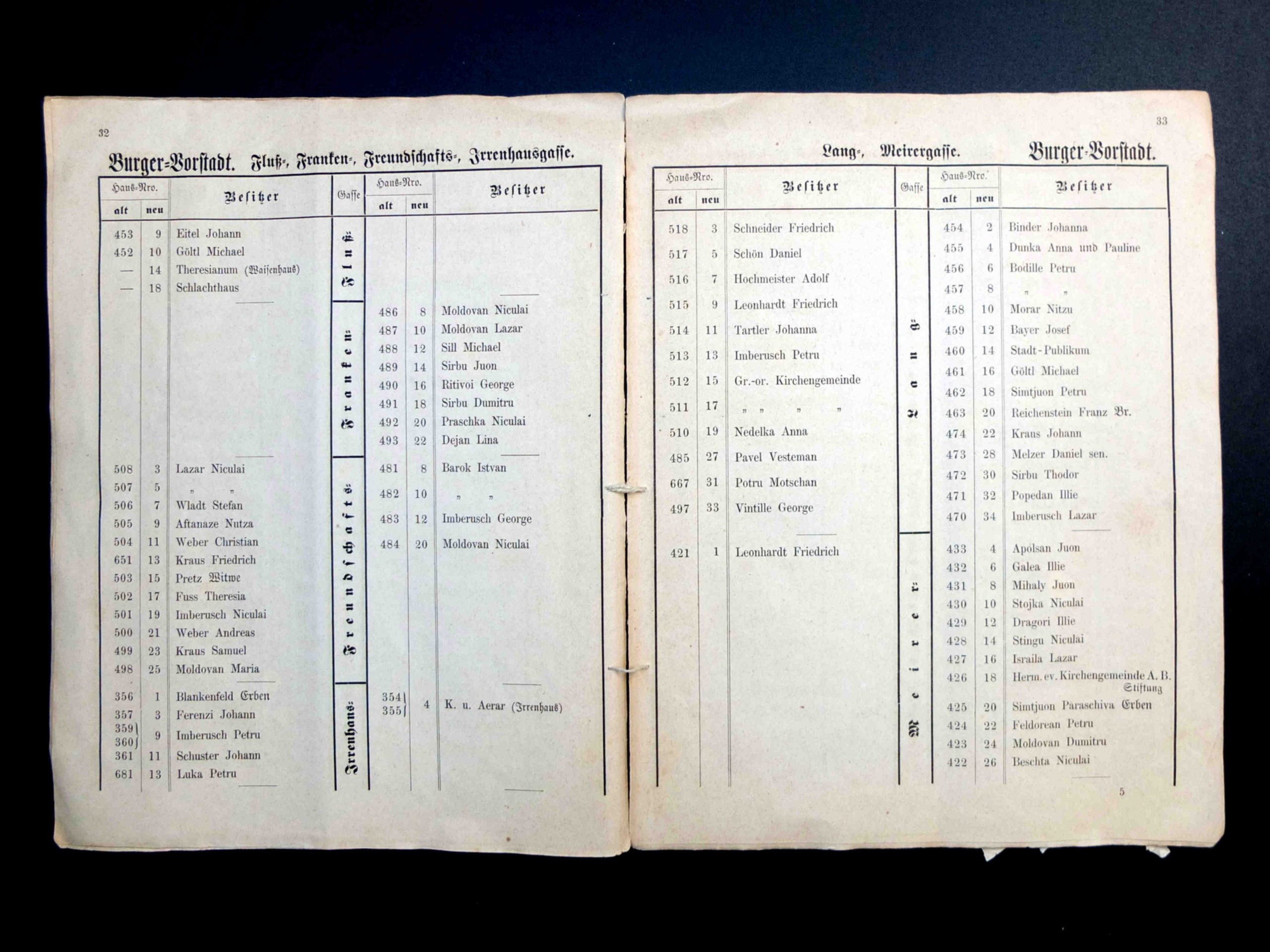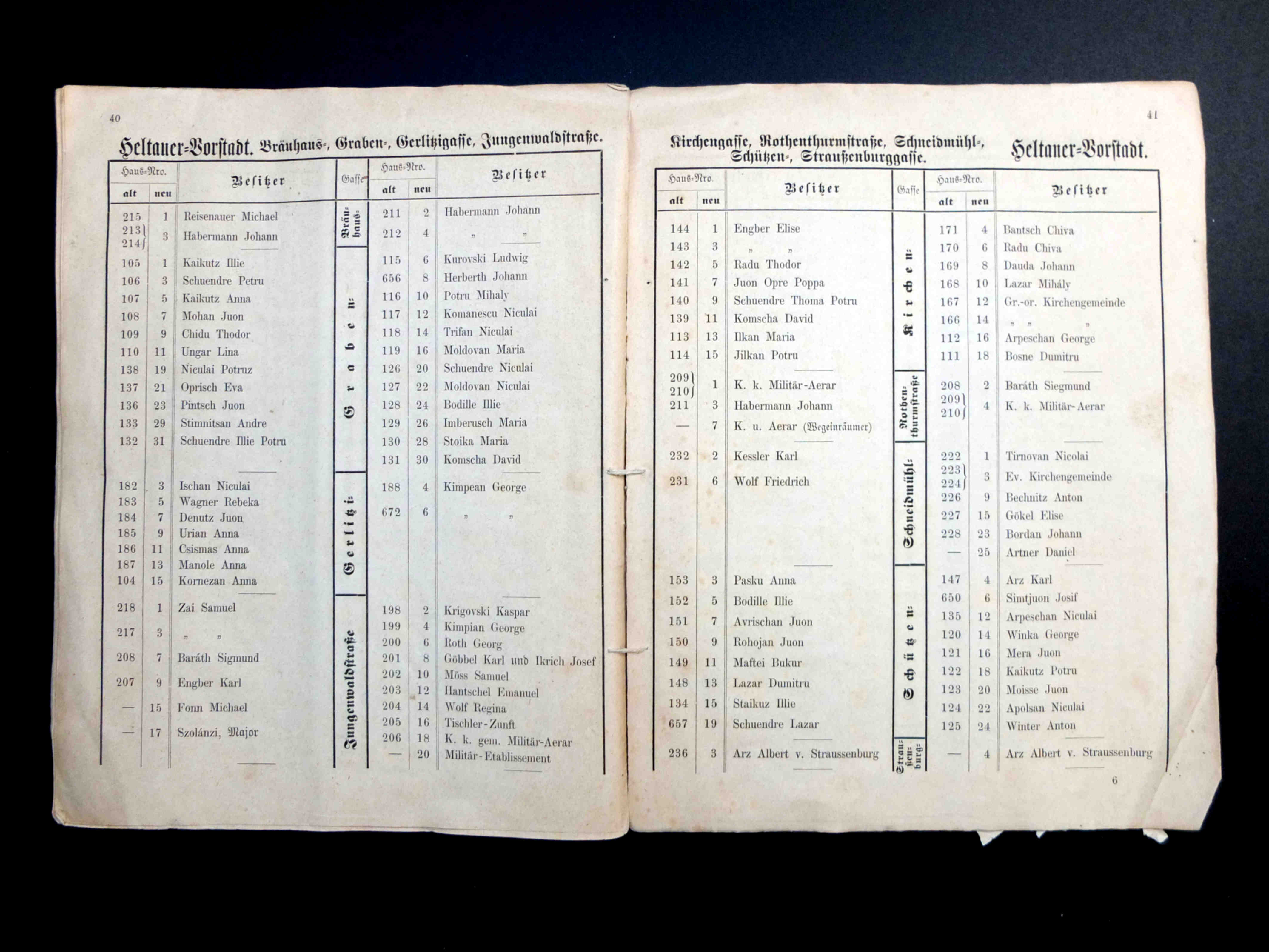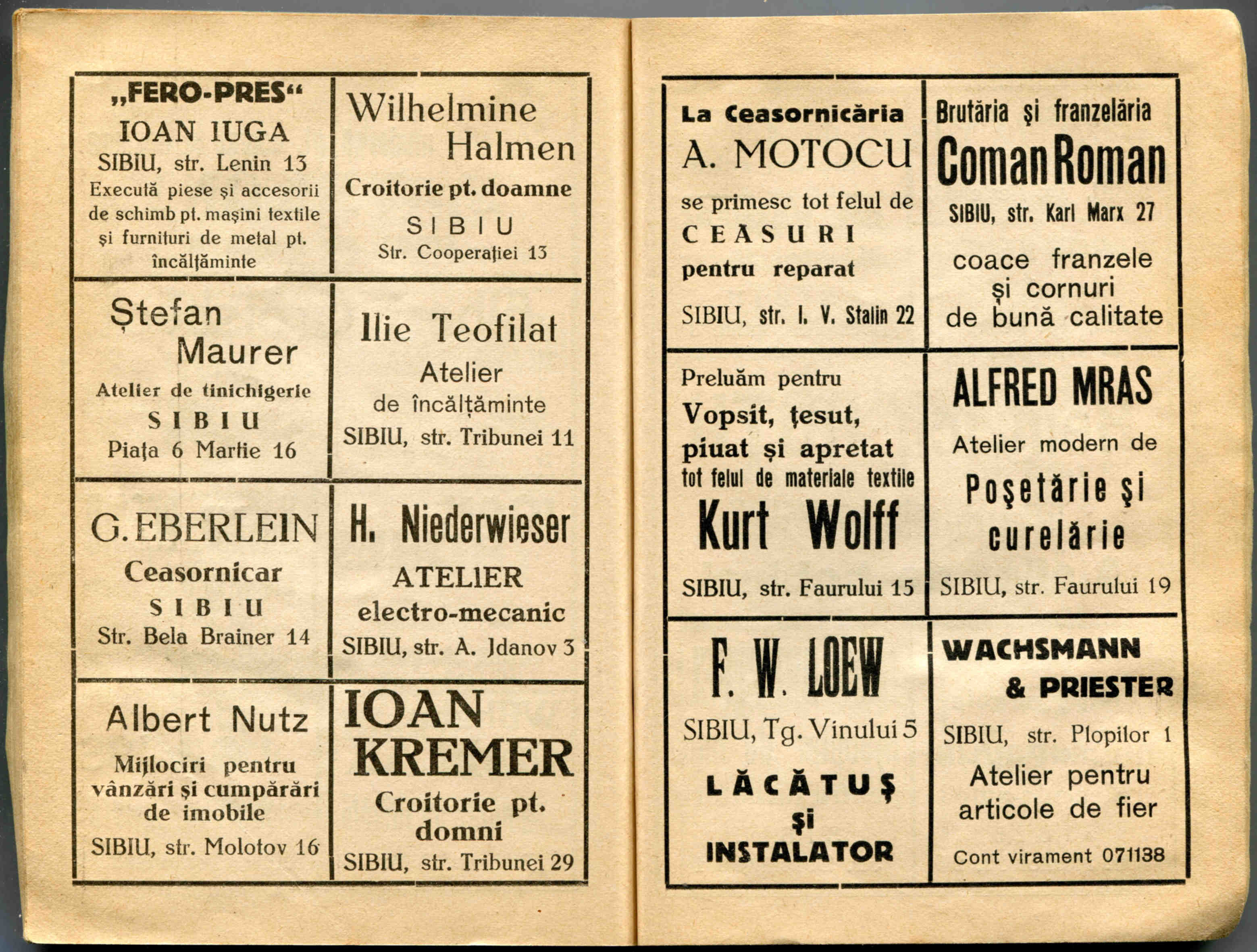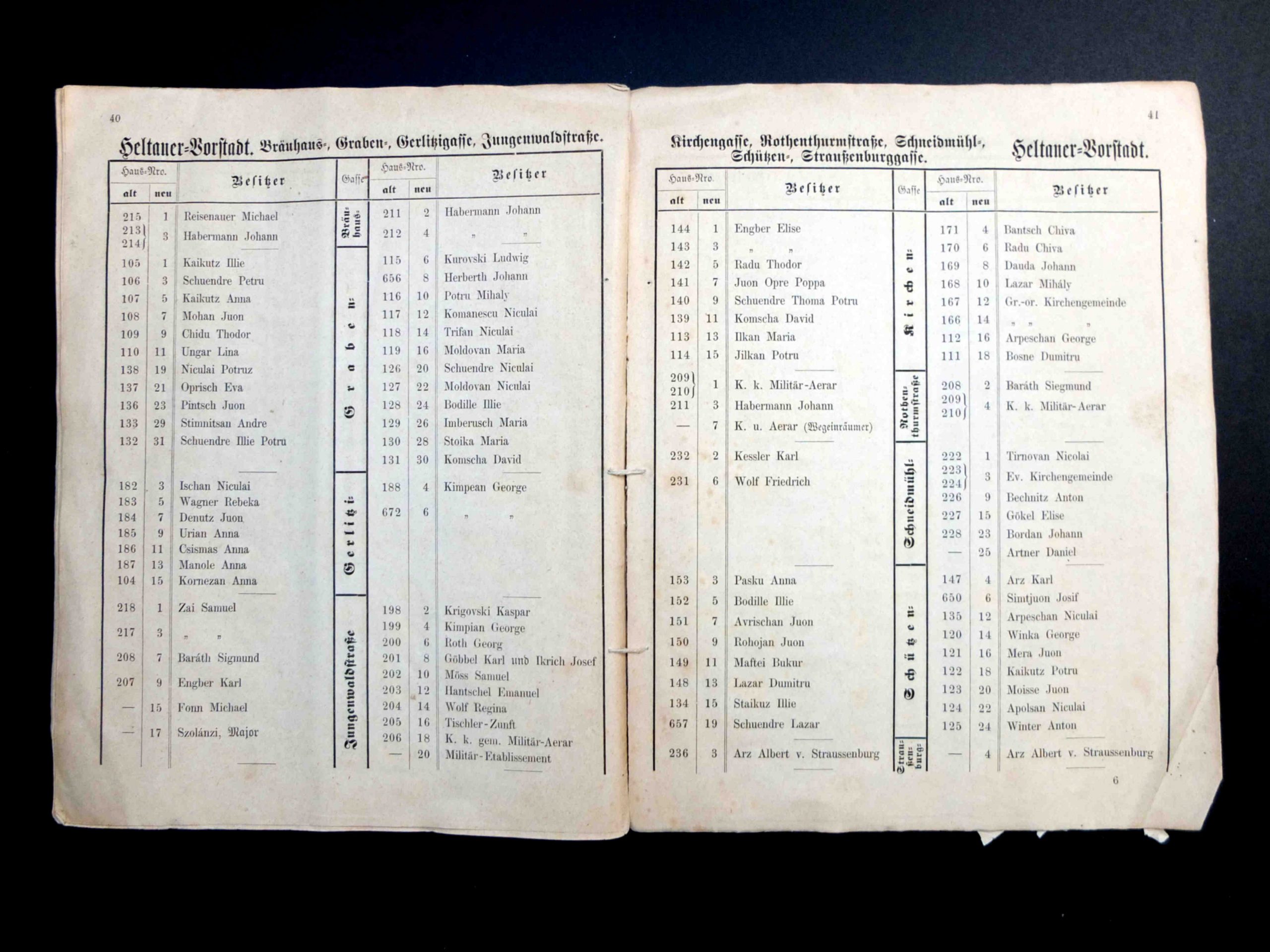În cartea de adrese, 1911, directorul comercial ( Geschäftsleiter ) Victor Onițiu este listat cu adresa de domiciliu la strada Fleischergasse 29 // Măcelarilor 29, ( azi, strada Mitropoliei 27 ), vis-à-vis de băcănie!