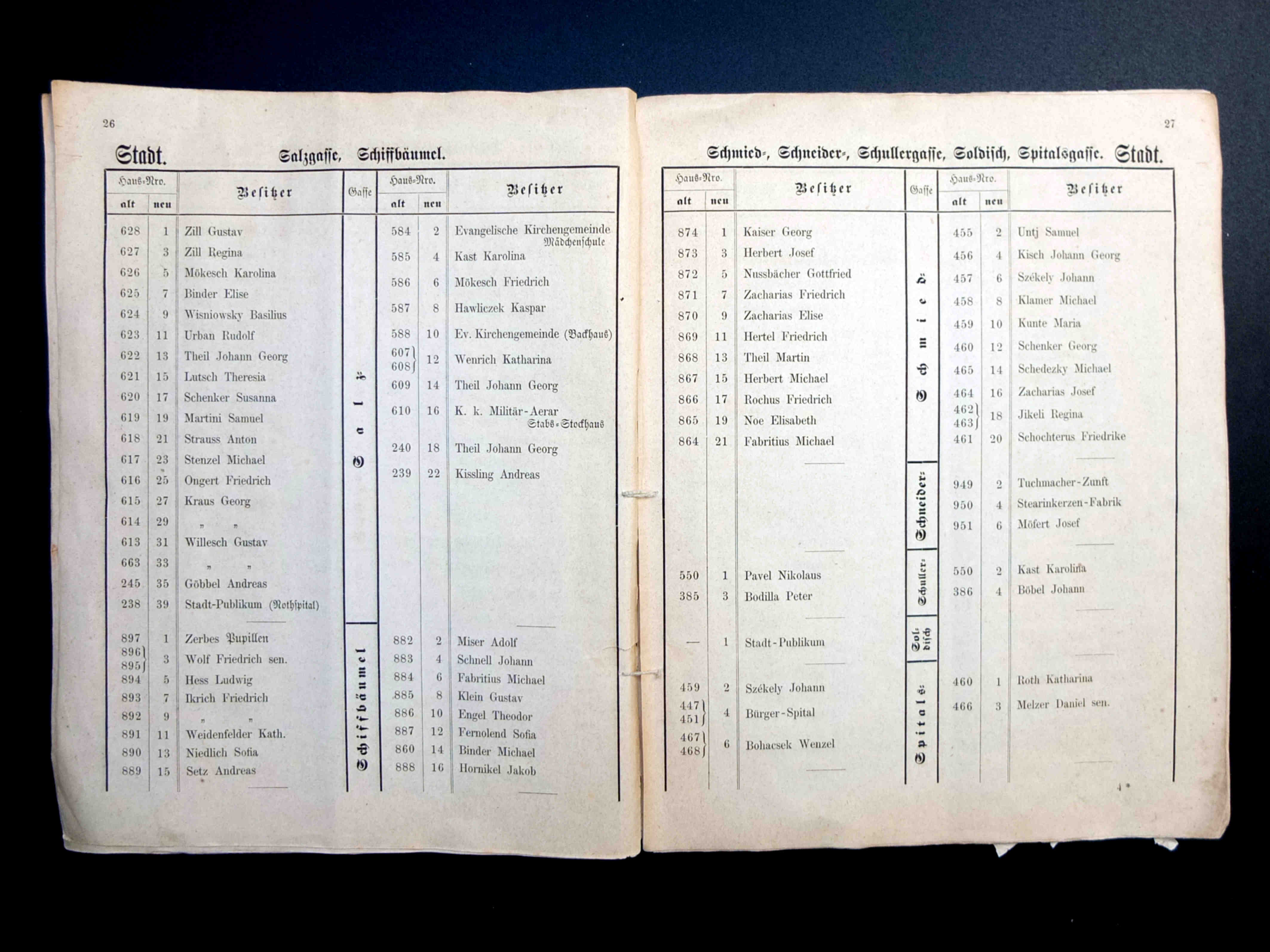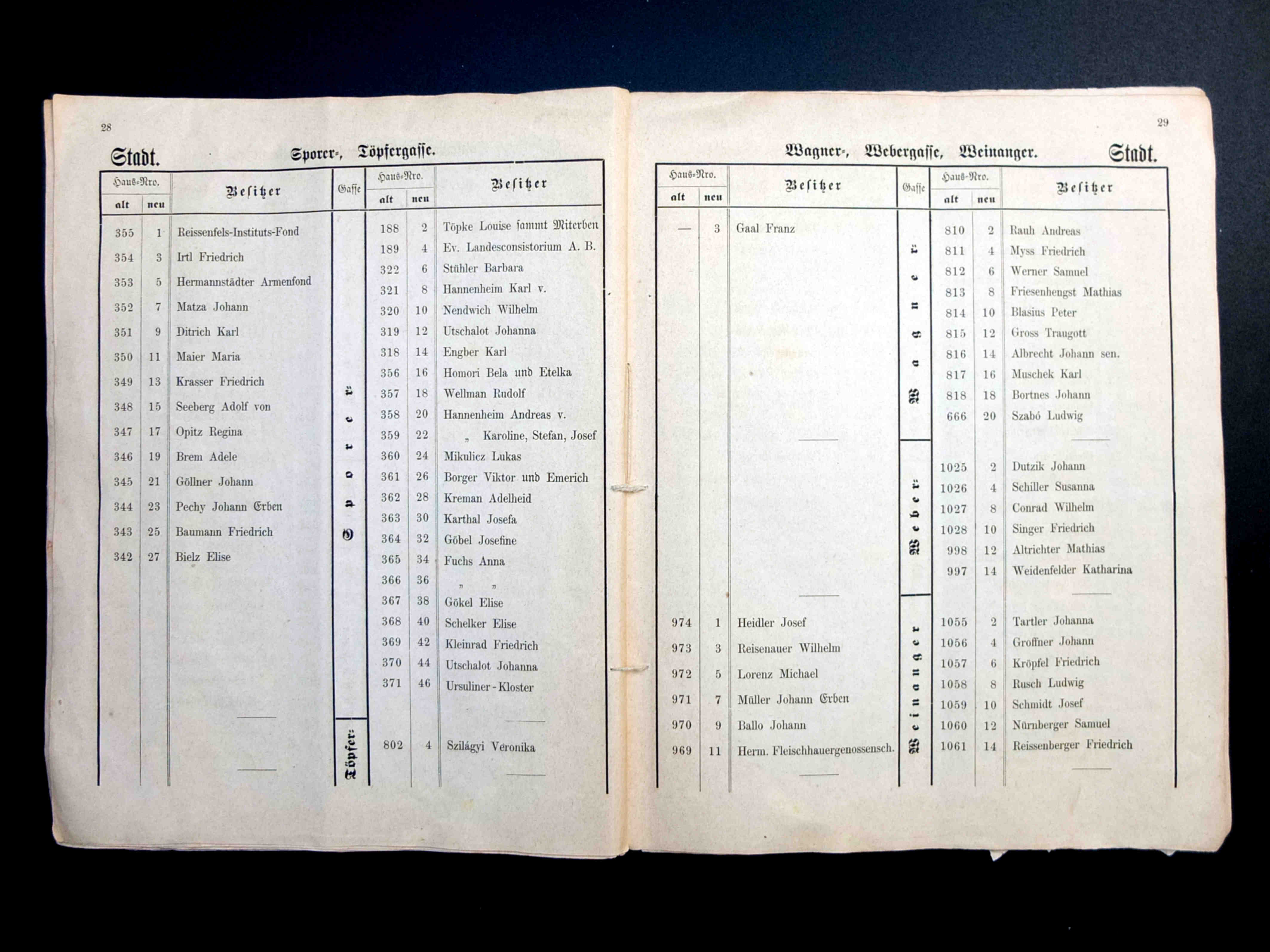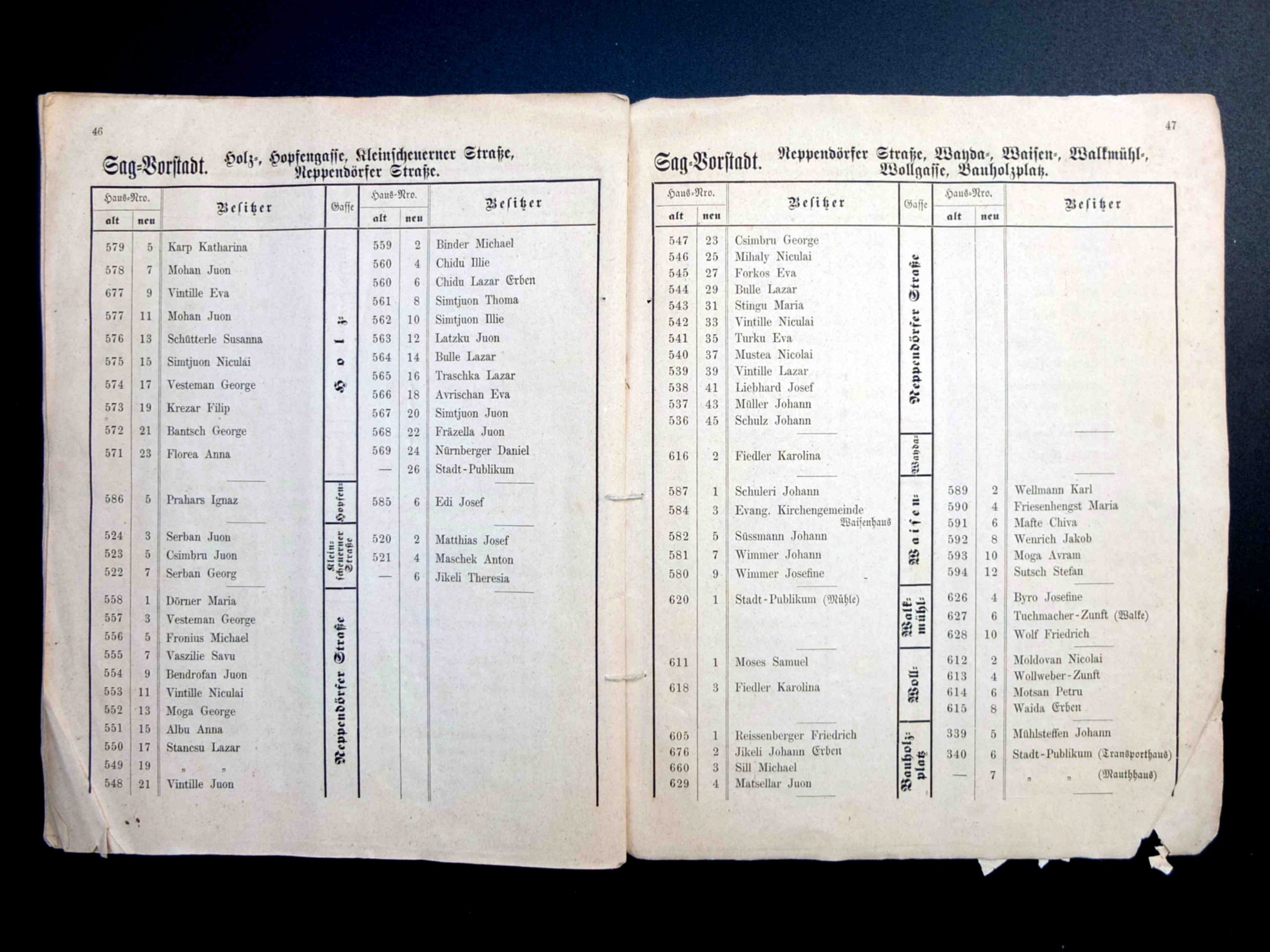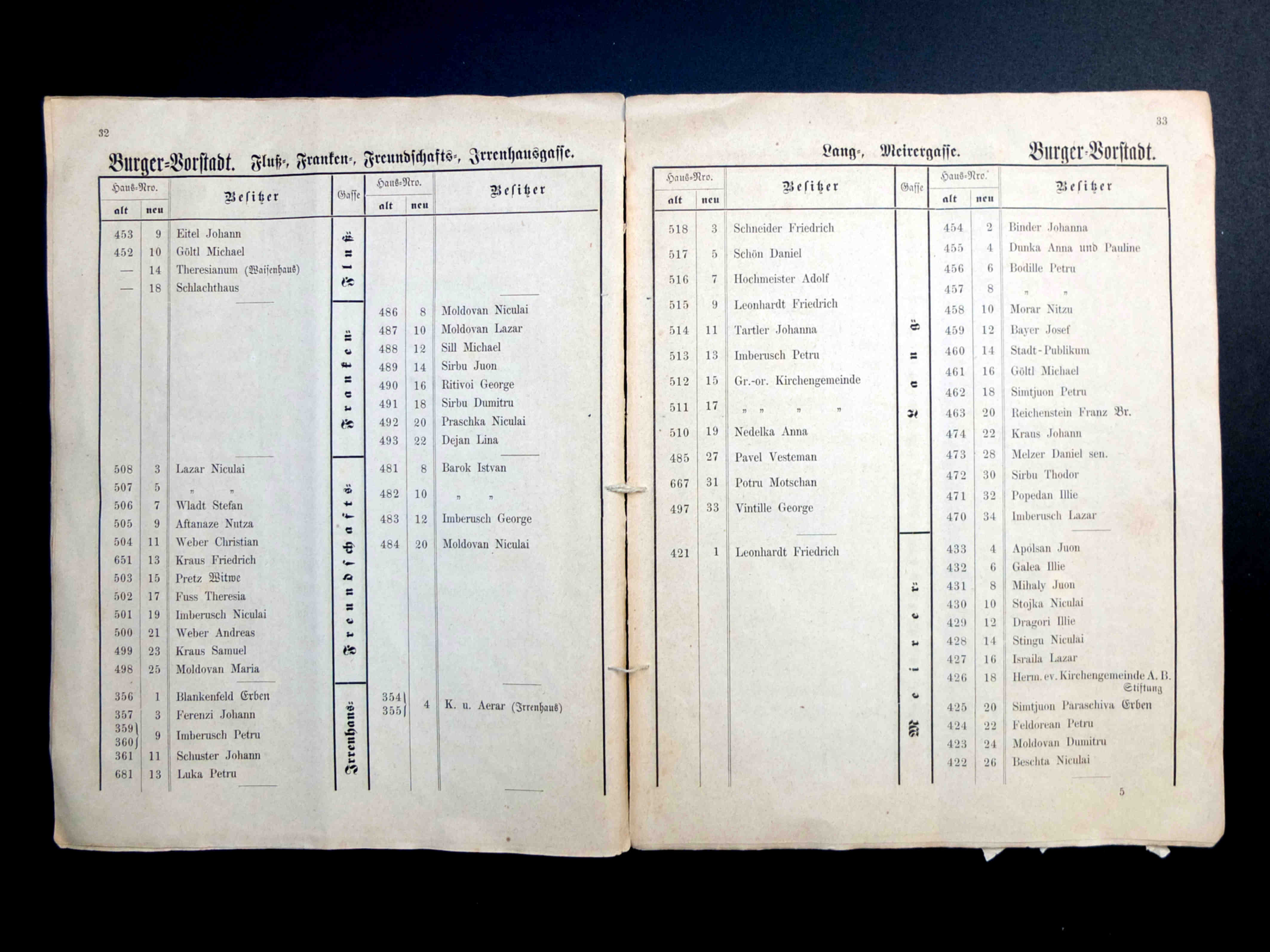 În cartea de adrese, 1911, directorul comercial ( Geschäftsleiter ) Victor Onițiu este listat cu adresa de domiciliu la strada Fleischergasse 29 // Măcelarilor 29, ( azi, strada Mitropoliei 27 ), vis-à-vis de băcănie!