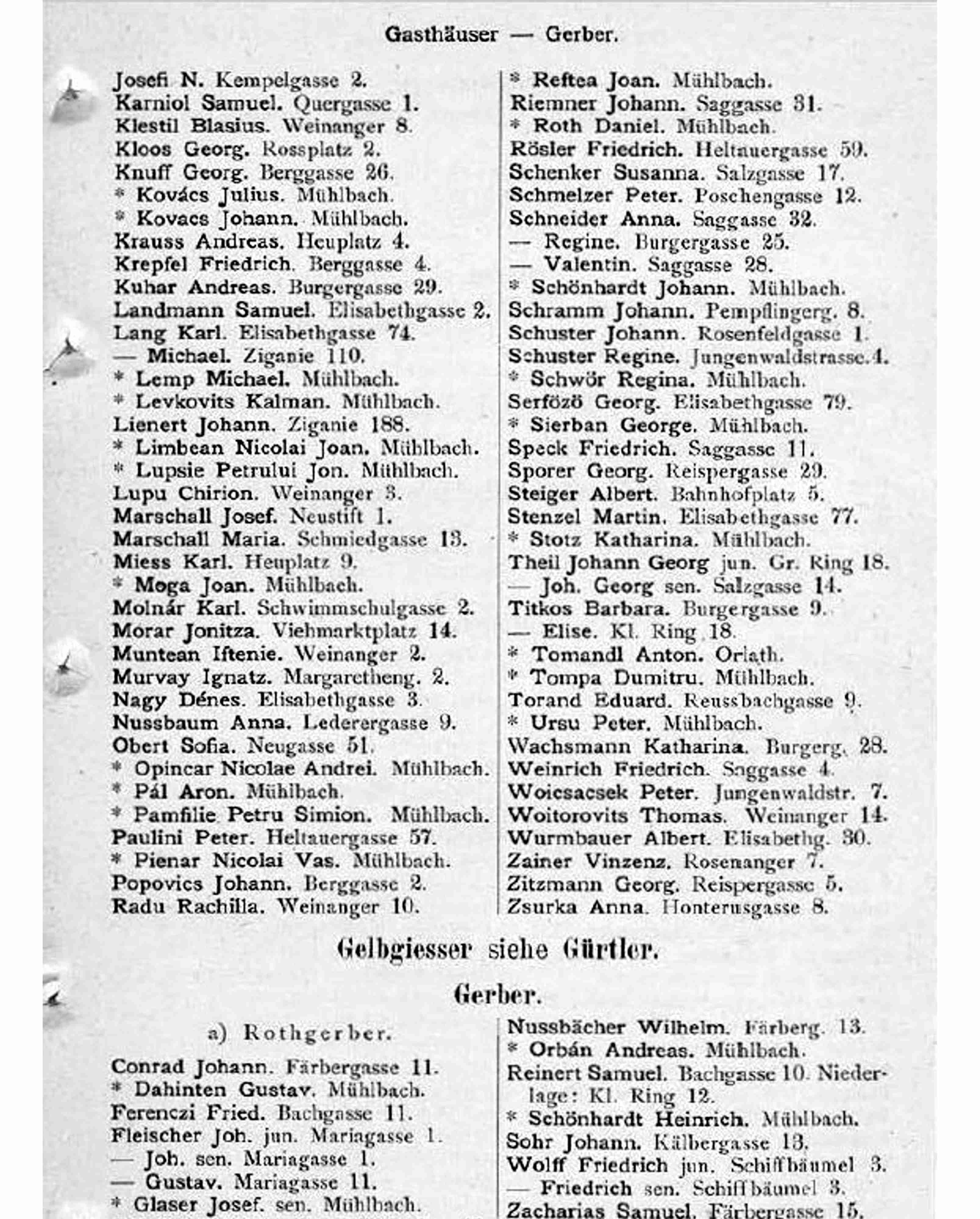 Schemmel Michael – Dreieichenstrasse 11 (Șoseaua Trei Stejari 11 / carte de adrese din 1885).