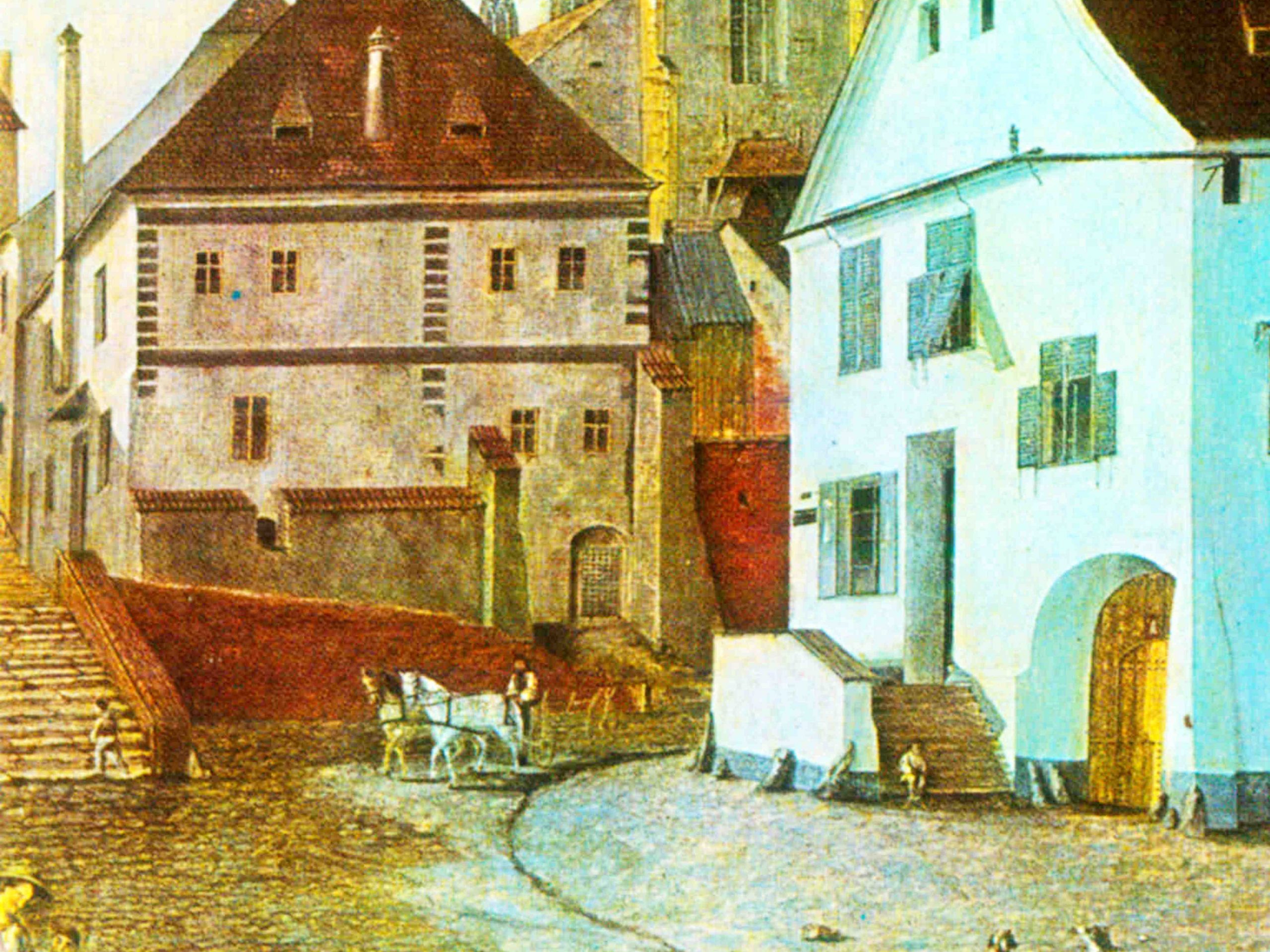 colț cu strada George Lazăr // Reissenfelsgasse înainte de a fi demolată în 1897.~~~o~~~