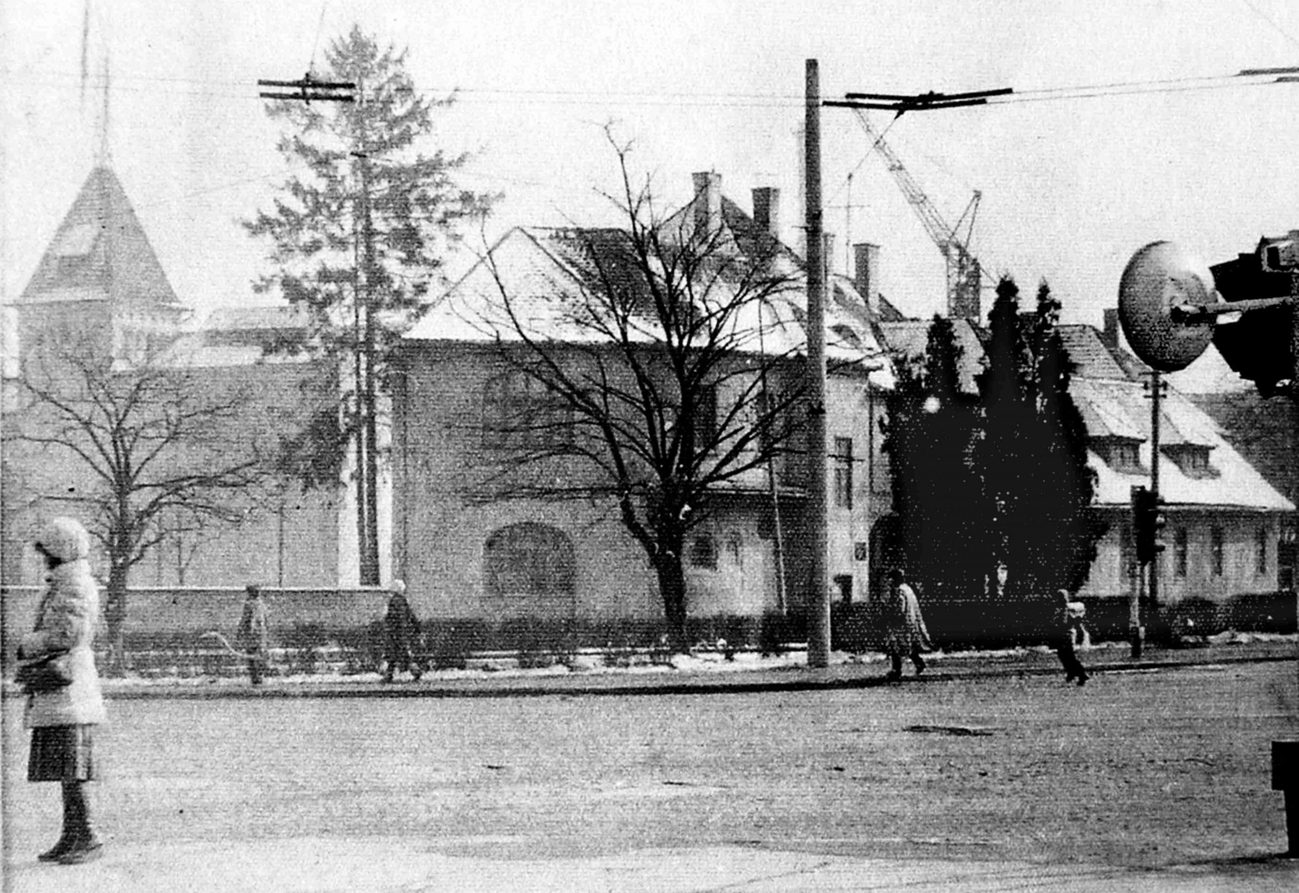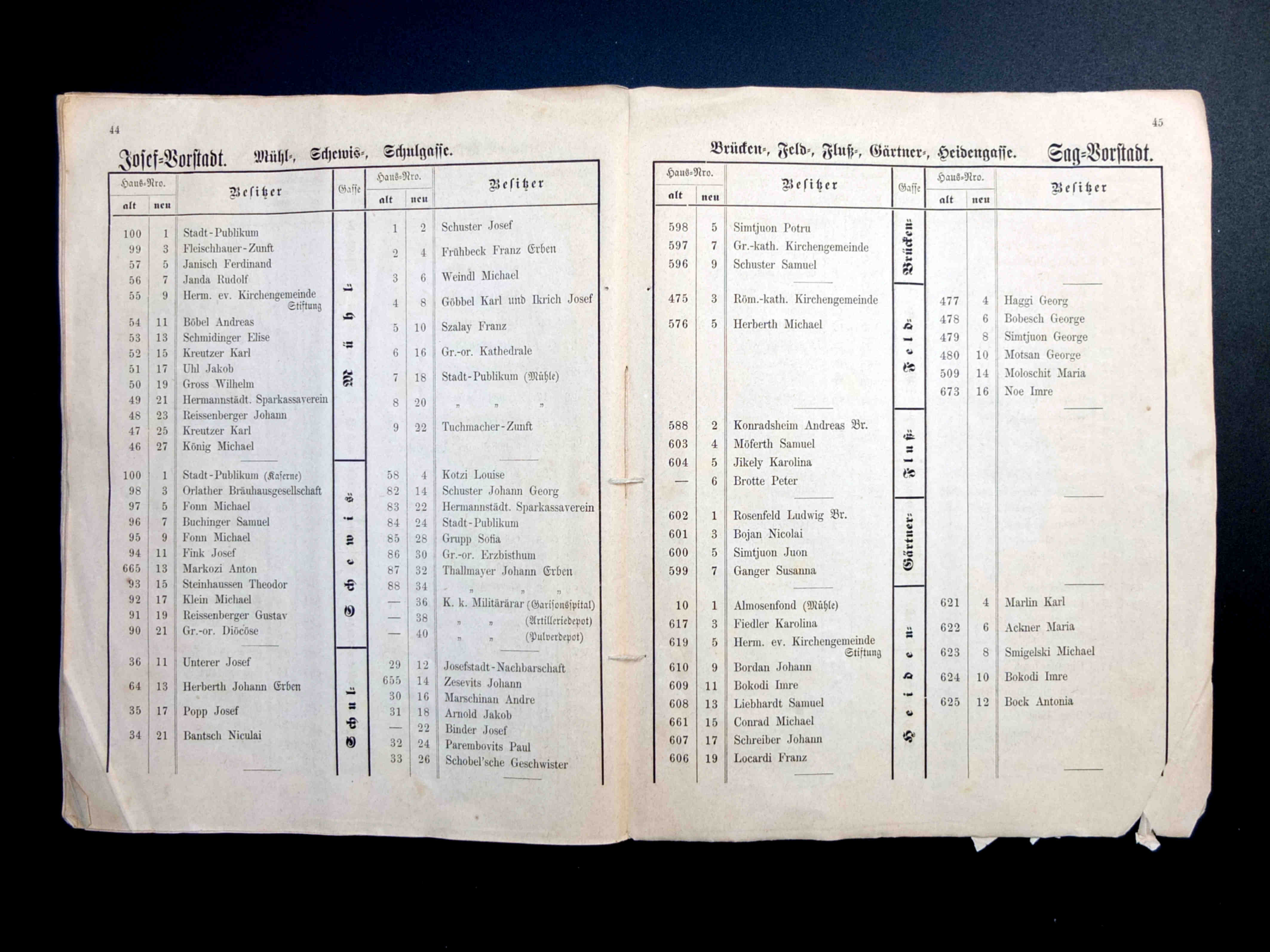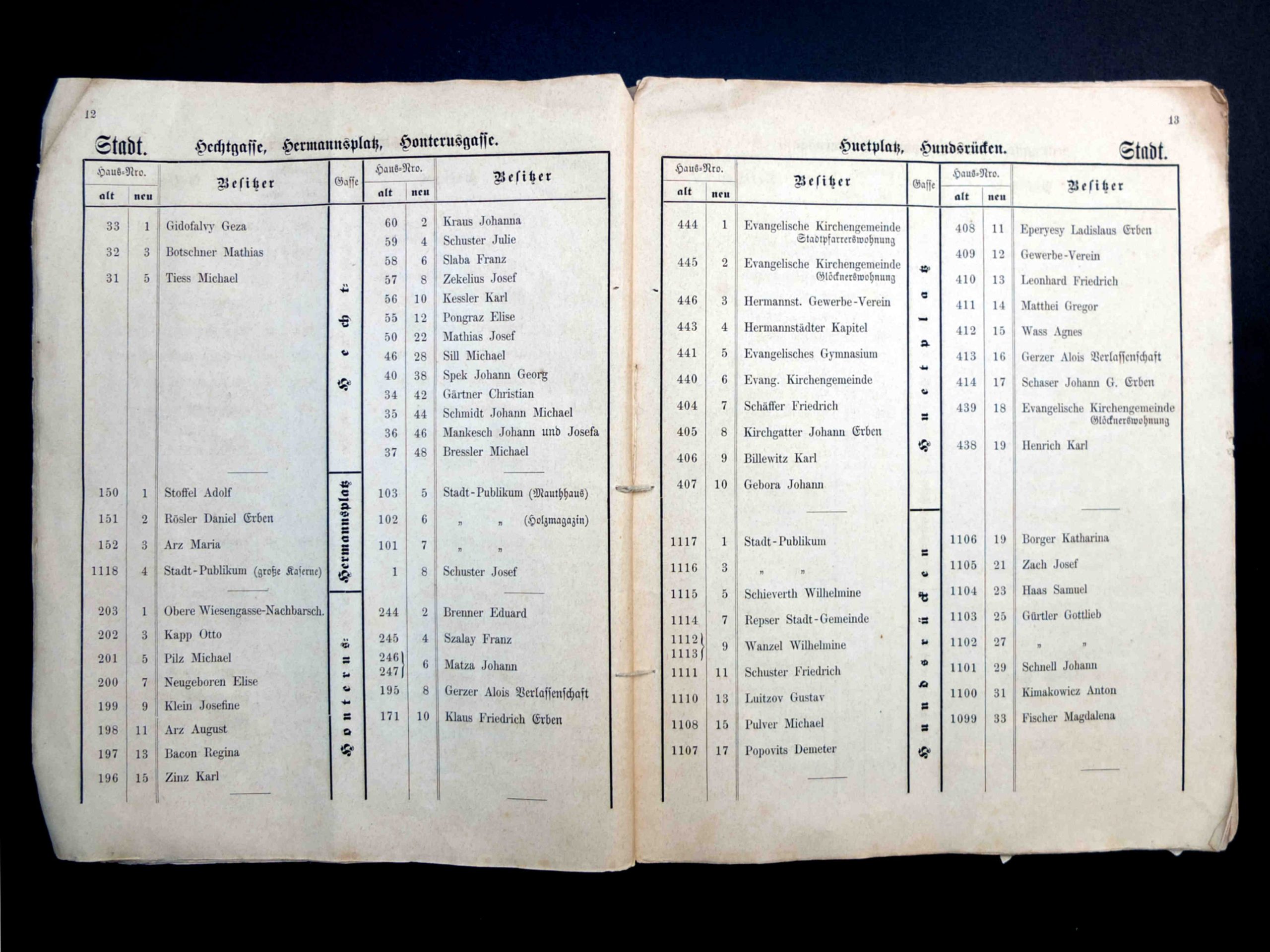 Aceste două fotografii istorice au fost realizate în 1897, cu ocazia demolării a patru clădiri, dintr-e care trei erau situate pe strada General Magheru // Sporergasse ( numere vechi 6, 8, 10 ) și una pe str. George Lazăr // Reissenfelsgasse ( nr.1 ). Pe cele patru parcele libere s-a construit între 1897 și 1899 noul Gimnaziu maghiar de stat conform planurilor arhitectului maghiar Ignác Alpár. De la introducerea limbii române de predare în anul școlar 1919/20 gimnaziul poartă denumirea „Liceul Gheorghe Lazăr”.