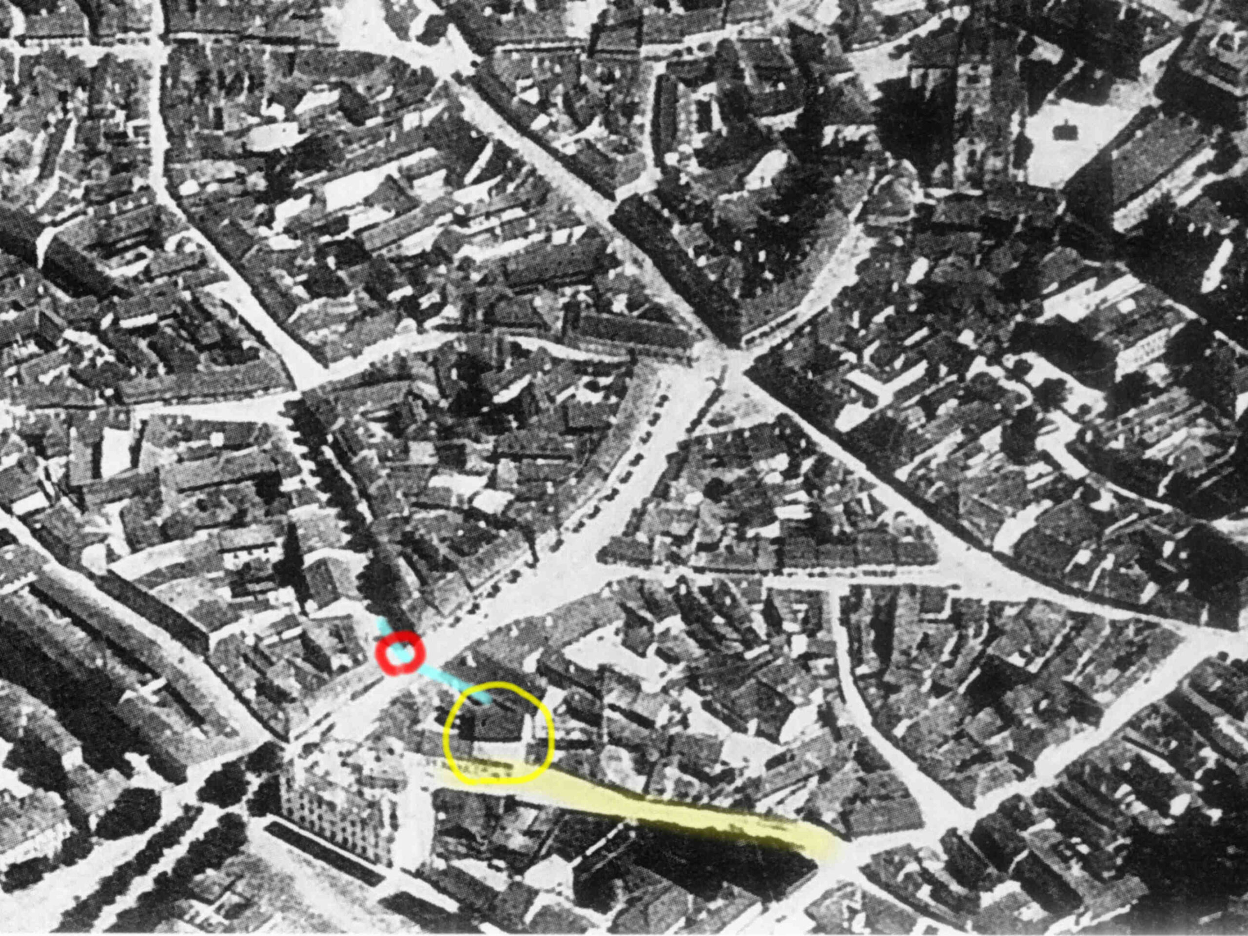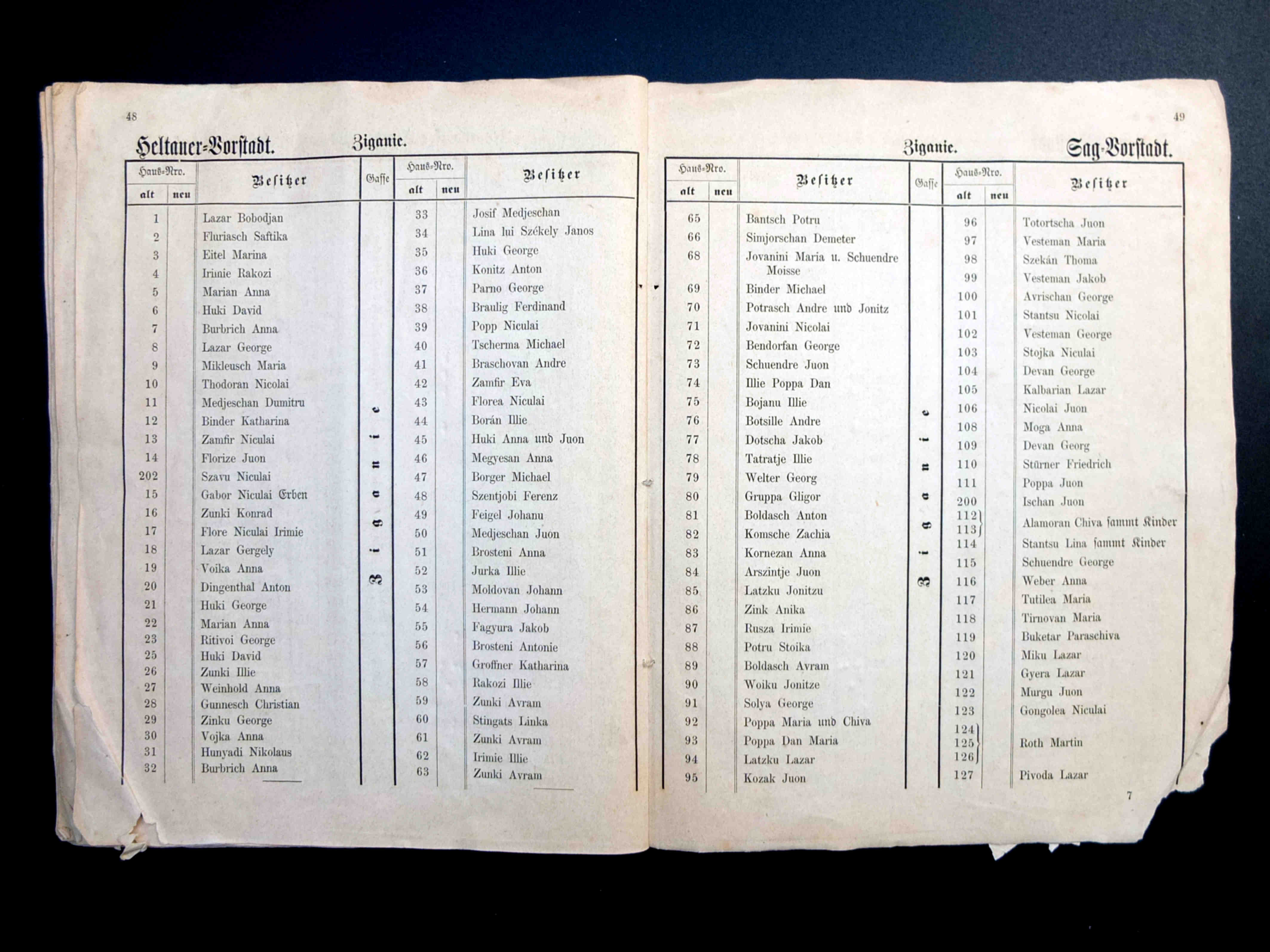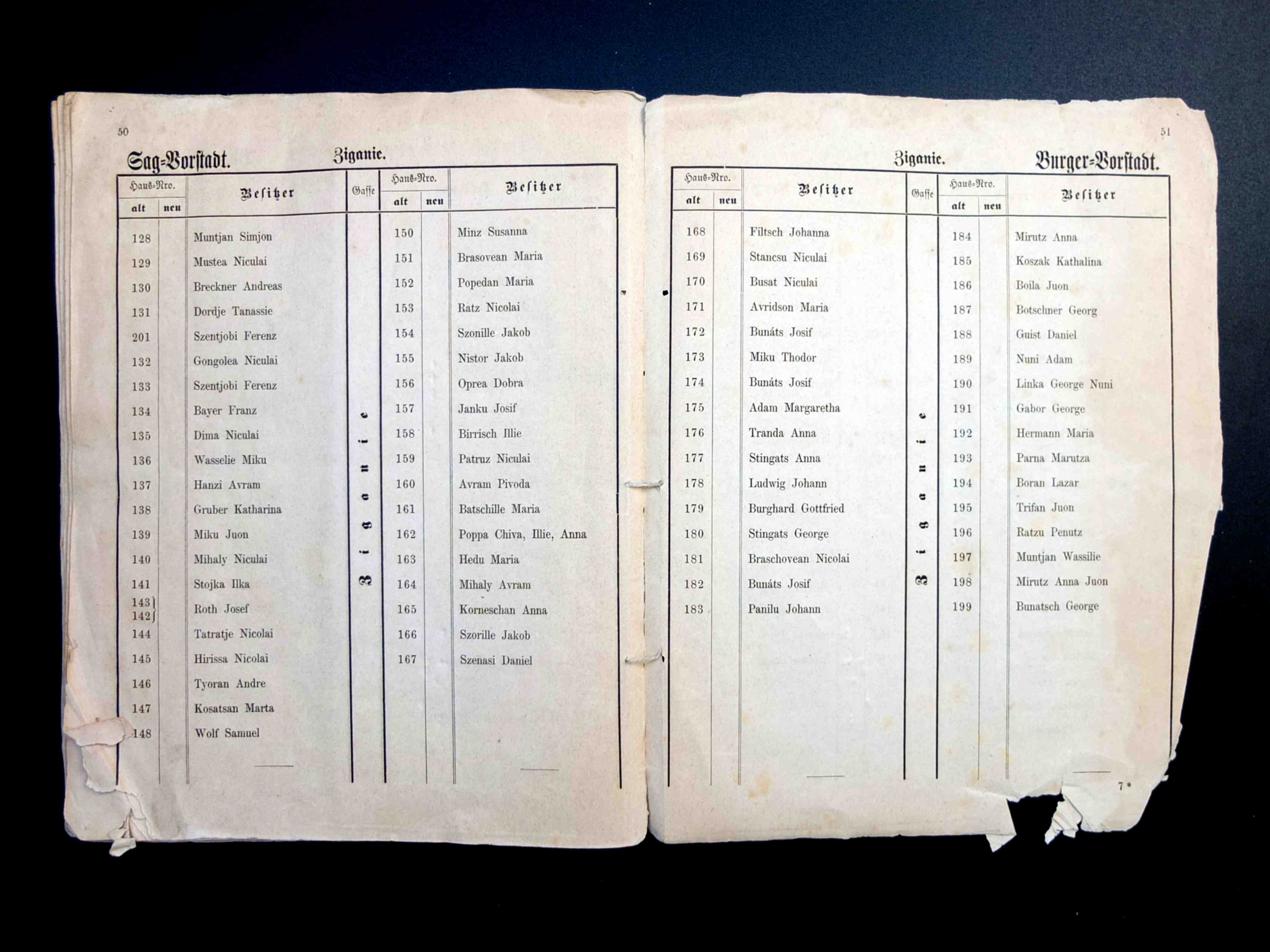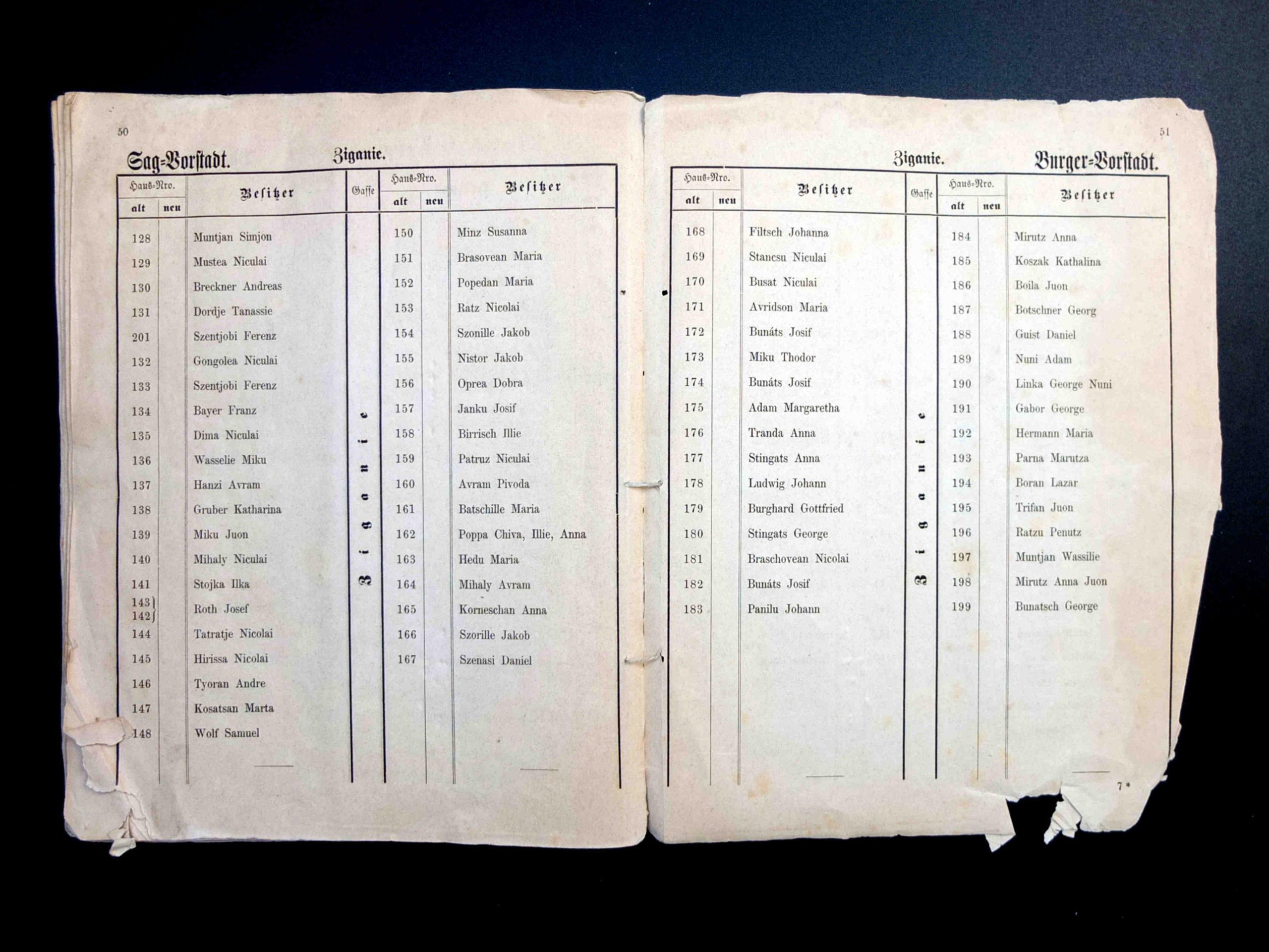 Aceste două fotografii istorice au fost realizate în 1897, cu ocazia demolării a patru clădiri, dintr-e care trei erau situate pe strada General Magheru // Sporergasse ( numere vechi 6, 8, 10 ) și una pe str. George Lazăr // Reissenfelsgasse ( nr.1 ). Pe cele patru parcele libere s-a construit între 1897 și 1899 noul Gimnaziu maghiar de stat conform planurilor arhitectului maghiar Ignác Alpár. De la introducerea limbii române de predare în anul școlar 1919/20 gimnaziul poartă denumirea „Liceul Gheorghe Lazăr”.