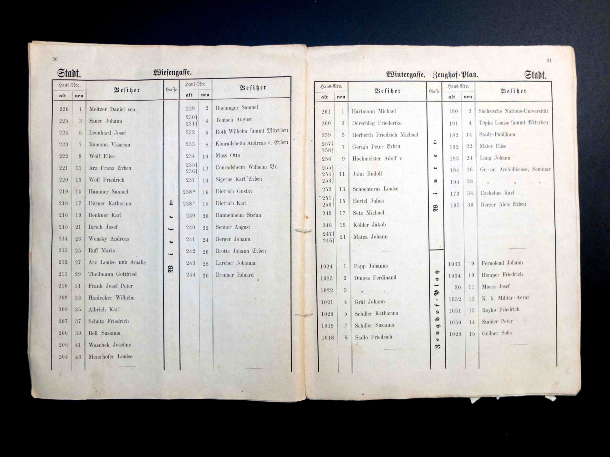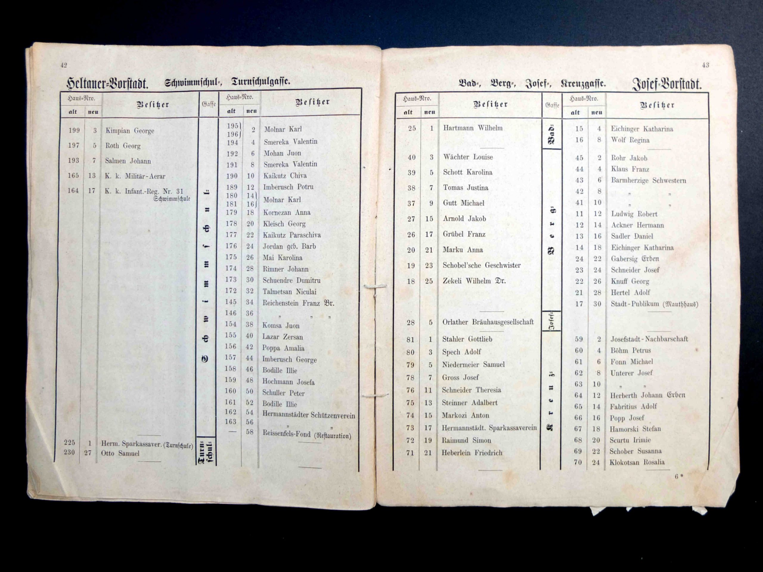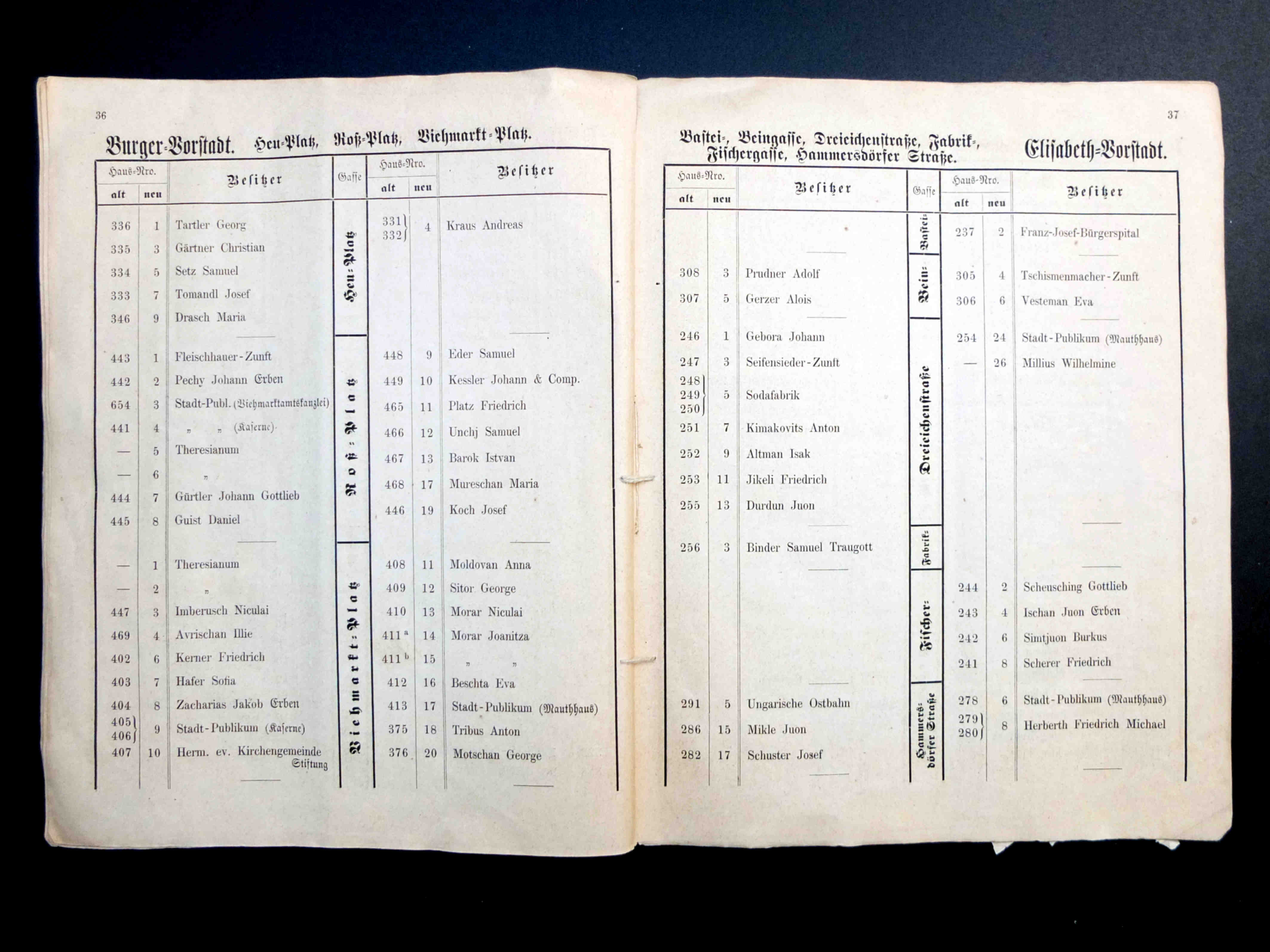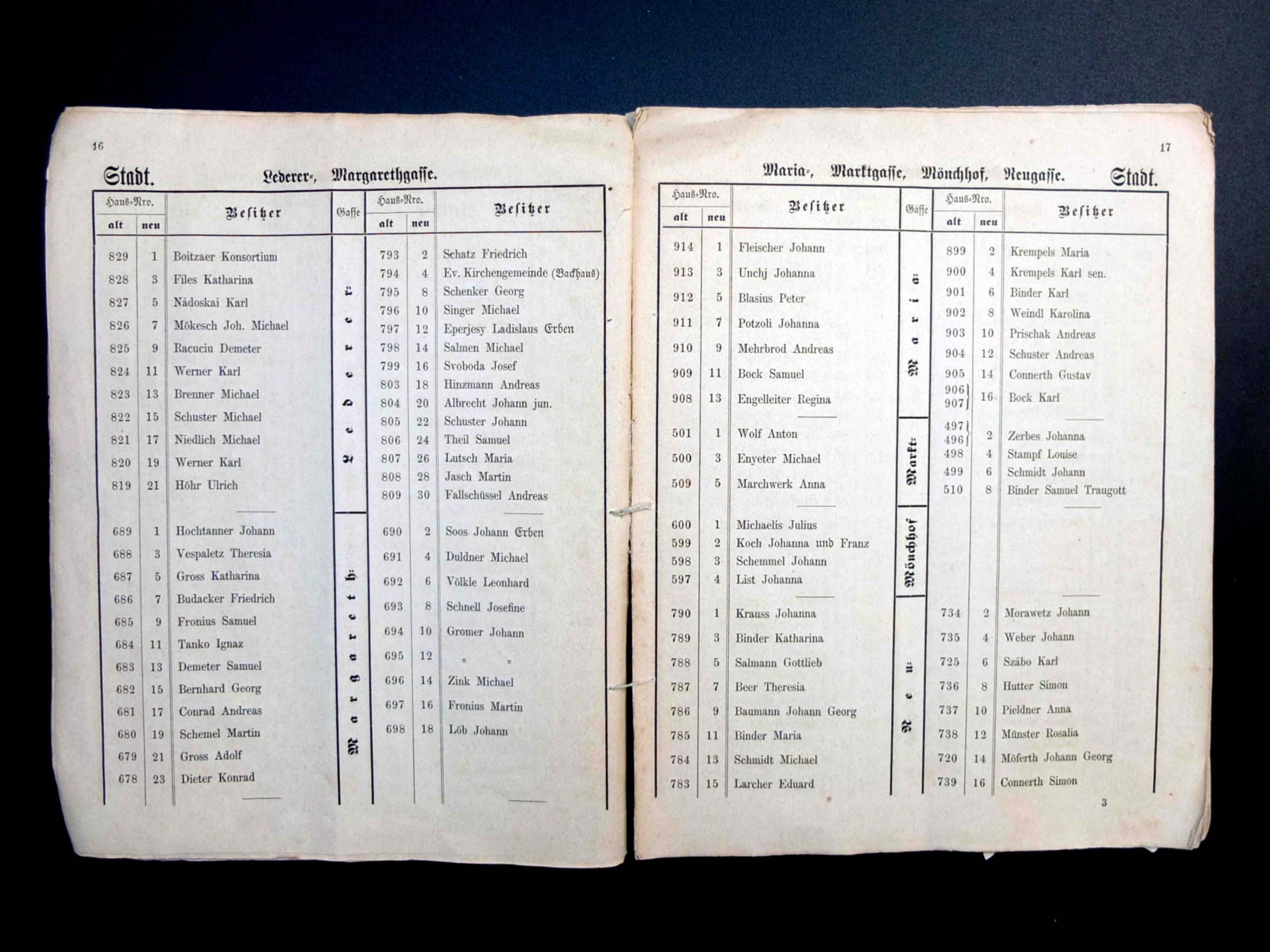 Proprietarii Fabricii de bere Trei Stejari // Drei Eichen Brauerei sunt listați în cartea de adrese din 1892, la capitolul „ Brauereibesitzer” (proprietar de fabrică de bere): Friedrich Jikeli & Johann Hager – Dreieichenstrasse 11 (Brauereibesitzer).