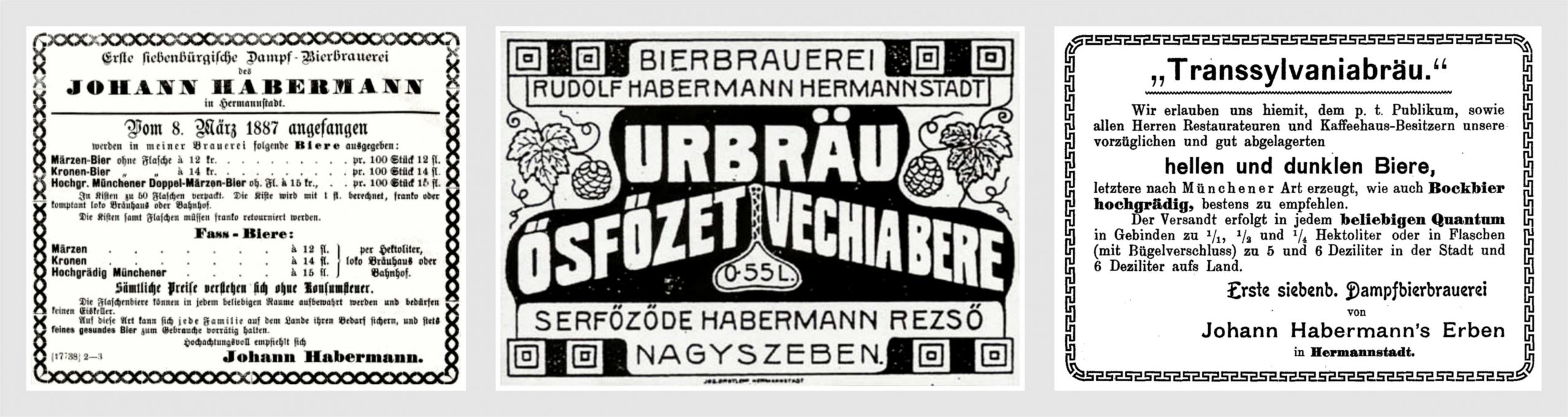 Fabrica de Bere Johann Habermann // Bierbrauerei des Johann Habermann a fost înființată de comerciantul sibian Johann Habermann în anul 1857. Fabrica lui Habermann a fost prima fabrică de bere din Ardeal care a folosit în producție mașini cu aburi: „Erste Siebenbürgische Dampfbierbrauerei der Johann Habermann’s Erben”. A funcționat ca fabrică de bere până în 1914. După primul război mondial fabrica lui Habermann a fost preluată de fabricile de bere Trei Stejari // Drei Eichen Bräu din Sibiu și Thomas Binder și Fii // Thomas Binder und Söhne din Sadu // Zood și folosită la producerea malțului.Palatul Habermann din Piața Unirii // Hermannsplatz/ Einigkeitsplatz (este vorba de aripa dreaptă a actualului imobil Continental Forum) a fost ridicat în anul 1876 de fabricantul de bere Johann Habermann. La parterul clădirii se afla renumita cafenea Café Habermann, cu intrarea dinspre Promenada Bretter // Bretterpromenade. În latura spre Parcul Astra // Stadtpark se afla în perioada 1884~1929 Marea Hală de Bere Habermann // Habermanns Grand Bierhalle.