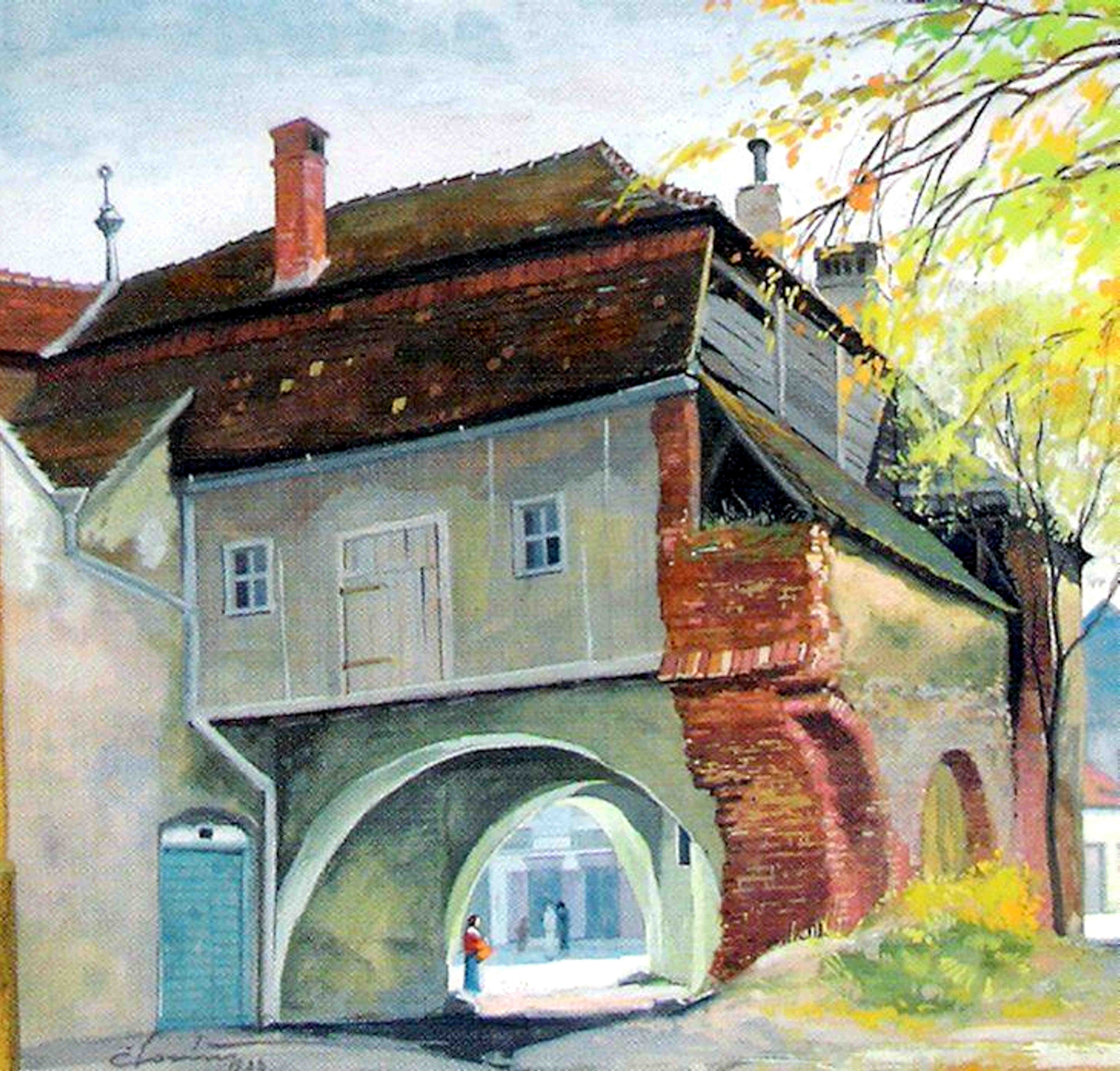 Această pictură interesantă, cu valoare documentară, a fost realizată în 1917 de artistul Karl Eduard Closius ( 1893-1959 ). În acuarela lui Closius se vede Poarta Ocnei ( germană, Burgertor ) și o parte din zidul centuri a IV-a de fortificații al așa-numitului „Oraș Roșu”, Sibiu, văzute din str. Pietrarilor ( germană, Wagnergasse ). În colțul din dreapta jos artistul a notat „frei copiert”, tradus „liber copiat”, ceea ce înseamnă că tabloul este o copie realizată după un alt tablou, sau chiar după o fotografie(?)
