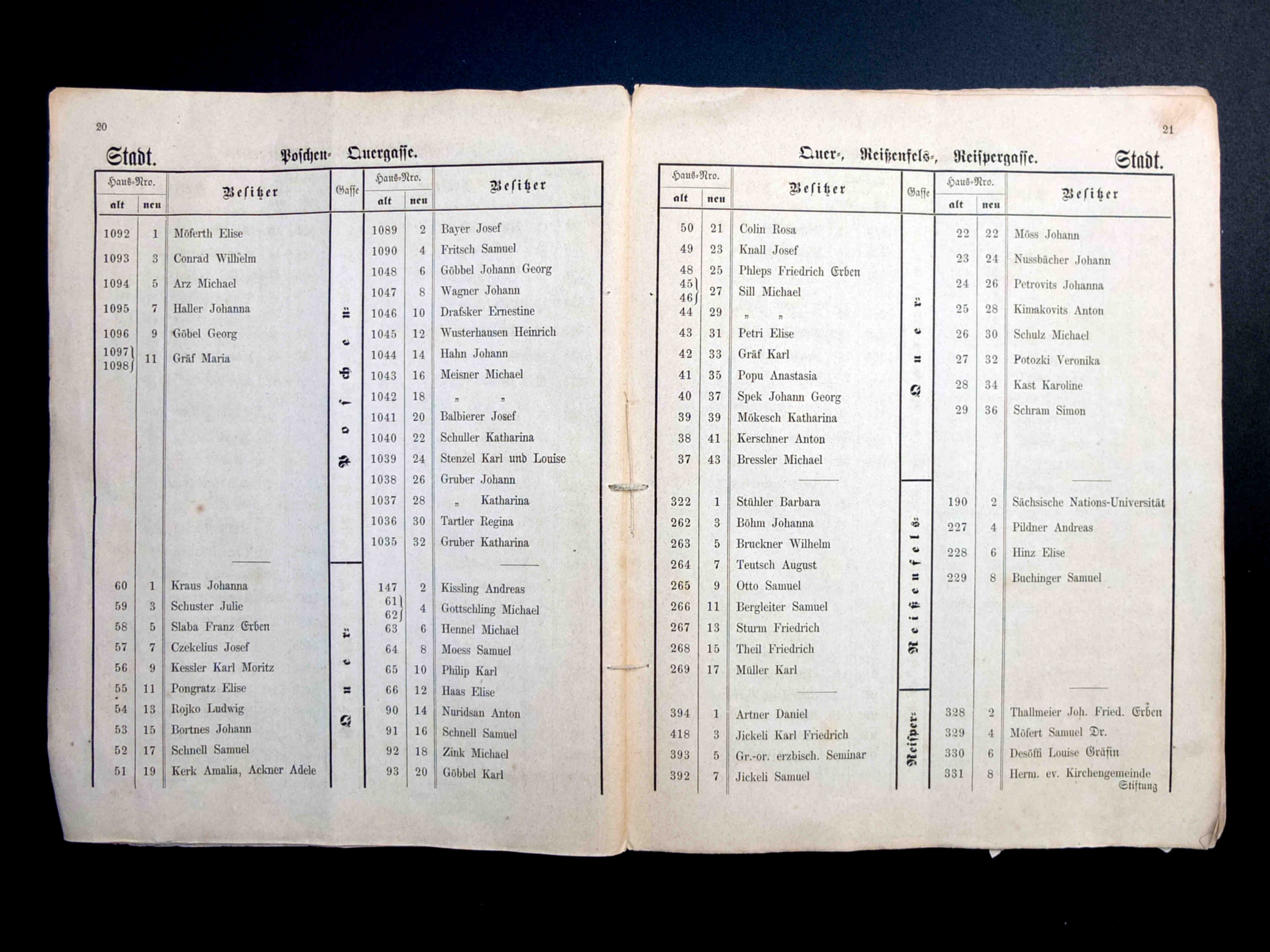 Dreapta: În cartea de adrese din 1908, magazinul lui Victor Onițiu este listat la adresa strada Fleischergasse Nr. 20 / Măcelarilor nr. 20, ( azi Mitropoliei 16 ), iar comerciantul Victor Onițiu apare cu adresa de domiciliu strada Franziskanerg(asse) 16, ( azi strada Șelarilor 5 ): Onițiu Victor, Spezereiwarenhändler, Fleischergasse 20. Wohnung: Franziskanerg(asse) 16.~~~o~~~
