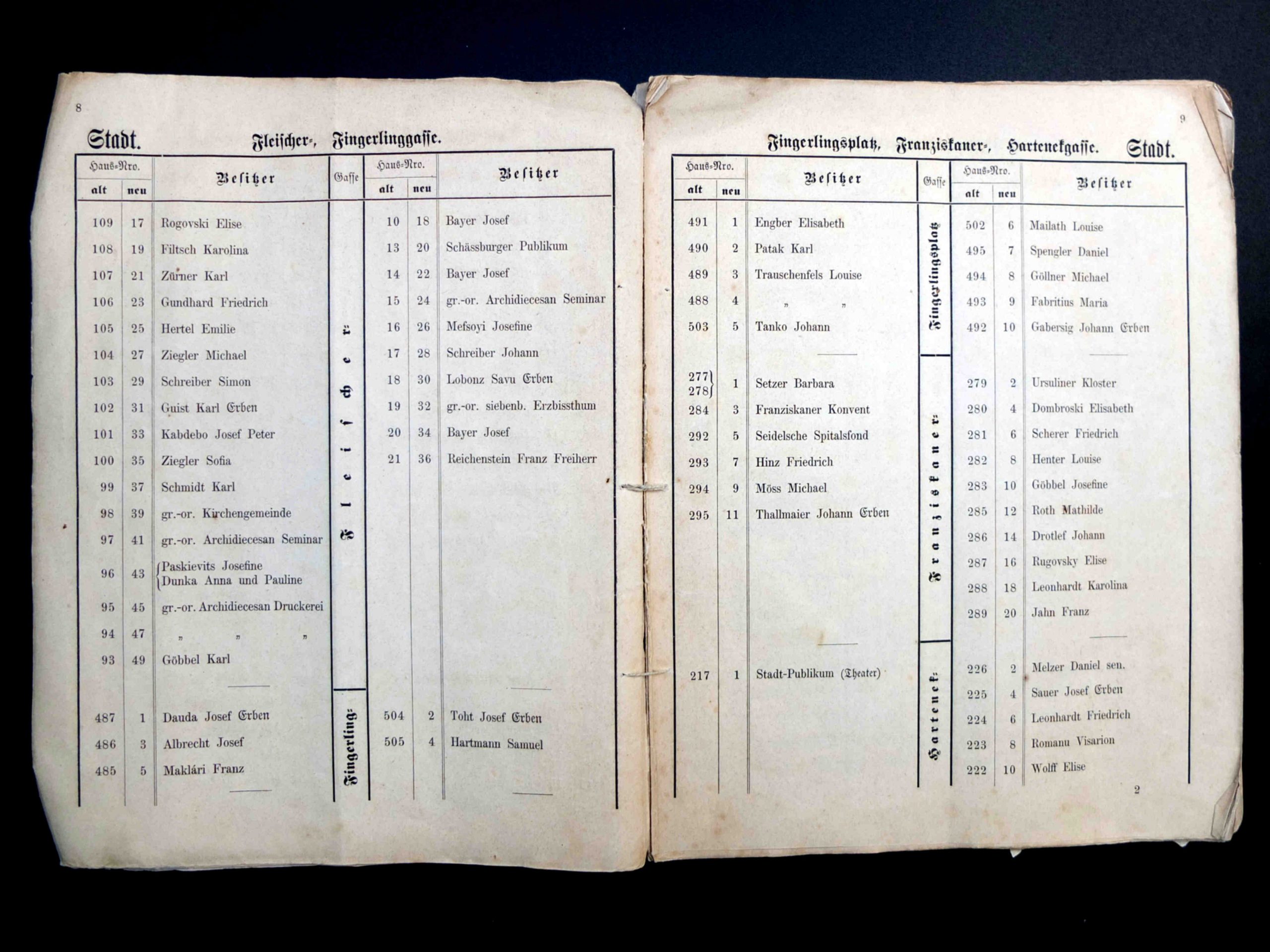 În cartea de adrese, 1908, comerciantul ( Spezereiwarenhändler ) Victor Onițiu apare cu adresa de domiciliu la strada Franziskanerg(asse) 16, ( azi, strada Șelarilor 5 ).