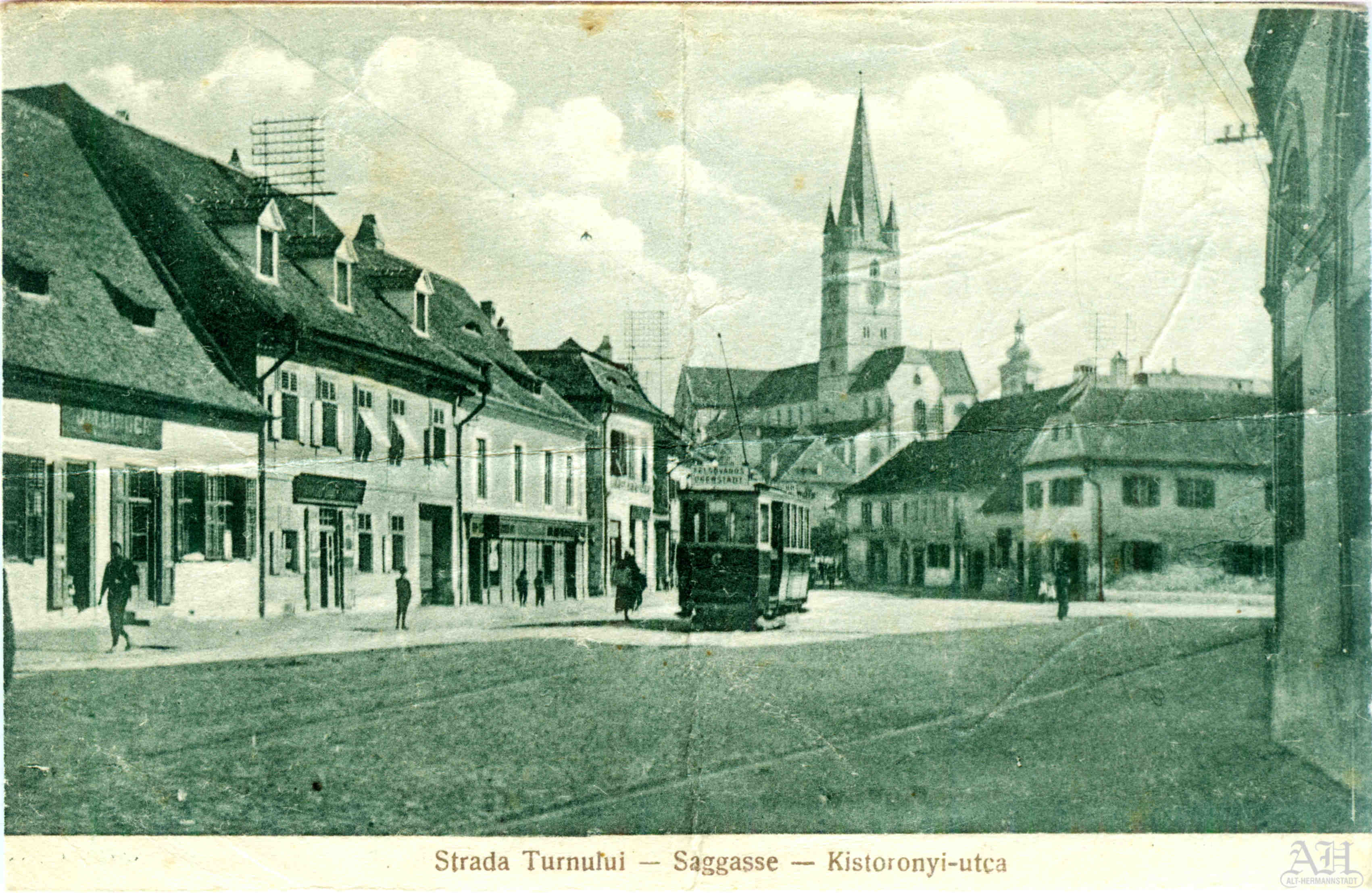 „Saggasse // Strada Turnului // Zsák utca in Hermannstadt / Sibiu / Nagyszeben”