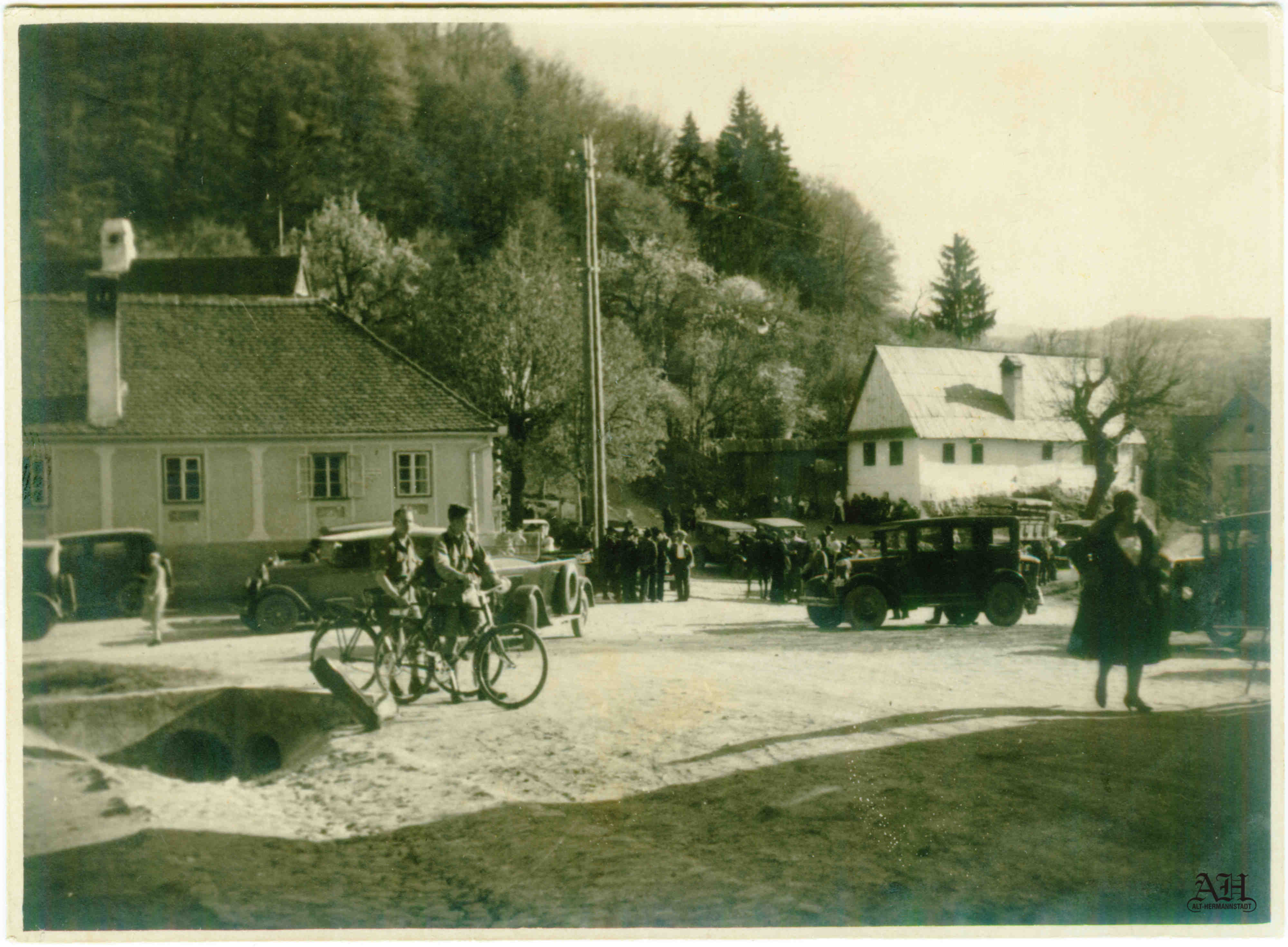 O fotografie deosebită din arhiva personală, realizată în perioada interbelică la poalele cetății (bisericii fortificate) din Cisnădioara // Michelsberg // Kisdisznód.