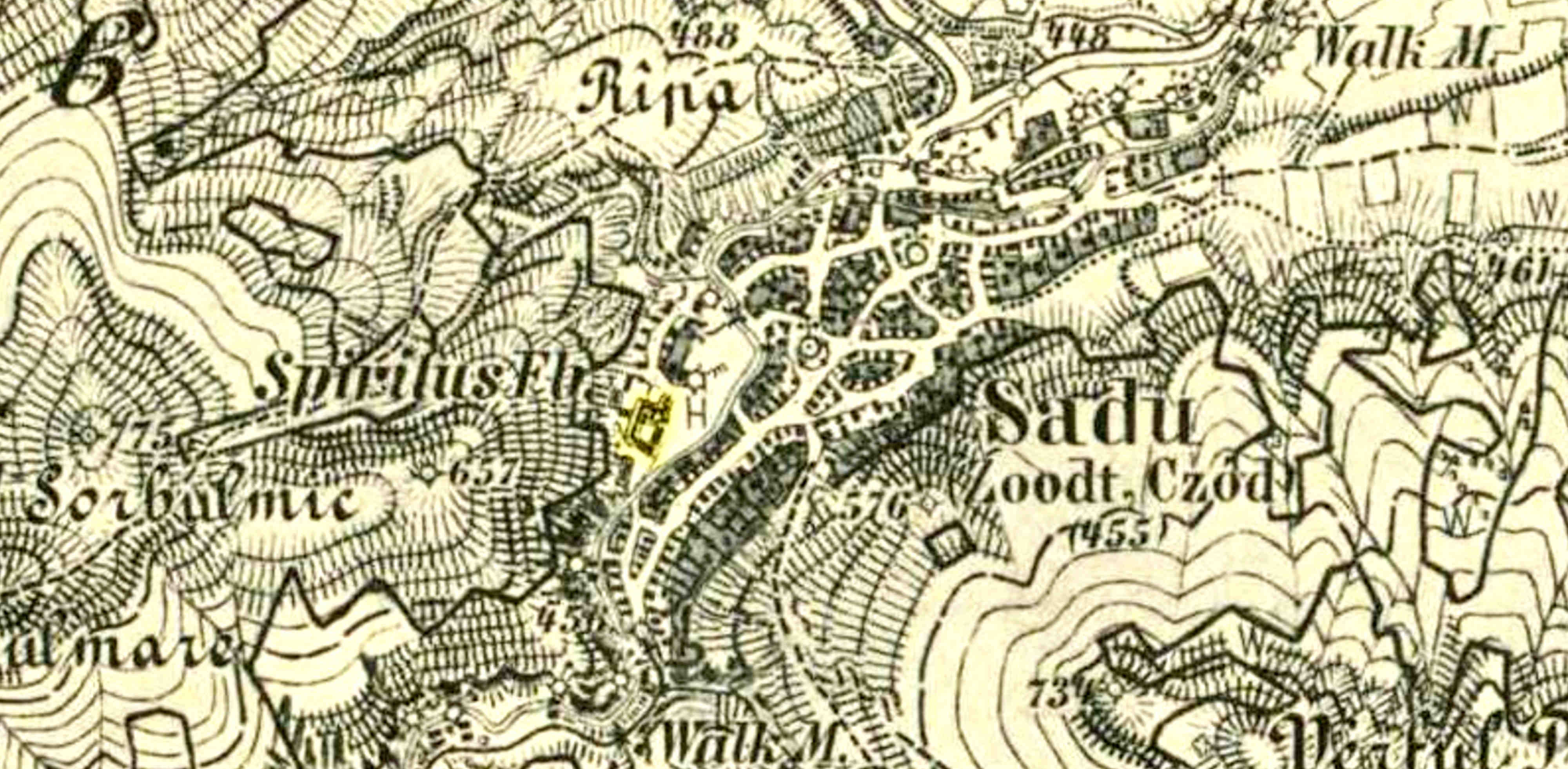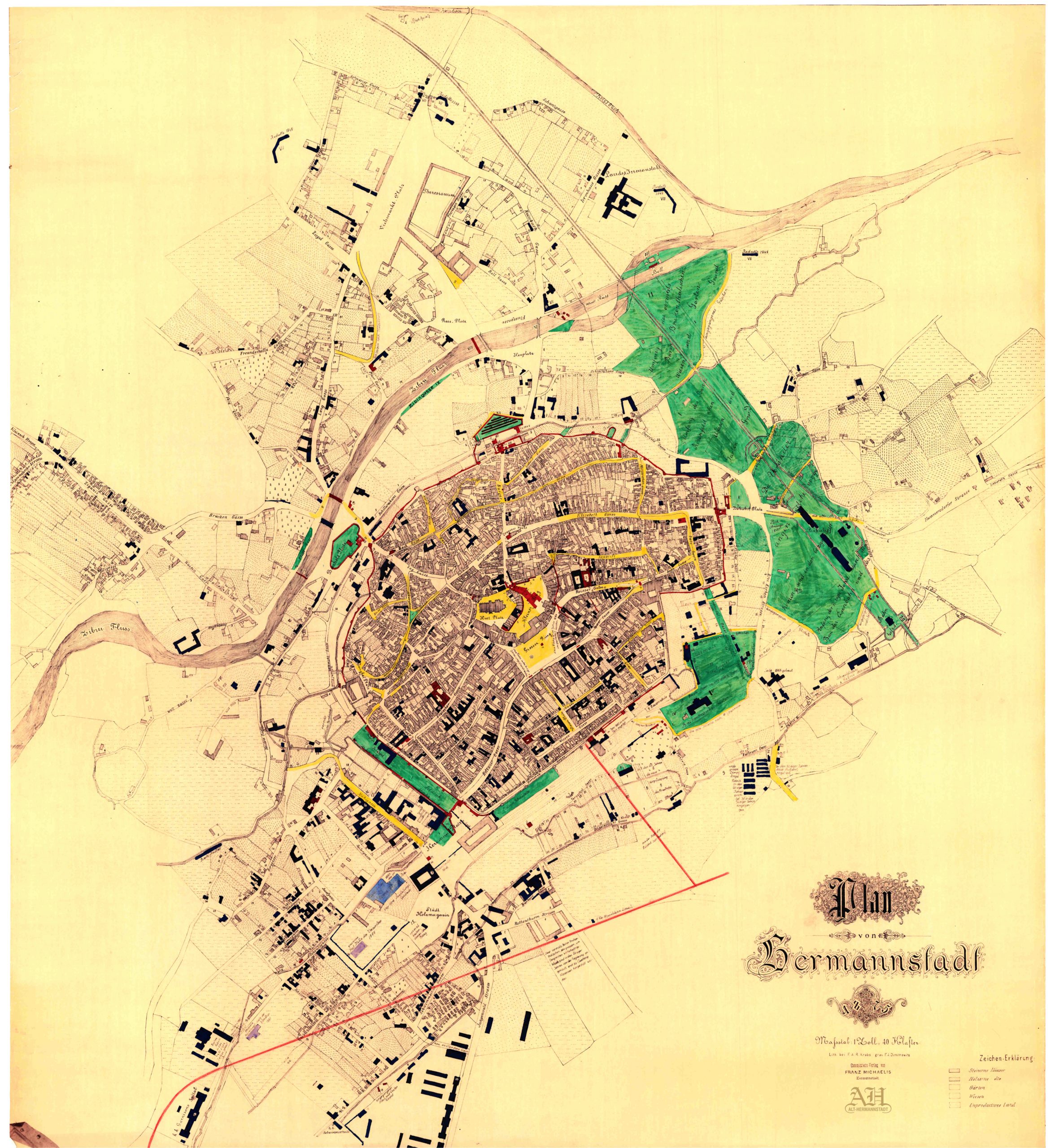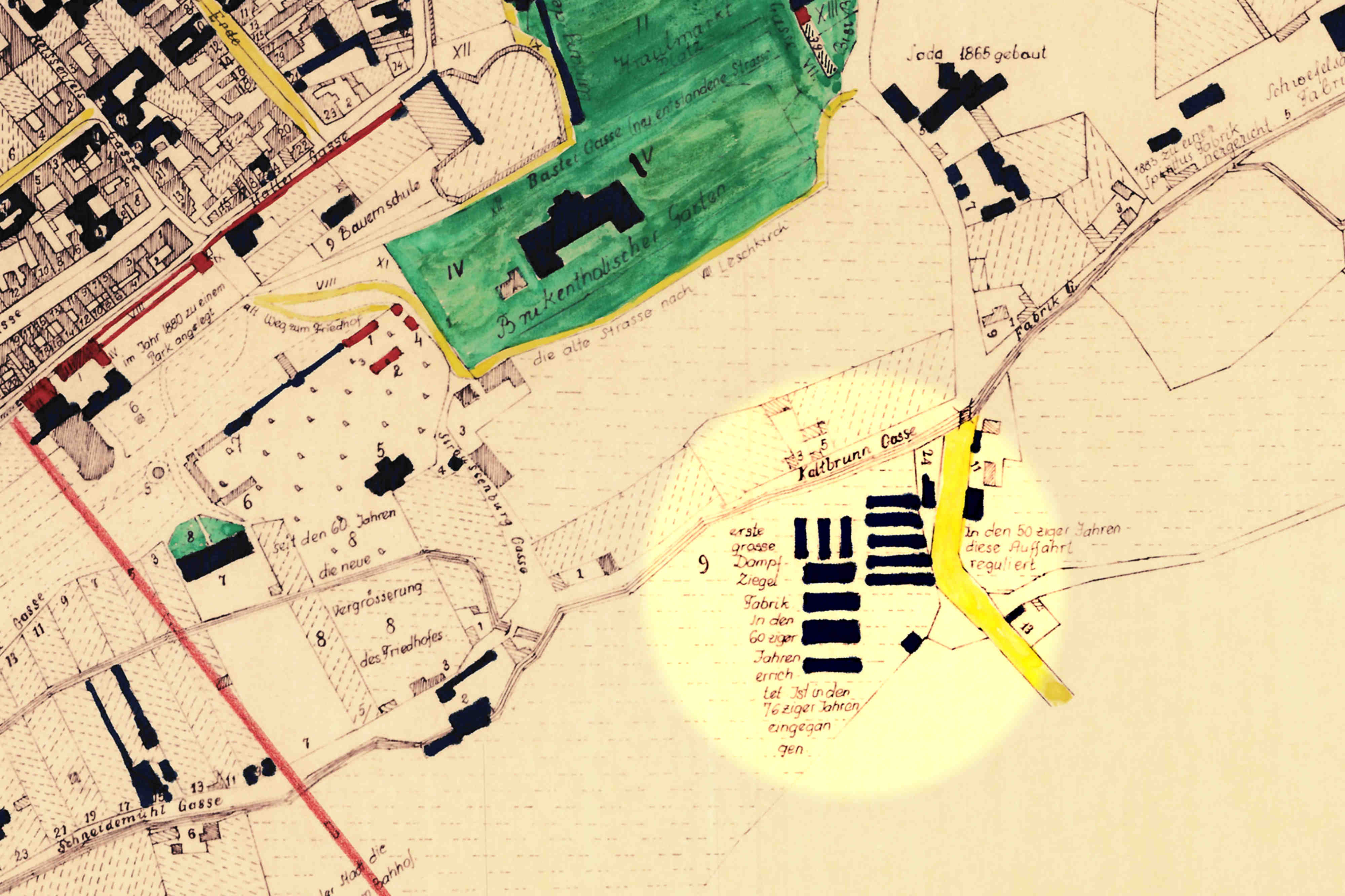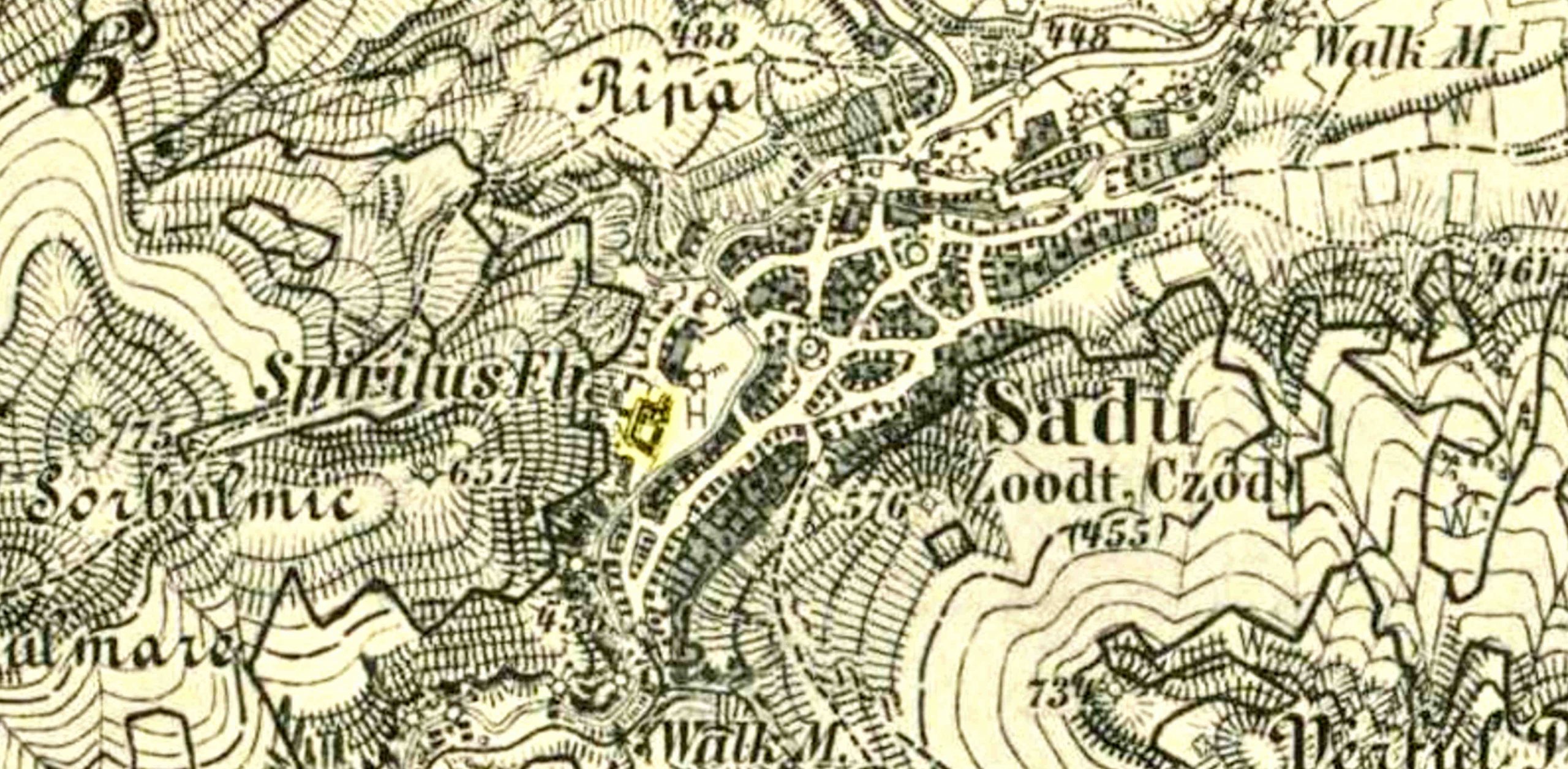 Detaliu din Ridicarea topografică iozefină și din Planul orașului Sibiu din 1875, desenat de Johann Böbel 1882/83.