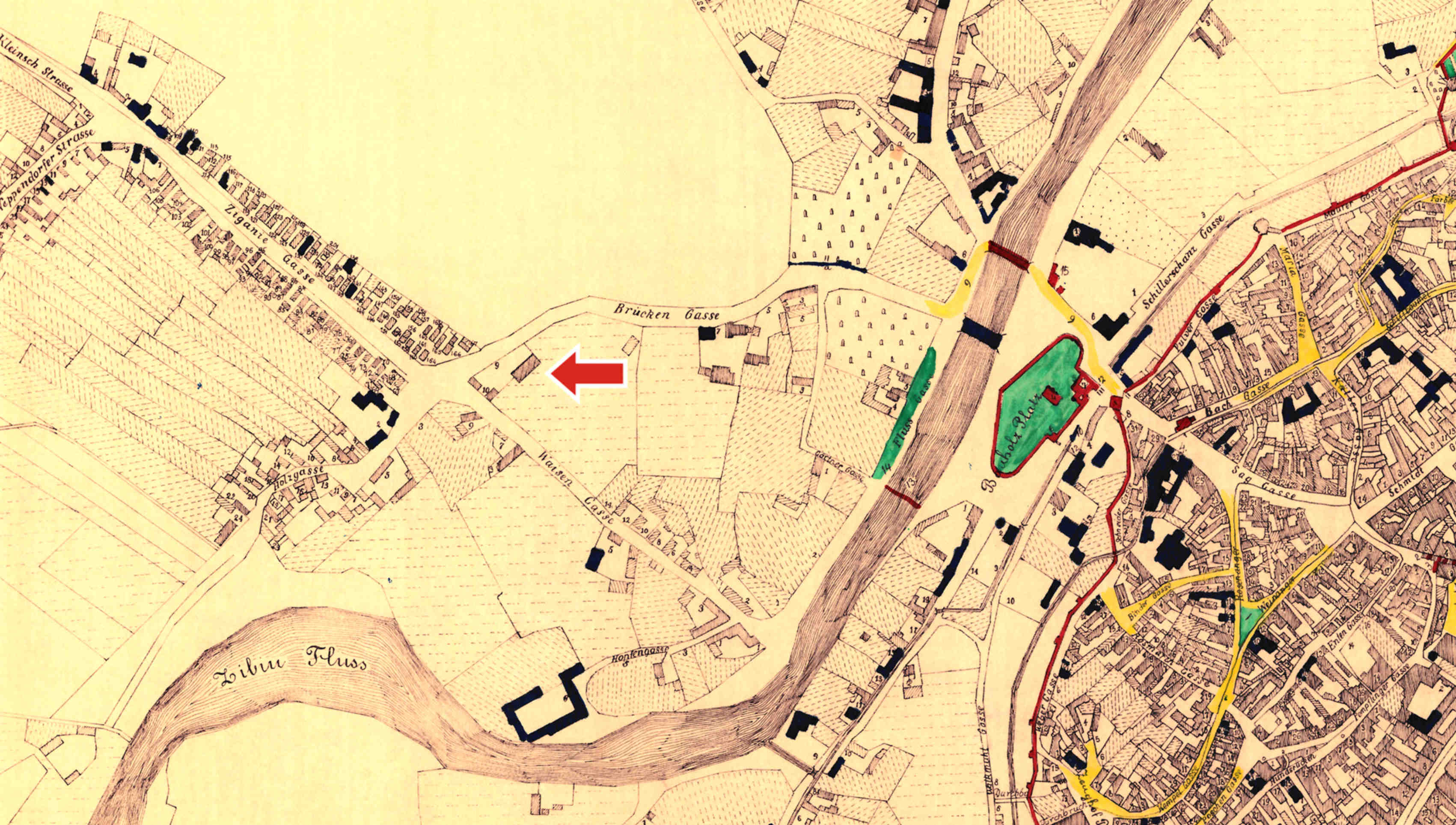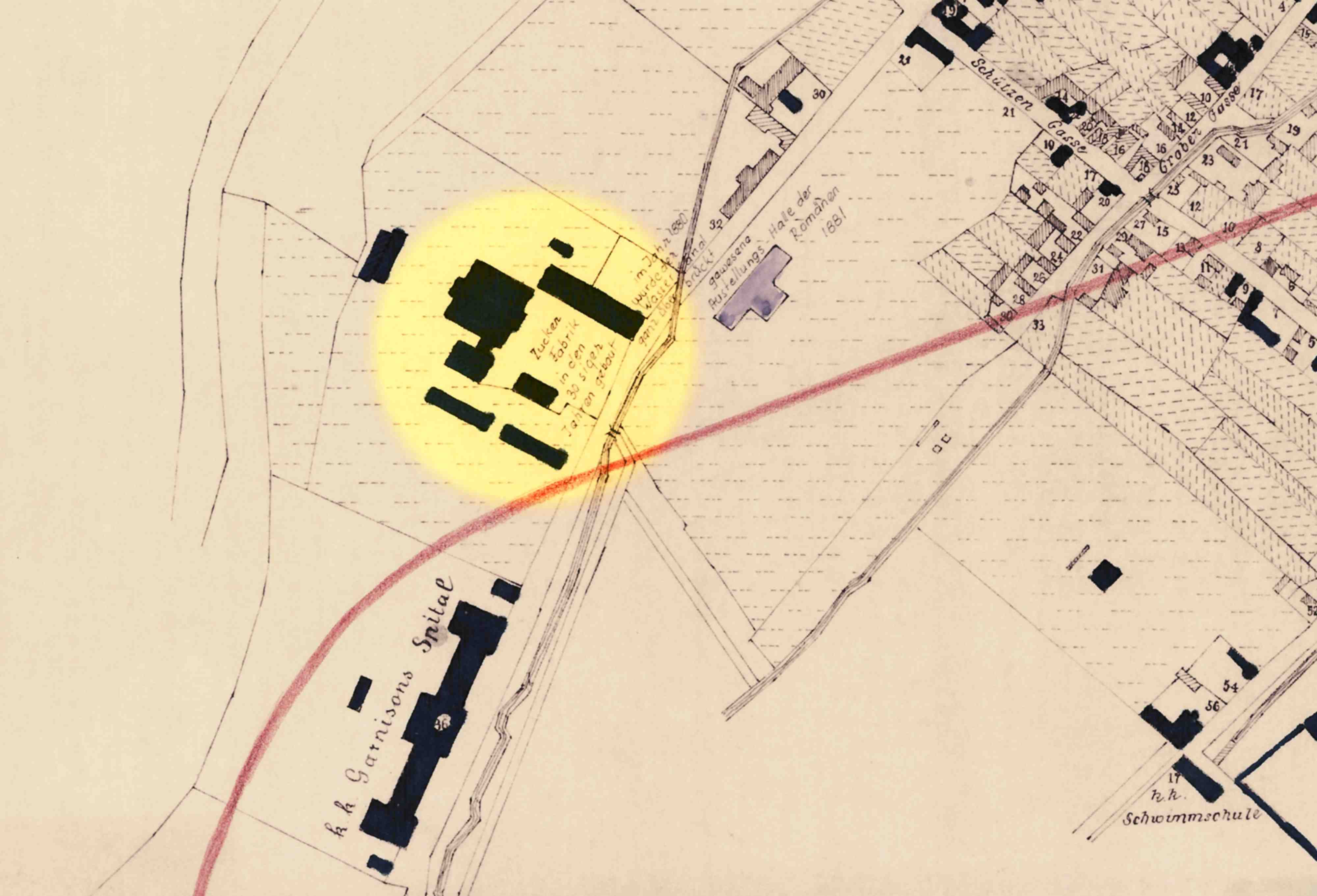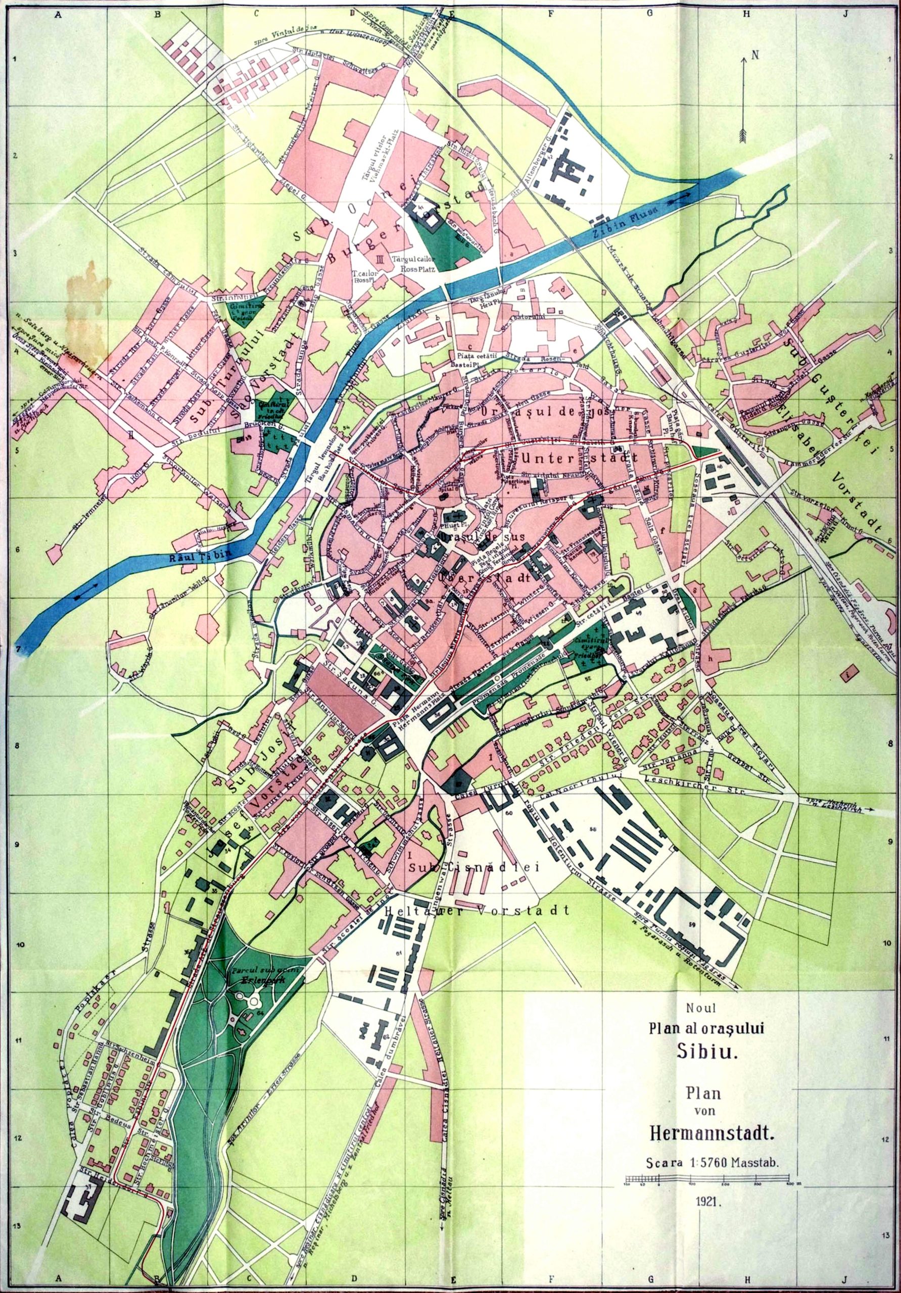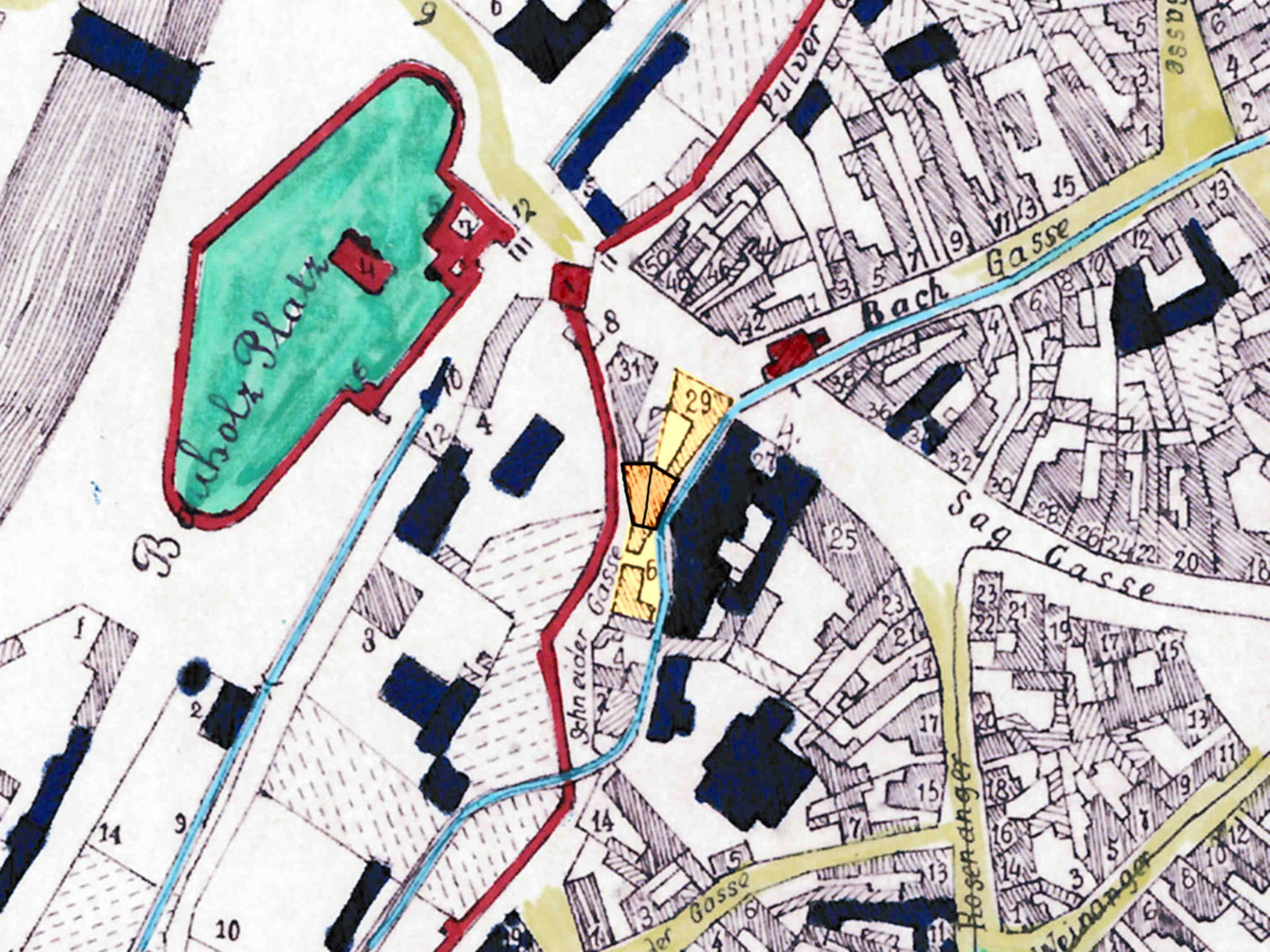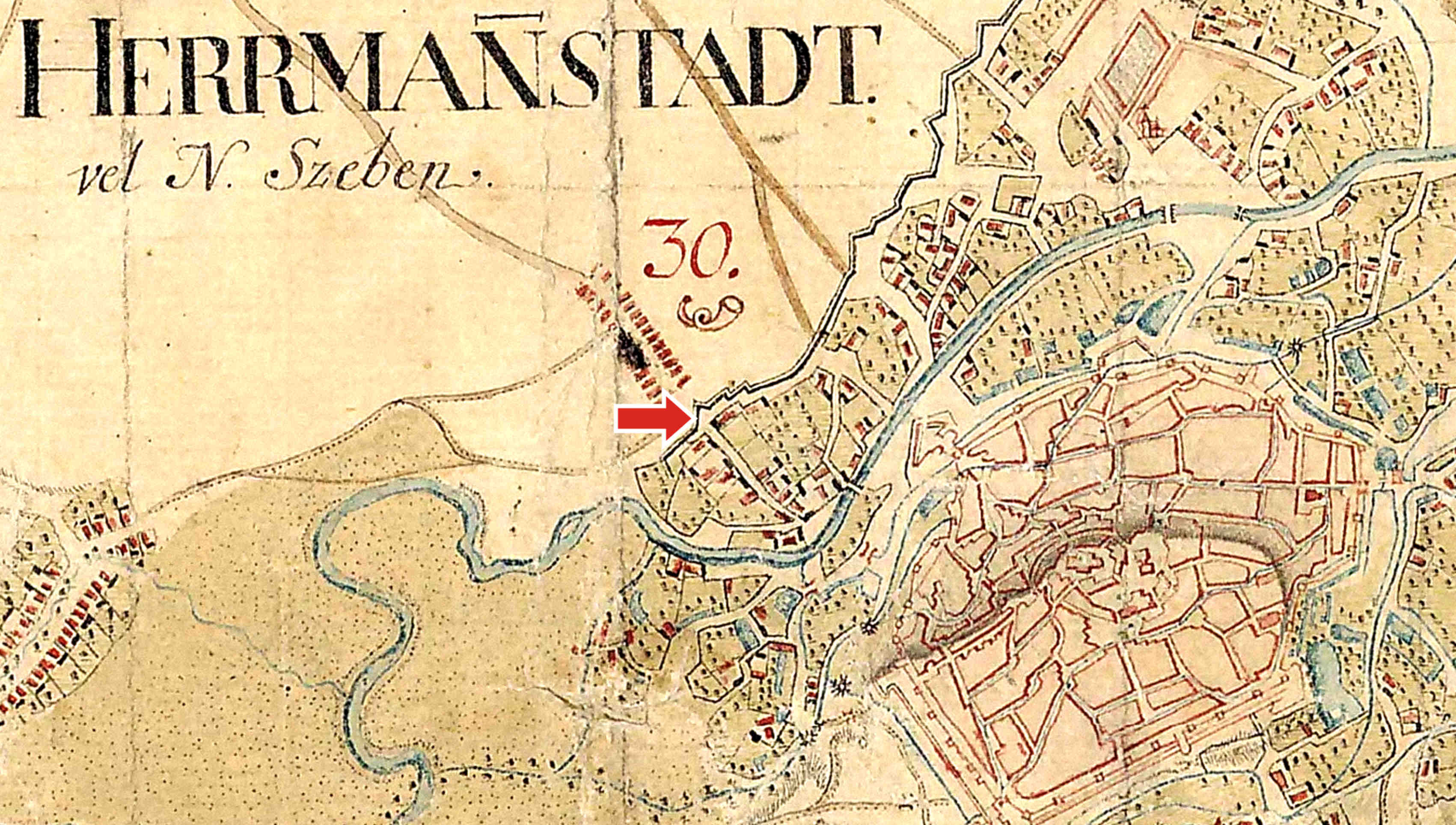 Detaliu din Ridicarea topografică iozefină și din Planul orașului Sibiu din 1875, desenat de Johann Böbel 1882/83.