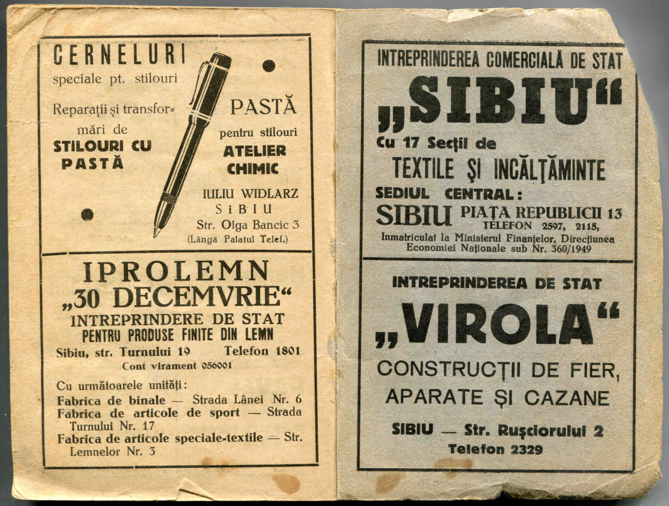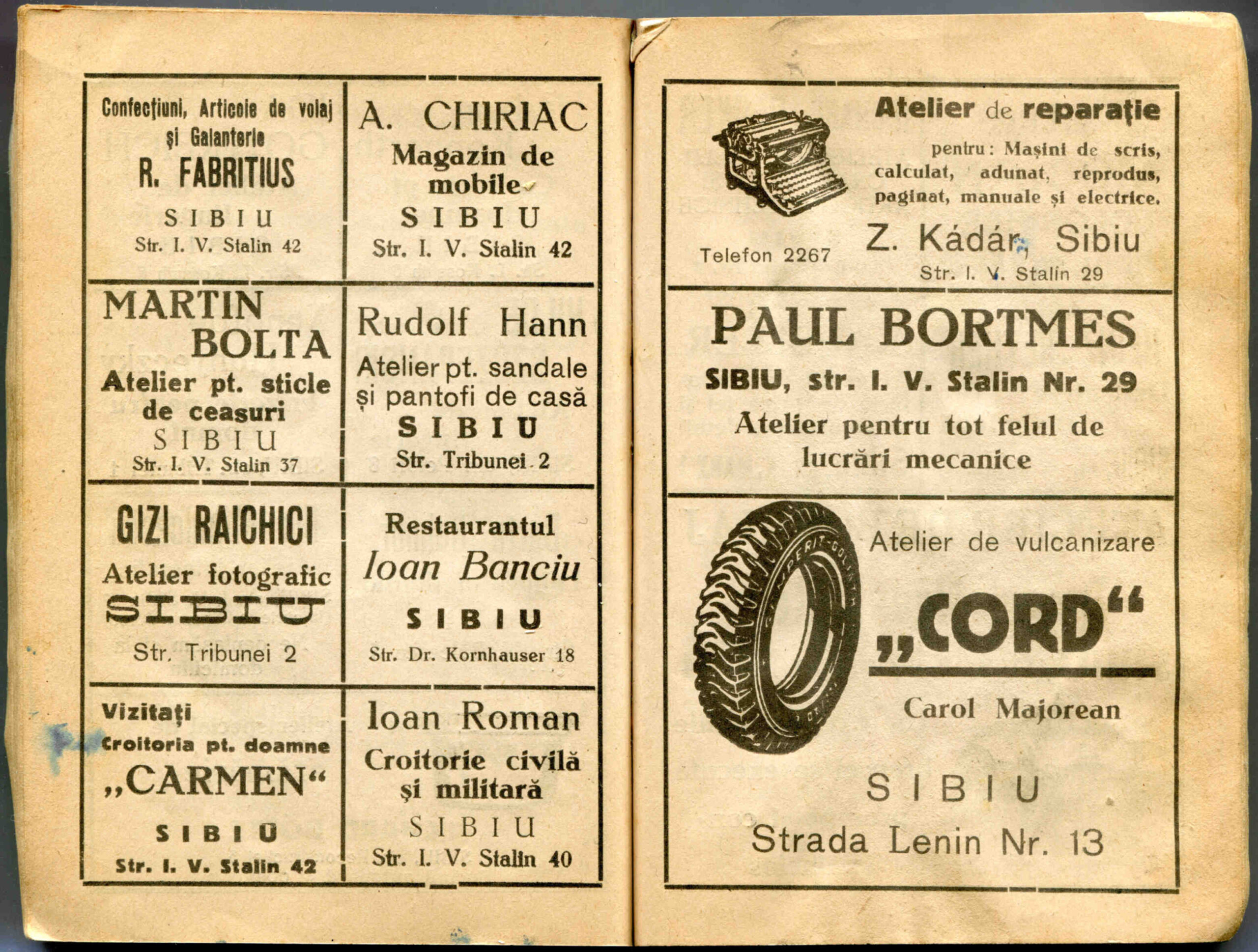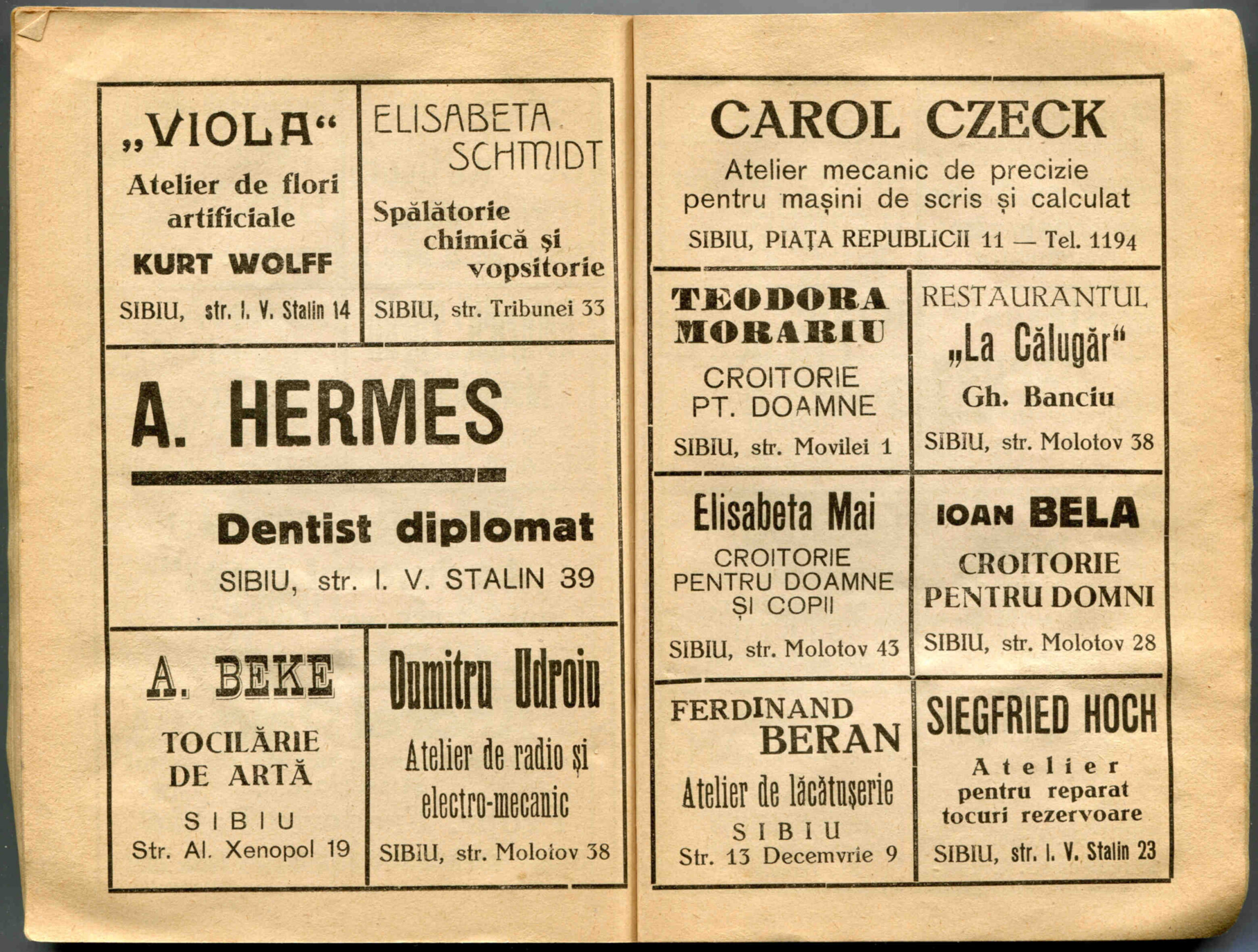 Dreapta: Reclamă comercială din cartea de adrese din 1901, la magazinul societății comerciale pe acțiuni „Concordia” care funcționa la parterul clădirii băncii Albina, strada Fleischergasse / Măcelarilor nr. 20, ( azi Mitropoliei 16 ).Vă oferim aici textul reclamei comerciale din 1898, urmat de traducerea în limba română: