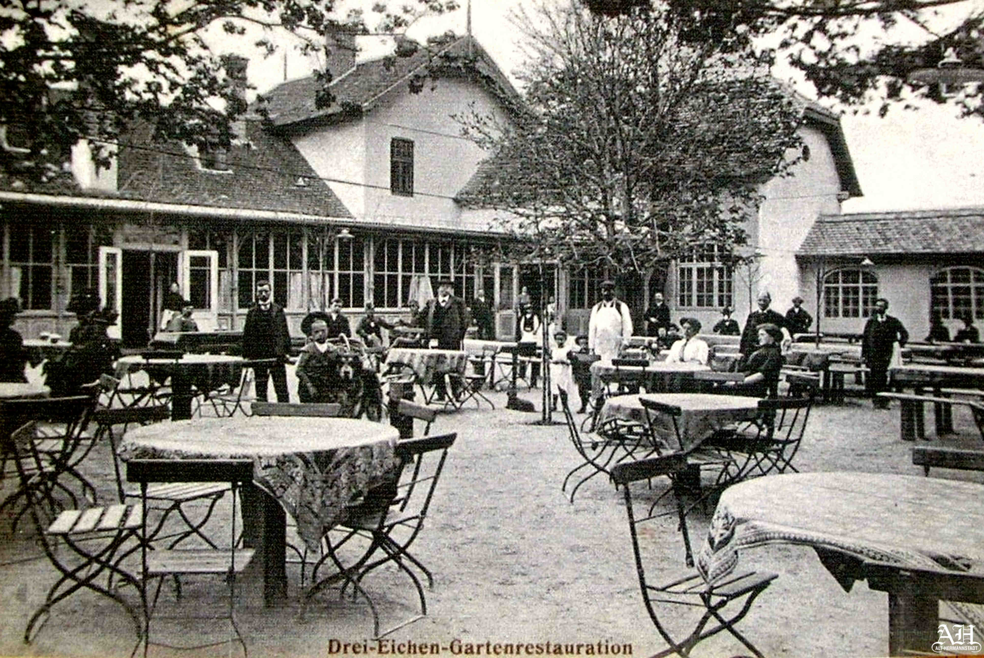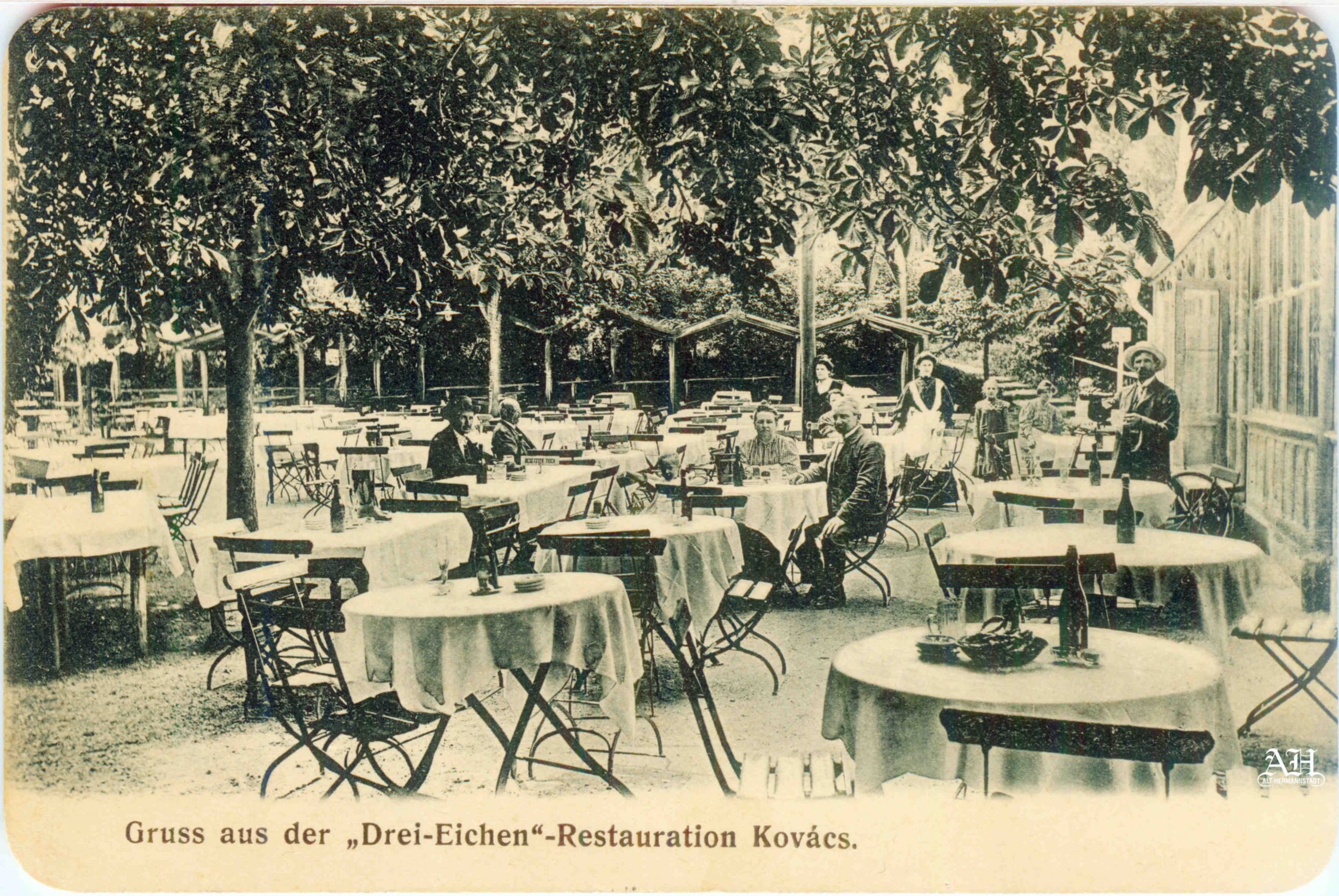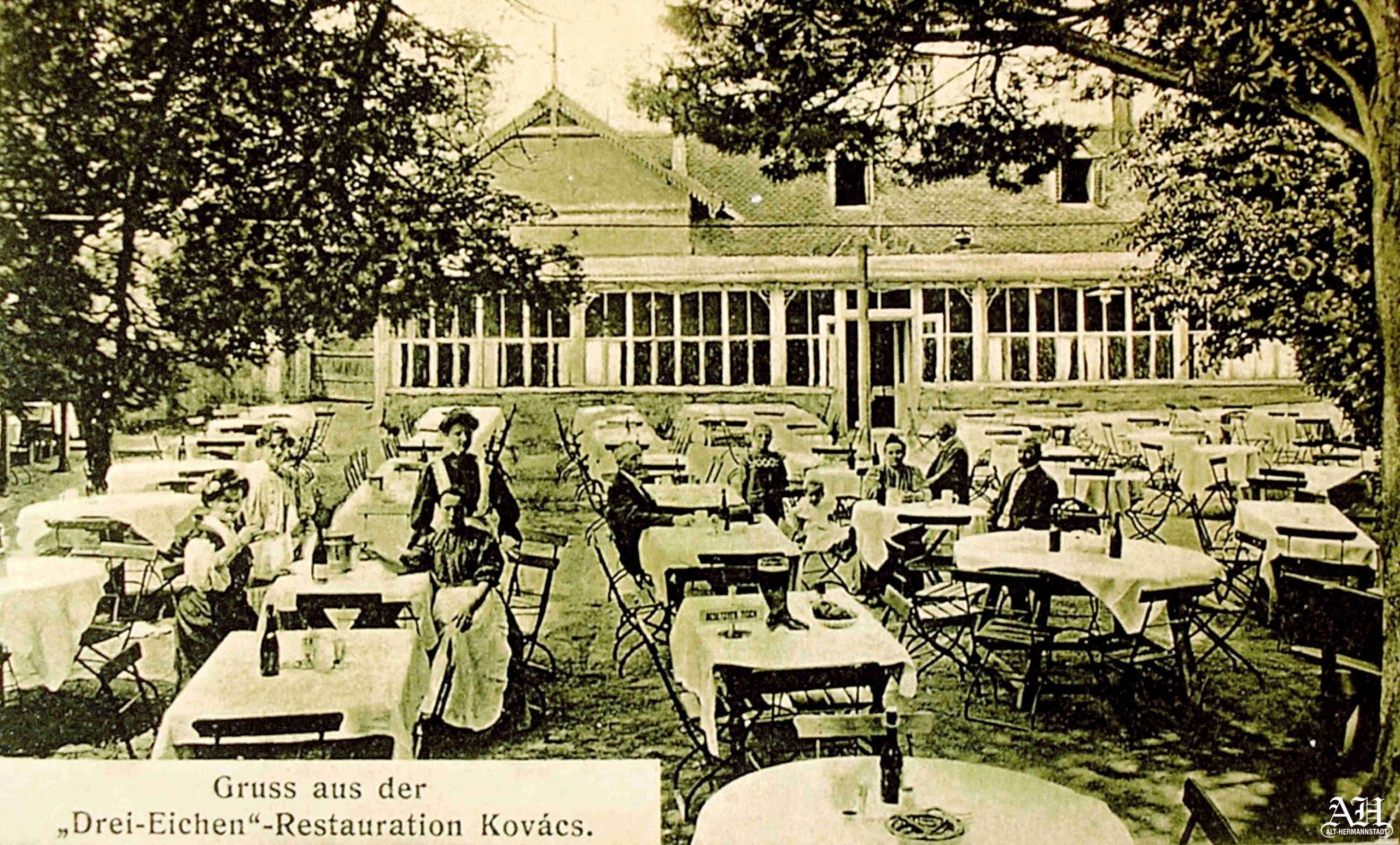 Kovács Karl a închiriat restaurantul Trei Stejari în jurul anului 1906 și l-a numit Restaurantul „Trei Stejari” Kovács, cum se poate citi pe cărțile poștale circulate 1908: Gruss aus der „Drei Eichen”-Restauration Kovács. (Salutări de la restaurantul „Trei Stejari”-Kovács). Cârciumarului Niedlich Michael apare, de asemenea, cu numele său pe diferite cărți poștale cu reclama restaurantul Trei Stejari.Pergola cu acoperiș, aflată lângă clădirea restaurantului, a fost demontată la începutul sec al XX-lea și amplasată paralel cu str. Șerbota pe latura sudică a grădinii de vară. În locul pergolei s-a construit o verandă deschisă, lungă și spațioasă, închisă după câțiva ani cu pereți și ferestre. Pe latura nordică a grădinii s-a adăugat un corp de clădire cu o popicărie, poziționat perpendicular cu veranda.