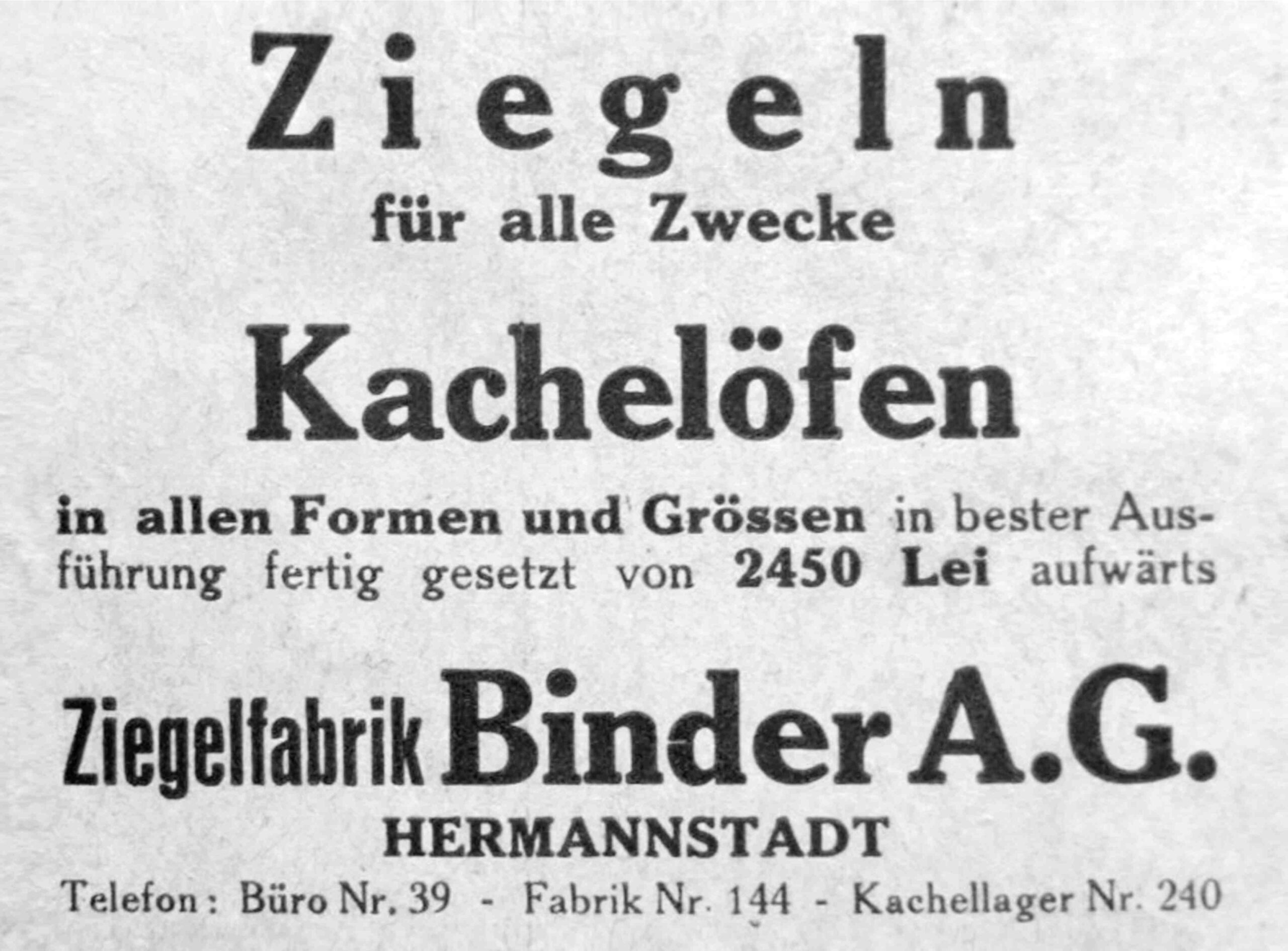 În al doilea deceniu al sec al XX-lea Thomas Binder cumpără împreună cu proprietarii fabricii de bere Trei Stejari // Drei Eichen Brauerei fabrica de bere Habermann din Sibiu și o folosește la producerea malțului.