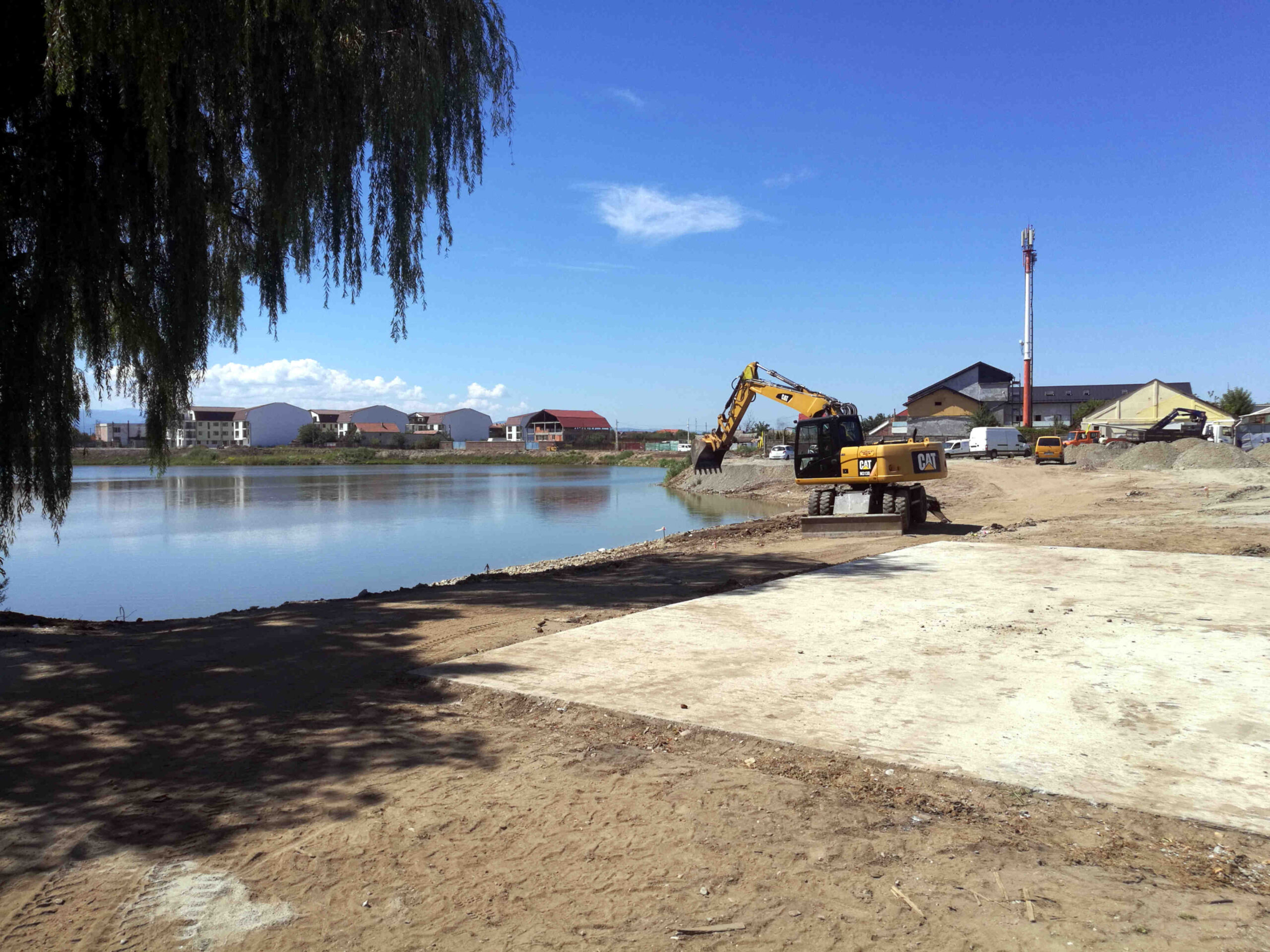 dreapta: Pătrunderea/ infiltrarea apei sub vechiul baraj || Pompa || Vedere generală a șantierului de construcții || Excavare sub nivelul vechi ~ Durchbruch unter dem alten Wehrkörper || Pumpensumpf || Baustelle Gesamtansicht || Baugrube unter der alten Sole