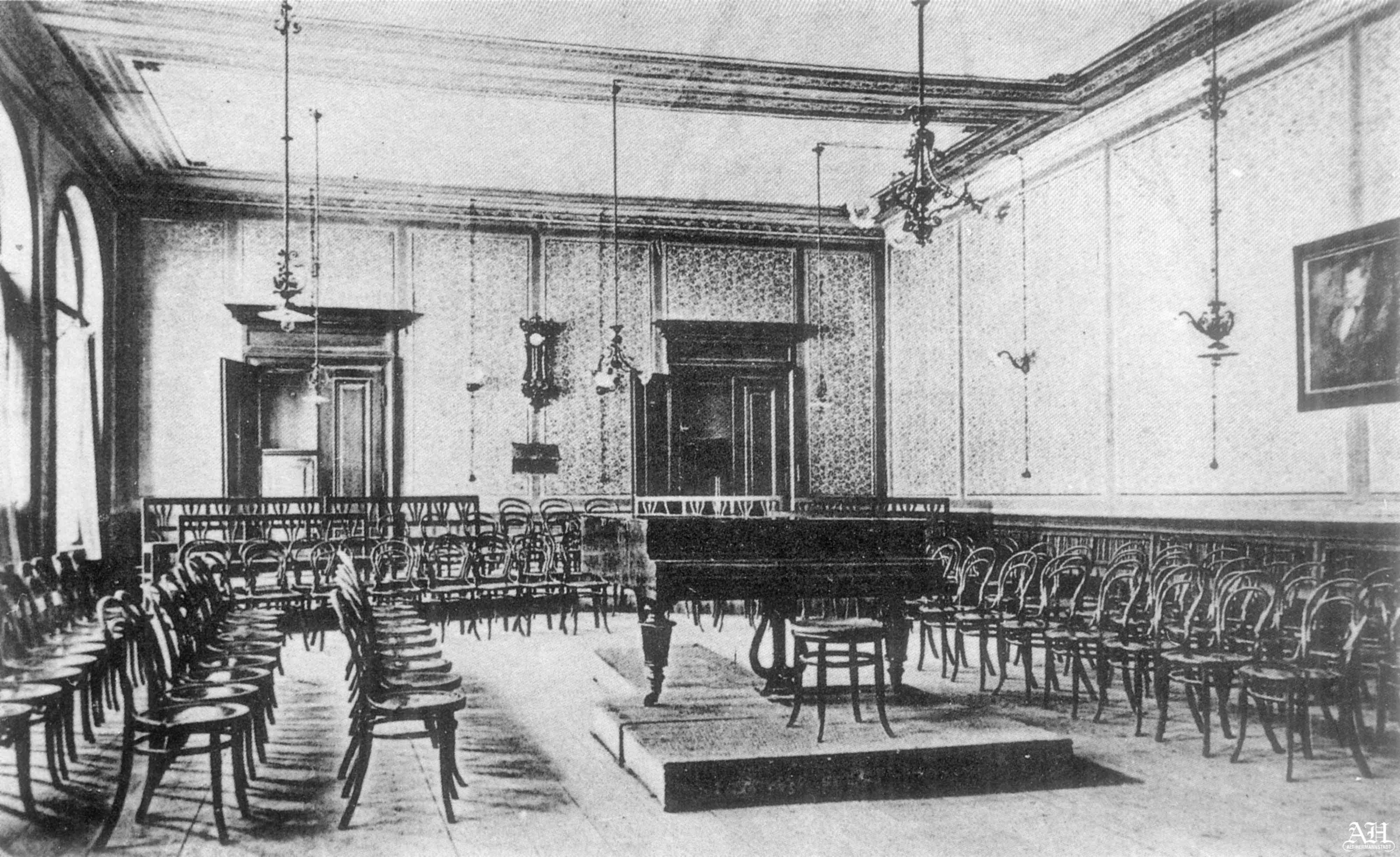 „Musikvereinssaal des Hermannstädter Musikvereins“ // „Sala de concerte a Societății Muzicale sibiene ‚Musikverein’“