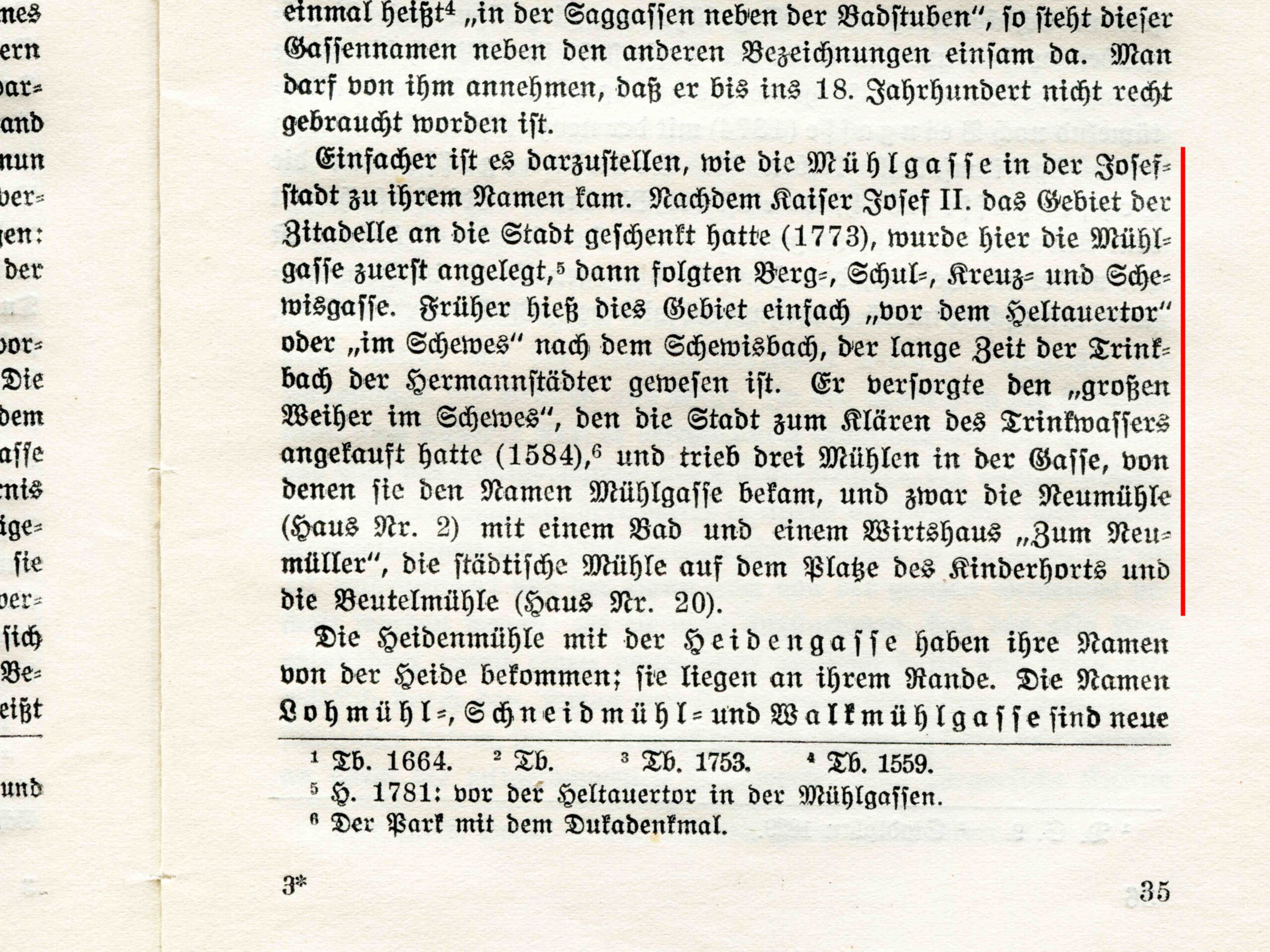PS Strada Morilor se numește în limba germană Heidengasse deoarece ducea de la bastionul din fața Porții Sag/ Turnului la moara Heidenmühle care se afla pe canalul Morilor // Mühlkanal pe terenul care corespunde astăzi cu parcela Șoseaua Alba Iulia nr. 5. (fotografie din arhiva grupului Alt-Hermannstadt)