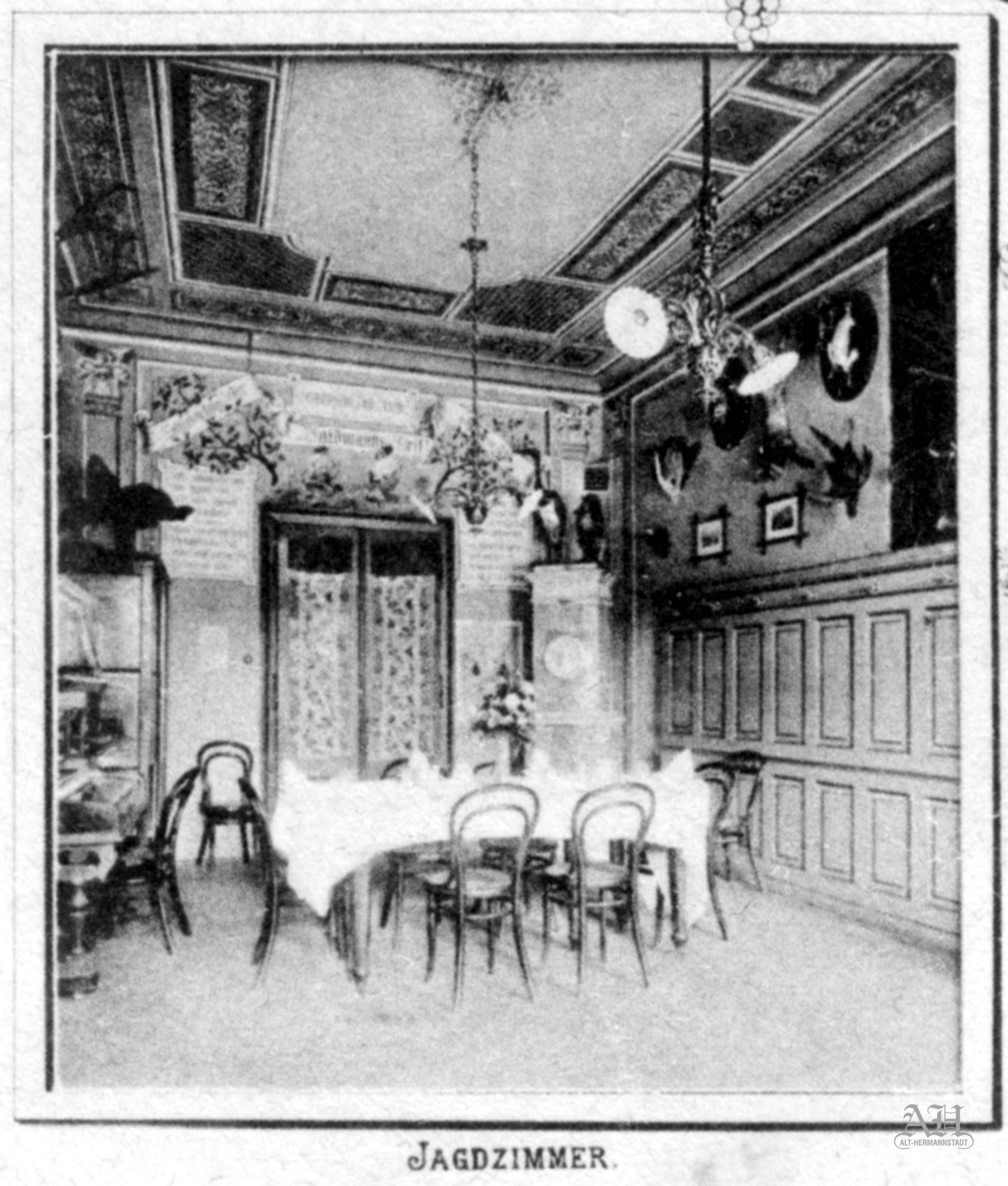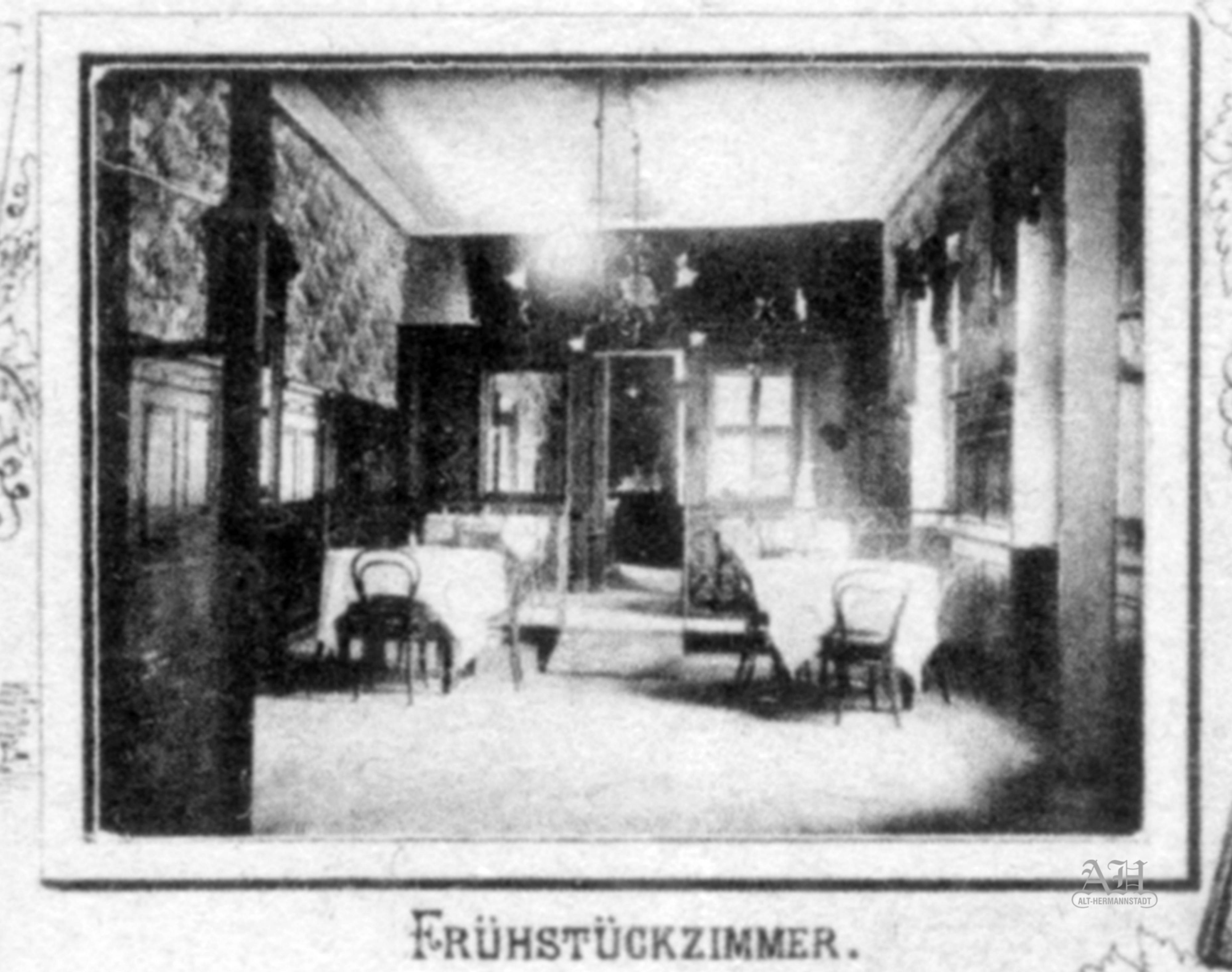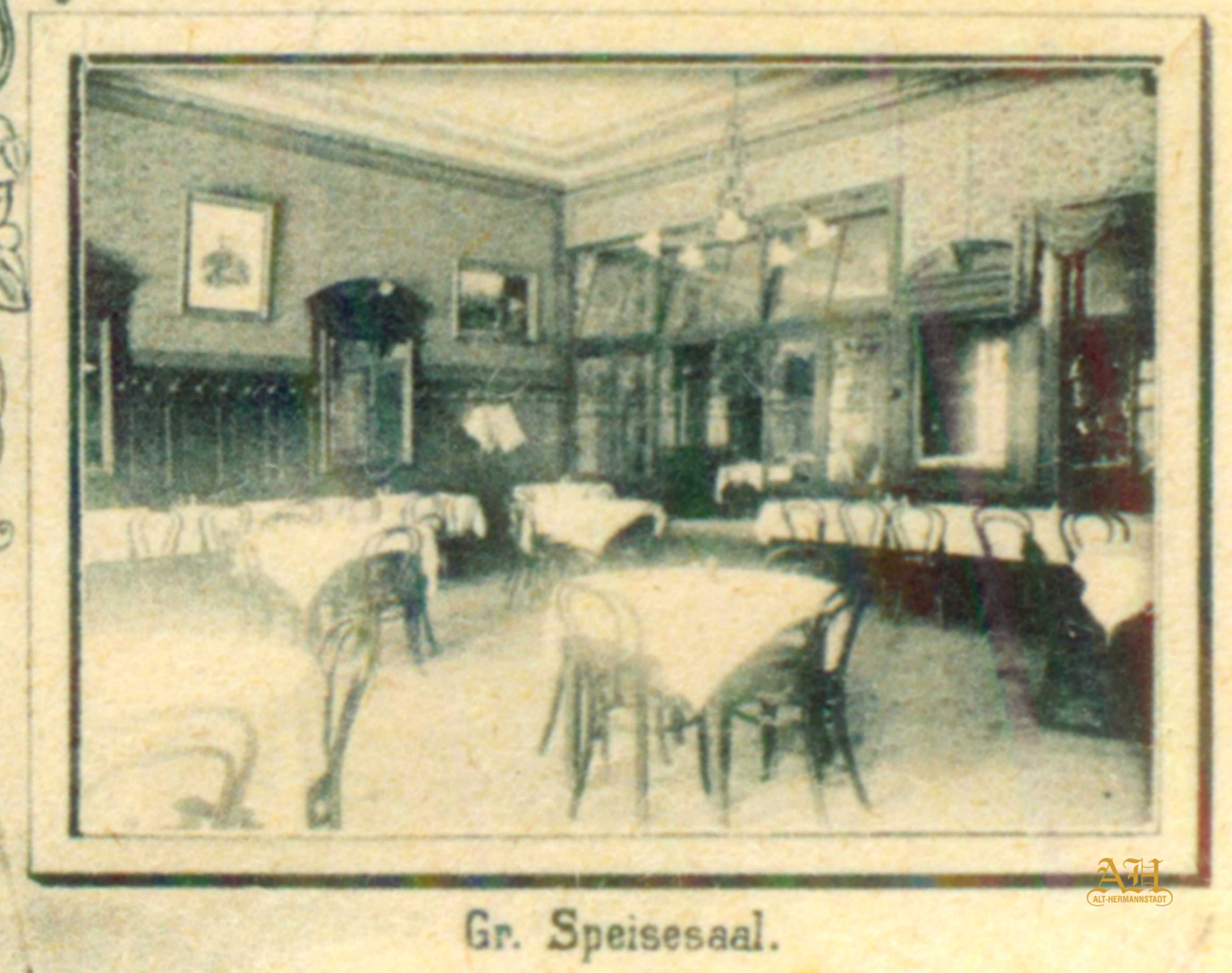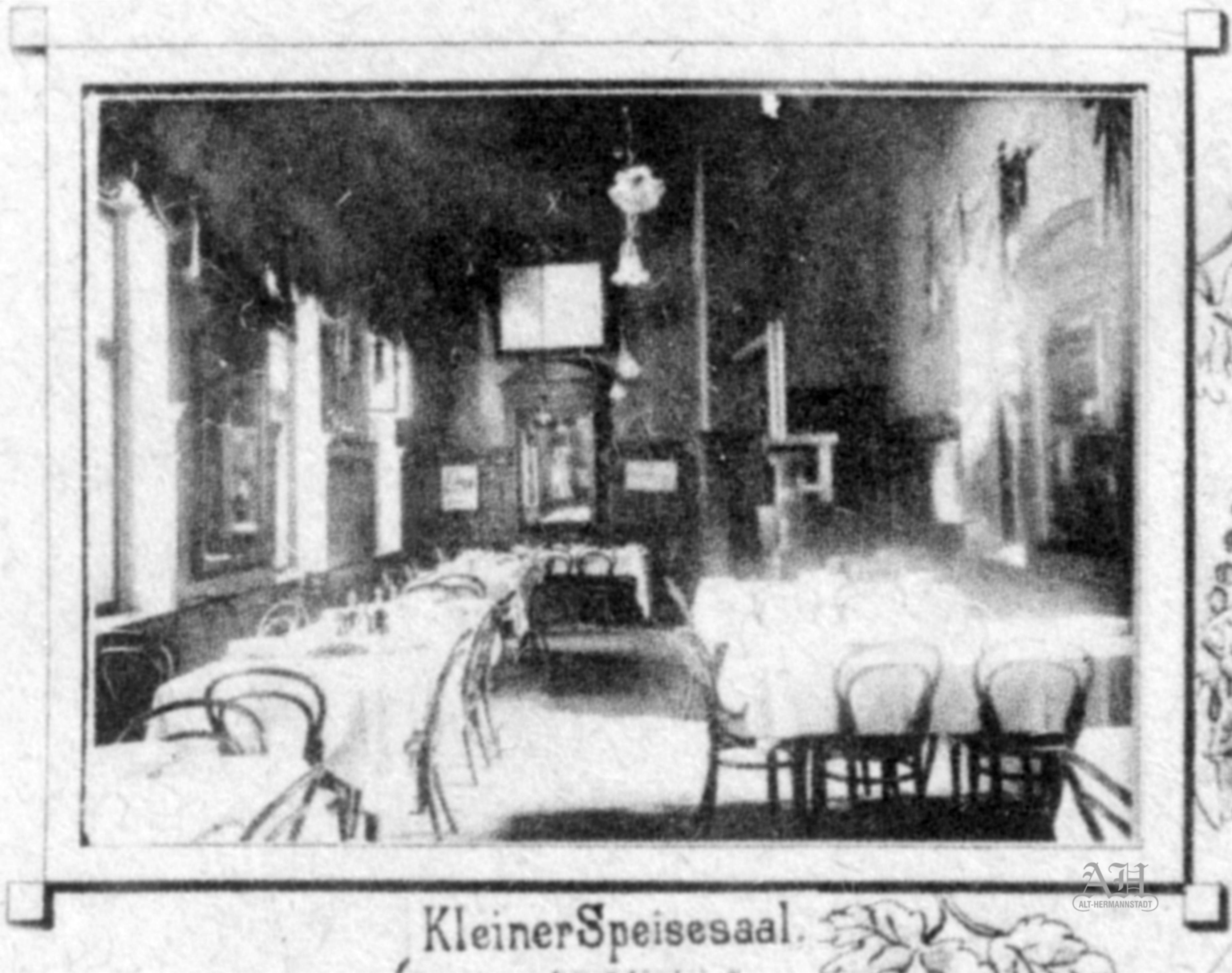 Restaurantul numit Stadtpark se afla pe strada Tribunei nr.5 ( Quer Gasse Nr.5 ) cu terasă spre str. Ioan Lupaș nr.6 ( Hecht Gasse Nr.6 ). A fost redeschis pe 7 noiembrie 1897 și dispunea de o sală mare de mese ( Großer Speisesaal ), o sală mică de mese ( Kleiner Speisesaal ), o sală pentru micul dejun ( Frühstückzimmer ), o cameră decorată cu trofee de vânătoare ( Jagdzimmer ) și o terasă/ verandă ( Veranda ) împrejmuită cu un gard acoperit de plante, amenajată pe trotuarul din fața clădirii de pe str. Ioan Lupaș nr.6.
