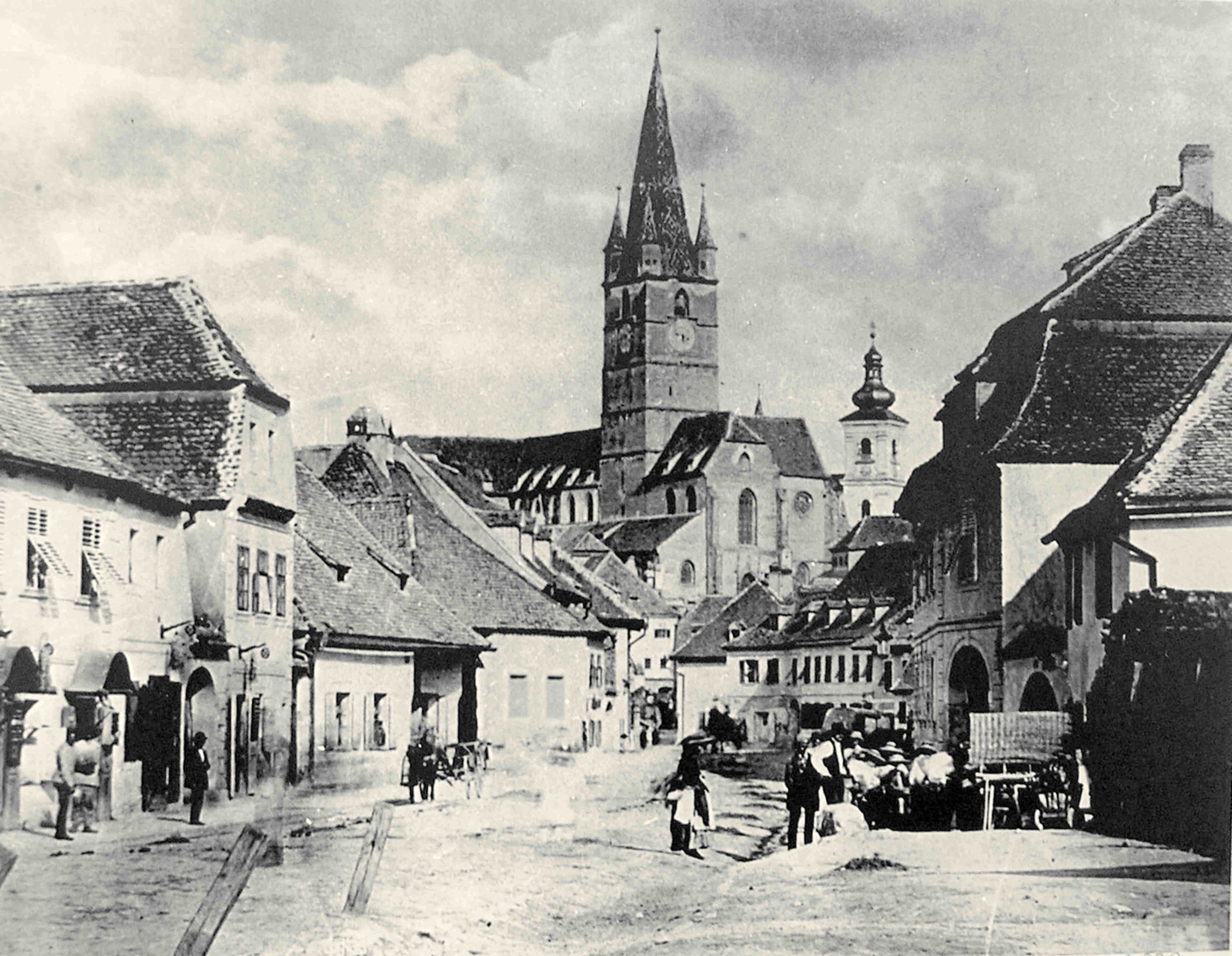 Strada Sag // Turnului în jurul anului 1860. Este una dintre cele mai vechi fotografii, sau poate chiar cea mai veche, în care apare strada Turnului. După această fotografie s-a realizat o gravură (xilogravură) foarte cunoscută. O găsim ca ilustrație în cartea jurnalistului Charles Boner „TRANSYLVANIA – ITS PRODUCTS AND ITS PEOPLE“ / „Transilvania – produsele şi poporul său” apărută la Londra în anul 1865.