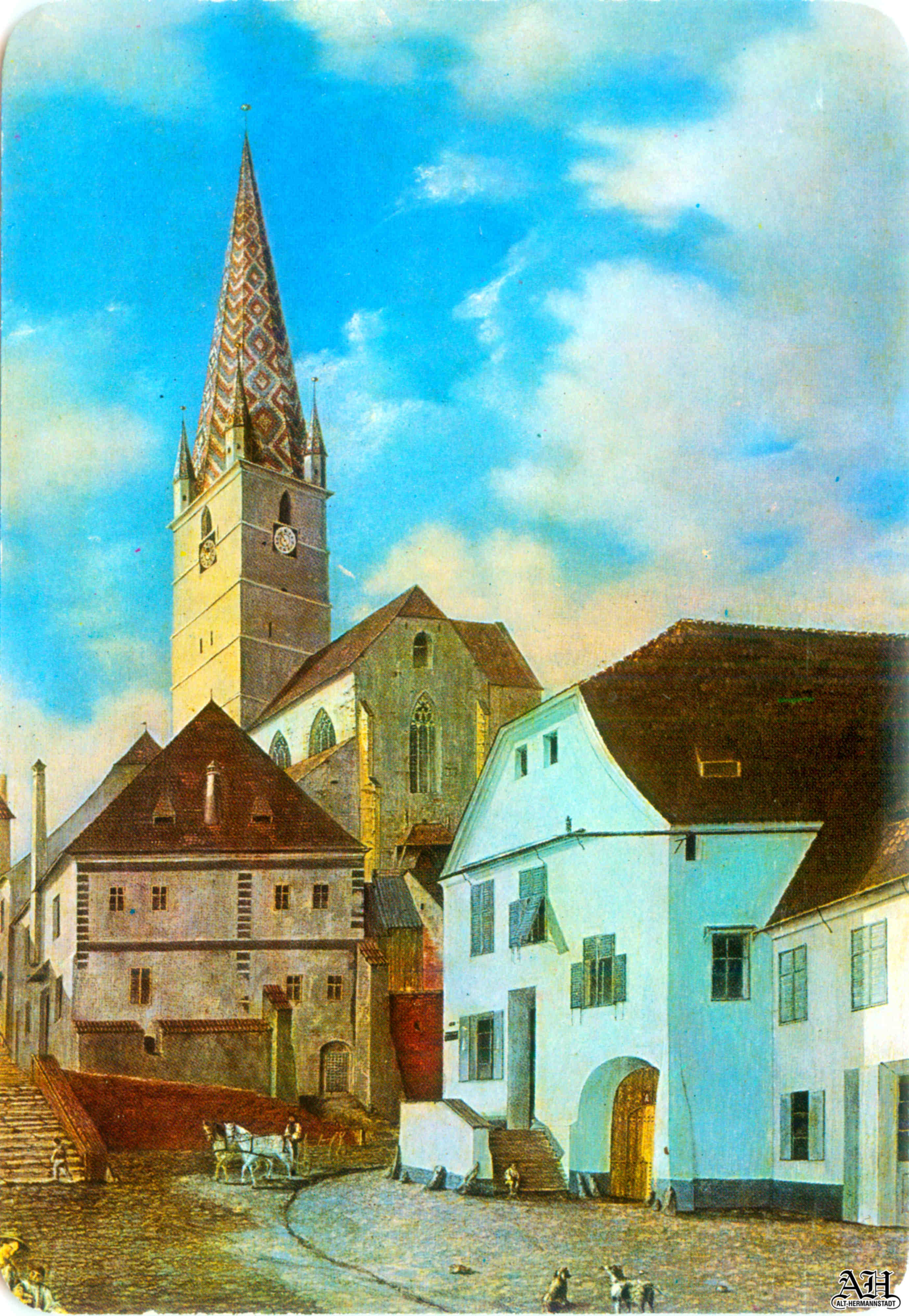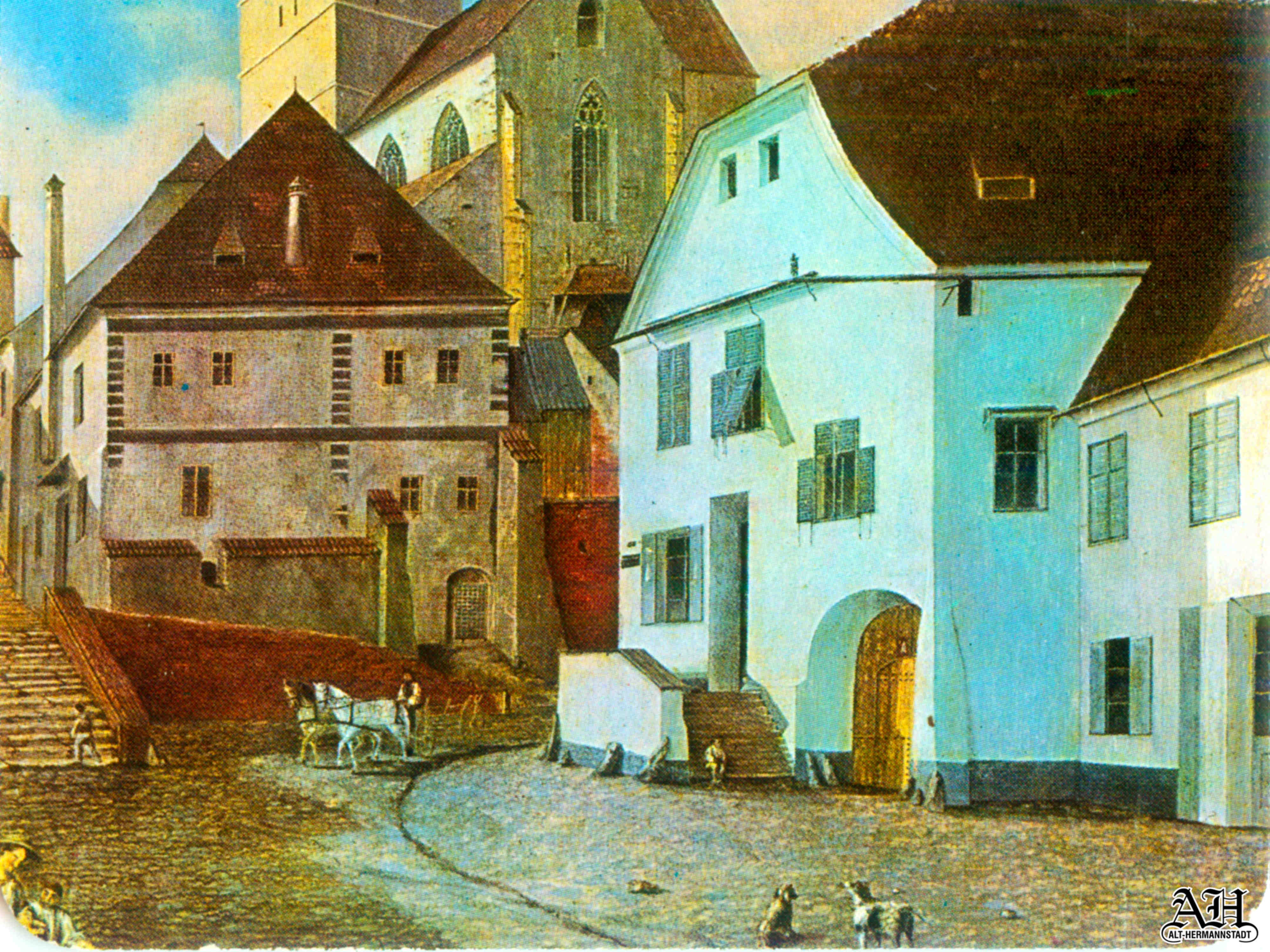 „Saggasse und evangelische Kirche in Hermannstadt” // „Strada Turnului și Biserica Evanghelică din Sibiu“ ~ Heinrich Trenk