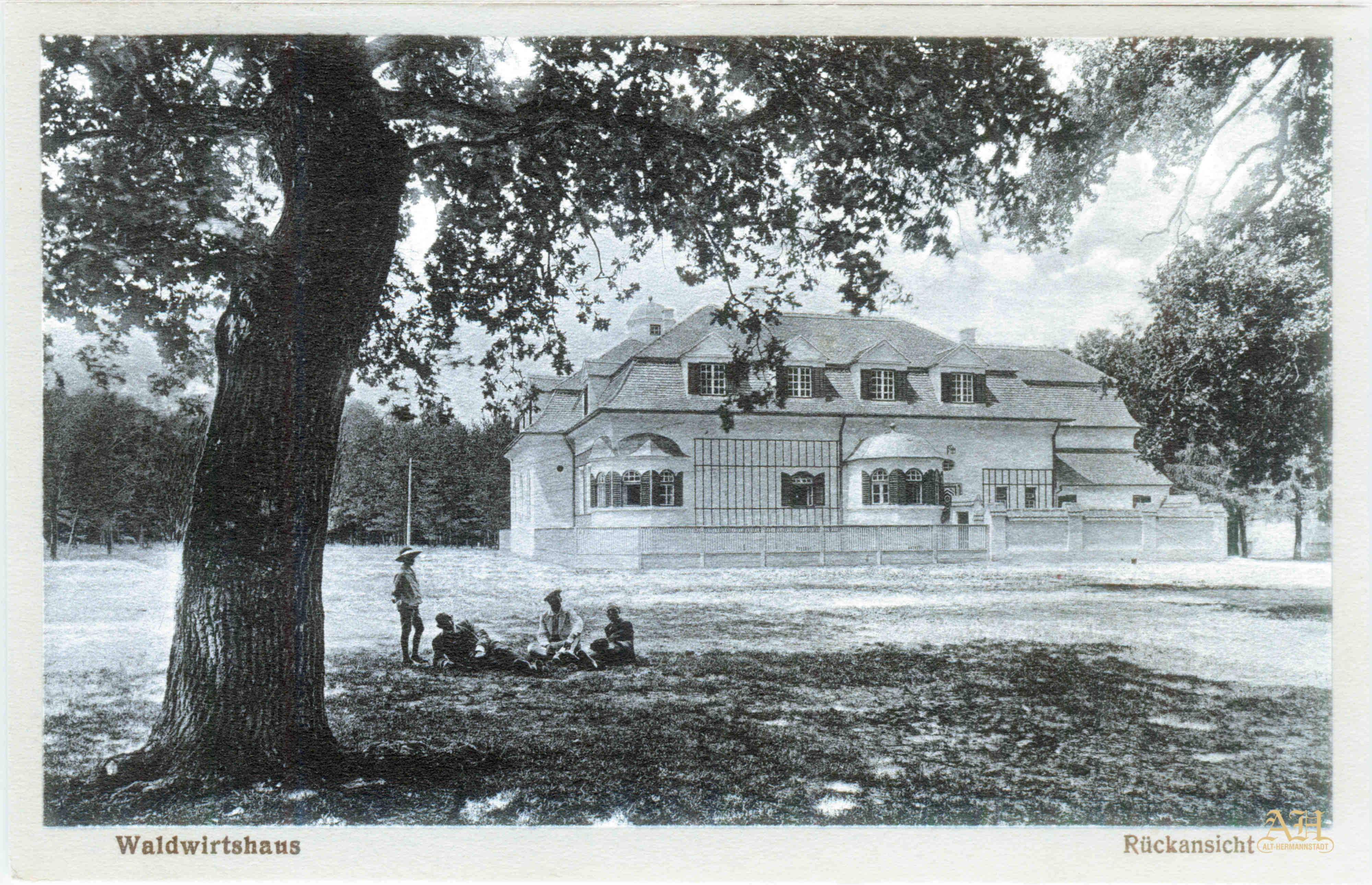 Hanul din Pădurea Dumbrava – carte poștală realizată la tipografia lui Josef Drotleff. Textul inscripționat pe verso: „Hermannstadt – Waldwirtshaus” ~ „In 20 Minuten vom Grossen Ring mit der elektrischen Strassenbahn zu erreichen“. Clădirea noului han din Pădurea Dumbrava (Sibiului) // Junger Wald a fost construită la începutul celui de al doilea deceniu al secolului al XX-lea, după planurile arhitectului sibian Ludwig Orendt (1876-1930).